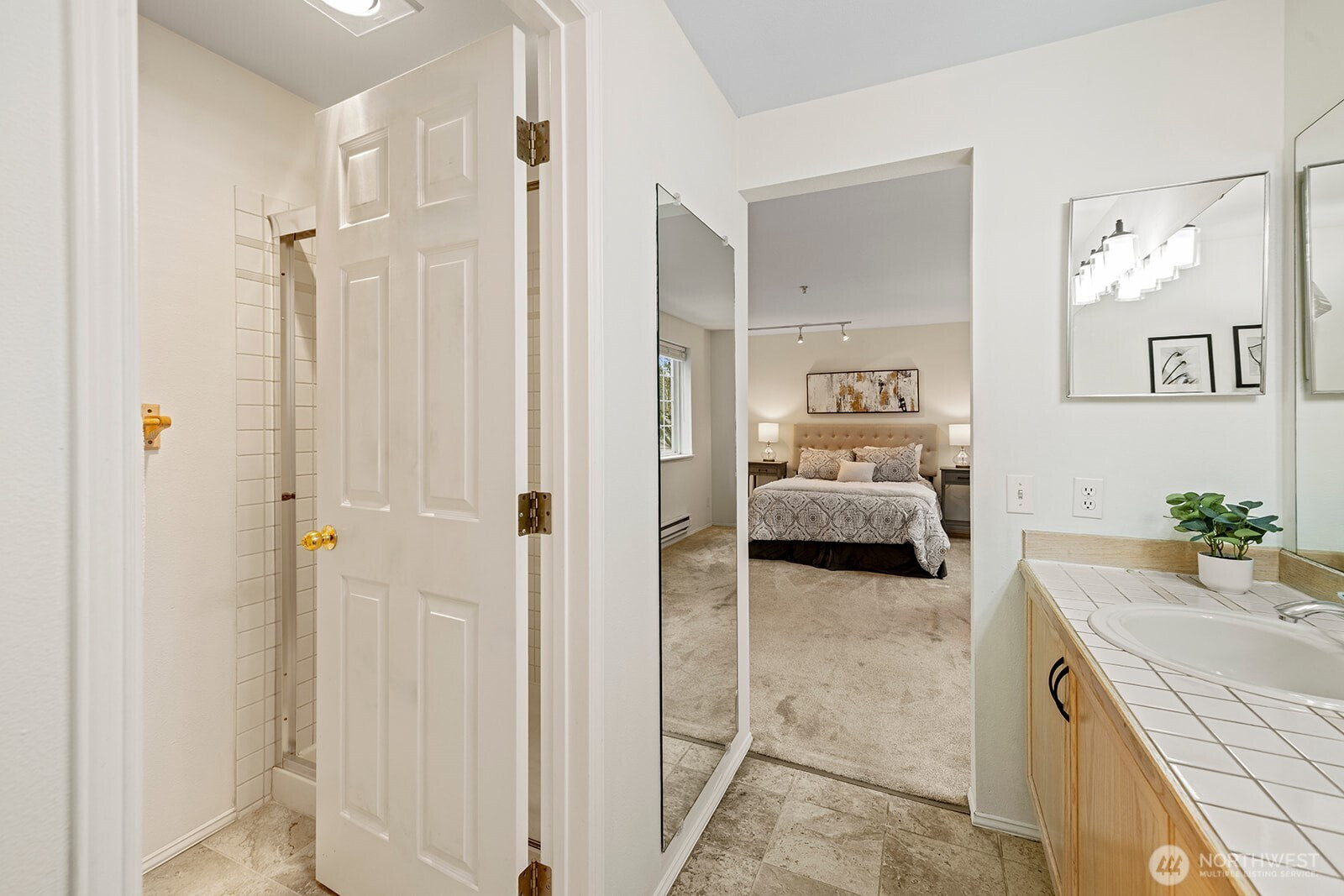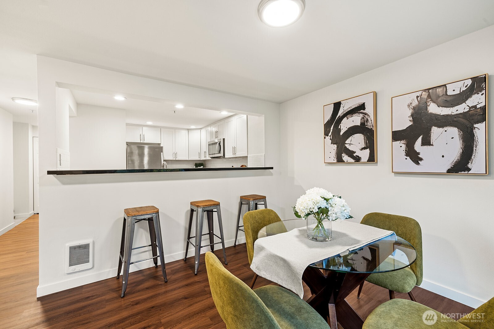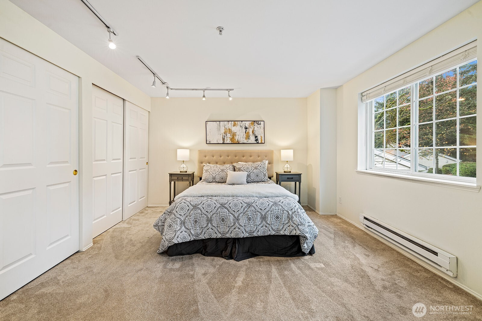 Exceptional 2-bed, 2-bath unit offering serene living across from the Mercer Slough Nature Park. This bright and freshly painted condo features a spacious open floor plan, beautifully updated kitchen, a cozy wood-burning fireplace, and a private deck overlooking a peaceful greenbelt. Enjoy rapid access to I-405, I-90, and Downtown Bellevue. Features include a large primary suite, DEDICATED garage parking, and location within the top-rated Bellevue School District. The perfect blend of tranquility and urban convenience—a smart investment in a prime location! All appliances stay! Fully Inspected!
