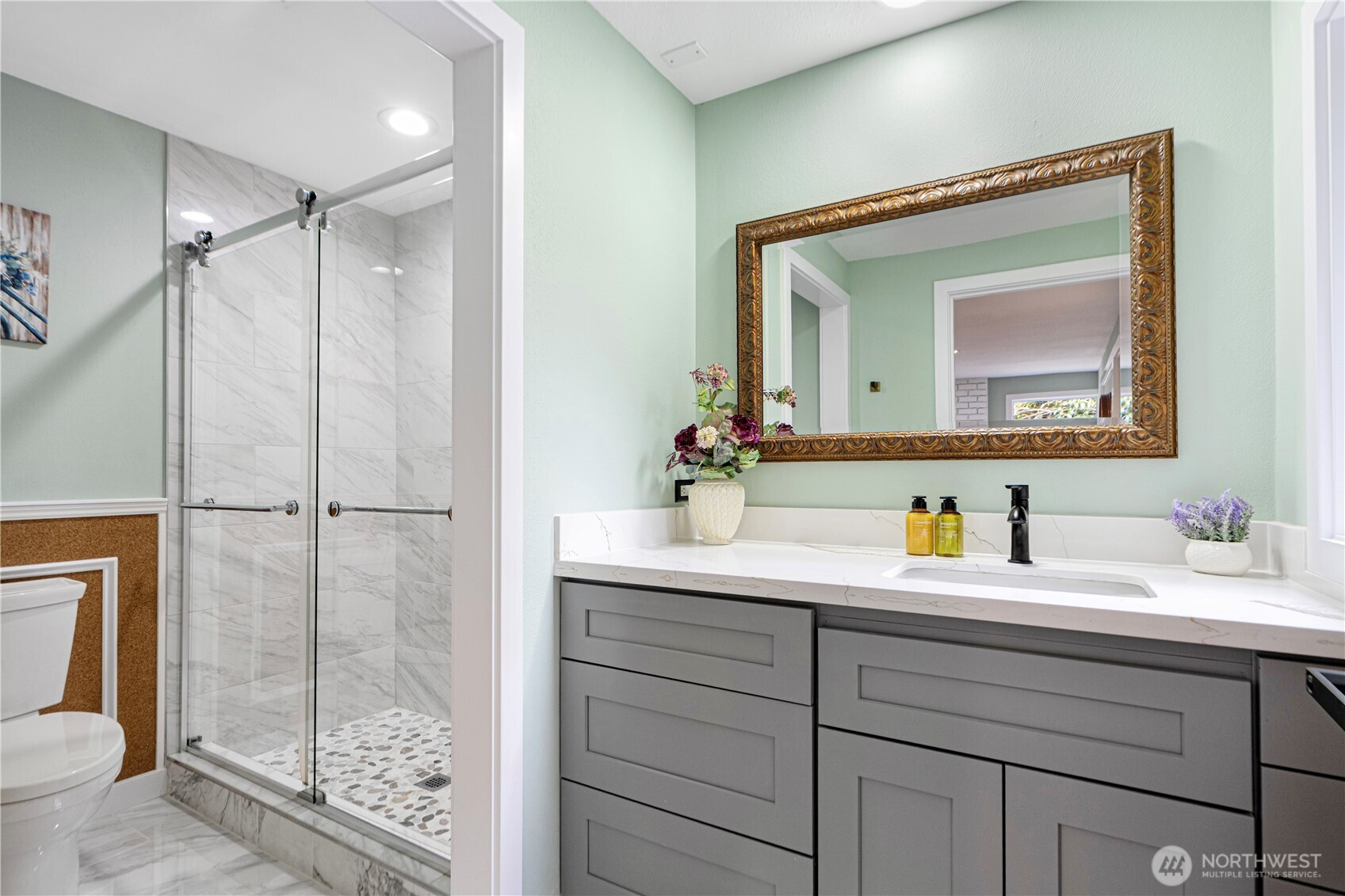 Fully renovated Fairwood Greens home featuring 5 bedrooms, 3.5 baths, generous living spaces, a den/office and a beautiful great room — ideal for multi-generational living or flexible rental use. Recent upgrades include a sleek kitchen with granite island and premium appliances, remodeled baths, all new vinyl plank flooring, carpet, windows, siding, lighting, and fresh interior/exterior paint. Multiple gathering areas, a large fenced yard, and a detached outbuilding offer comfort and versatility, perfect for a workshop or studio. Located in the sought-after Fairwood Greens community with optional Golf & Country Club membership, this home blends modern style with long-term value and lifestyle convenience.