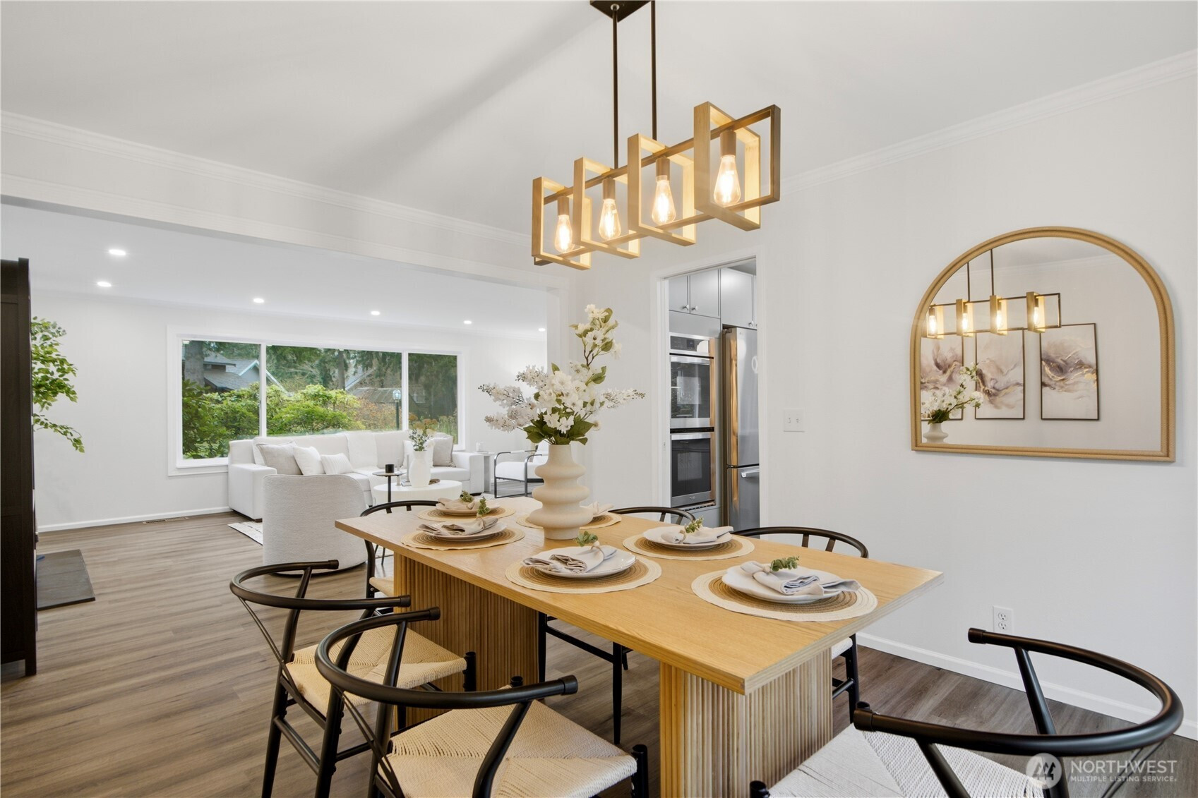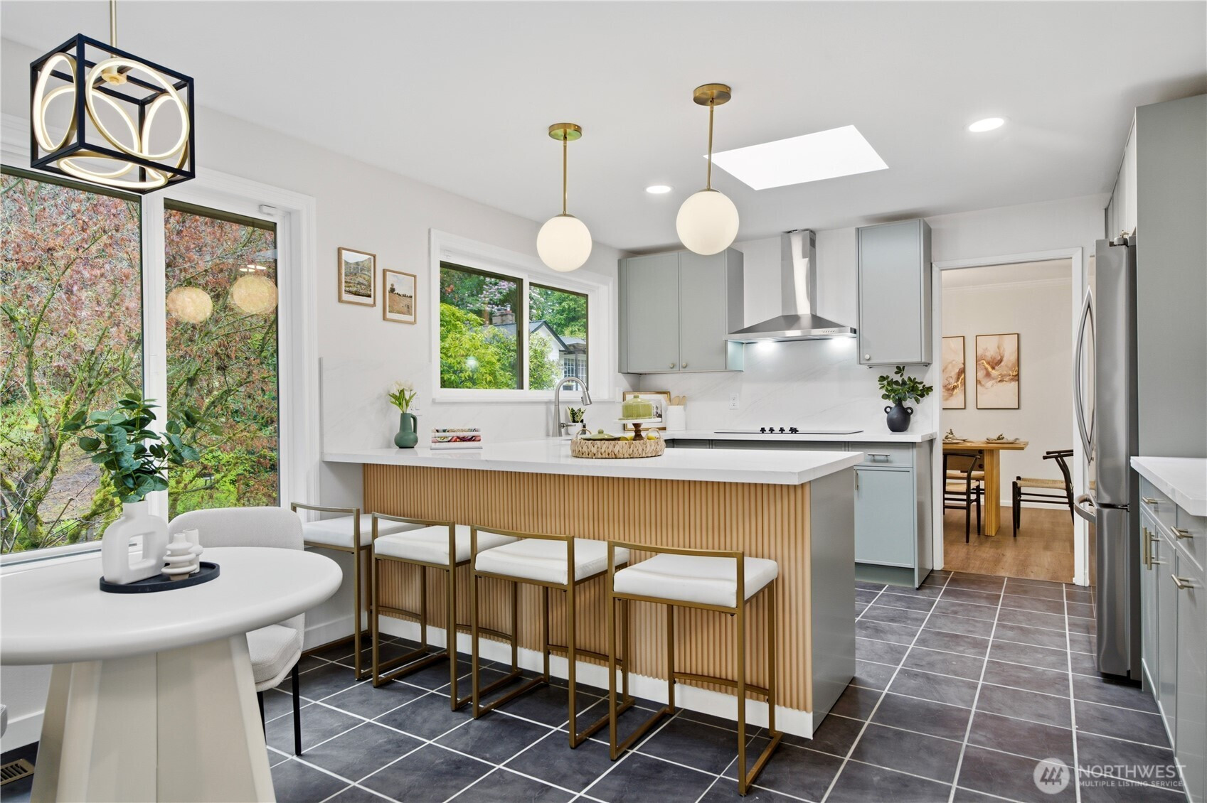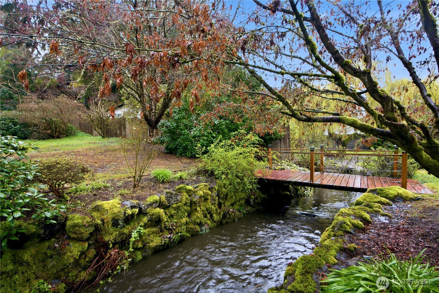 A RARE opportunity to own a private 0.43-acre urban oasis with Thornton Creek flowing through your backyard—offering year-round beauty and tranquility. Surrounded by mature trees and a spacious lawn, it feels like YOUR OWN PARK, with ever-changing scenery and abundant wildlife. Inside, expansive windows and skylights fill the home with natural light and frame serene creek views. The thoughtful main floor layout blends formal and casual living, with the family room opening to the outdoor retreat and a den for flex use. Upstairs features 4 bedrooms, including a spacious primary suite with walk-in closet. Tastefully updated in 2026, the home features a stunning brand-new kitchen, refreshed bathrooms and laundry, new flooring, fresh interior paint, and modern plumbing and lighting fixtures—offering a move-in ready experience with timeless appeal. Additional highlights include a 2-car garage and an energy-efficient heat pump with A/C. Ideally located near Northgate’s shopping, dining, and transit hub—with quick access to I-5 Express, just 5 minutes to the nearest Link station, and 15 minutes to downtown. Homes like this are truly hard to find—where nature, space, and everyday living come together in perfect harmony.