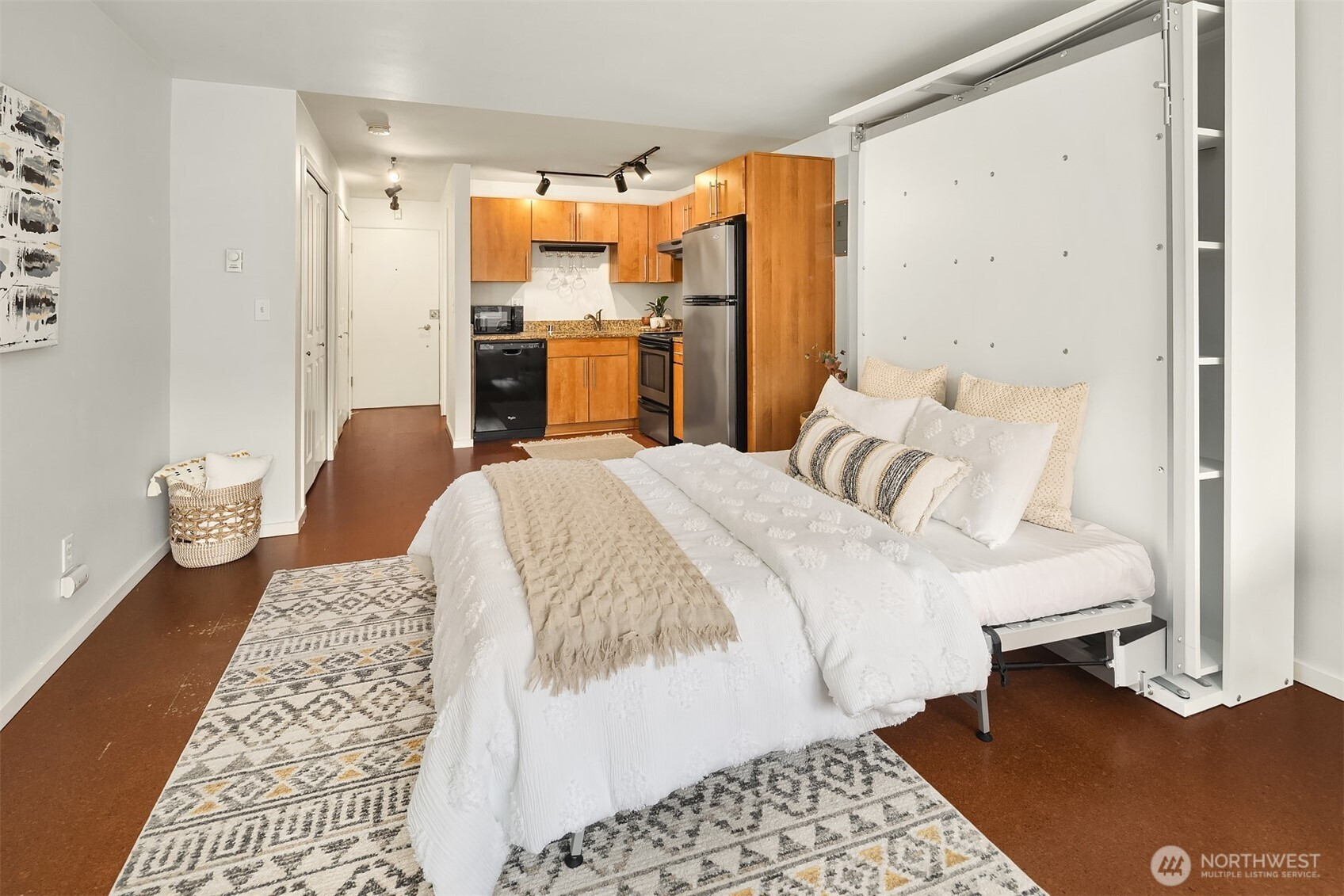 Quintessential Capitol Hill living starts here at Seventeen07. This chic condo sits right in the heart of Seattle's most electric neighborhood, where incredible restaurants, night-life, and shops are just steps away. The layout is designed to make every inch count and is elevated with a sleek Murphy bed/desk combo that transforms the space on demand, plus, an in-unit washer/dryer for every day convenience. Cool off with A/C in the summer, and explore extensive building amenities: gym, yoga room, sauna, lounge, designated storage unit, and a dog wash station. All just one block from Seattle Central, 10 min to light rail, and 20 min to SLU and Downtown. This is city life, perfected.