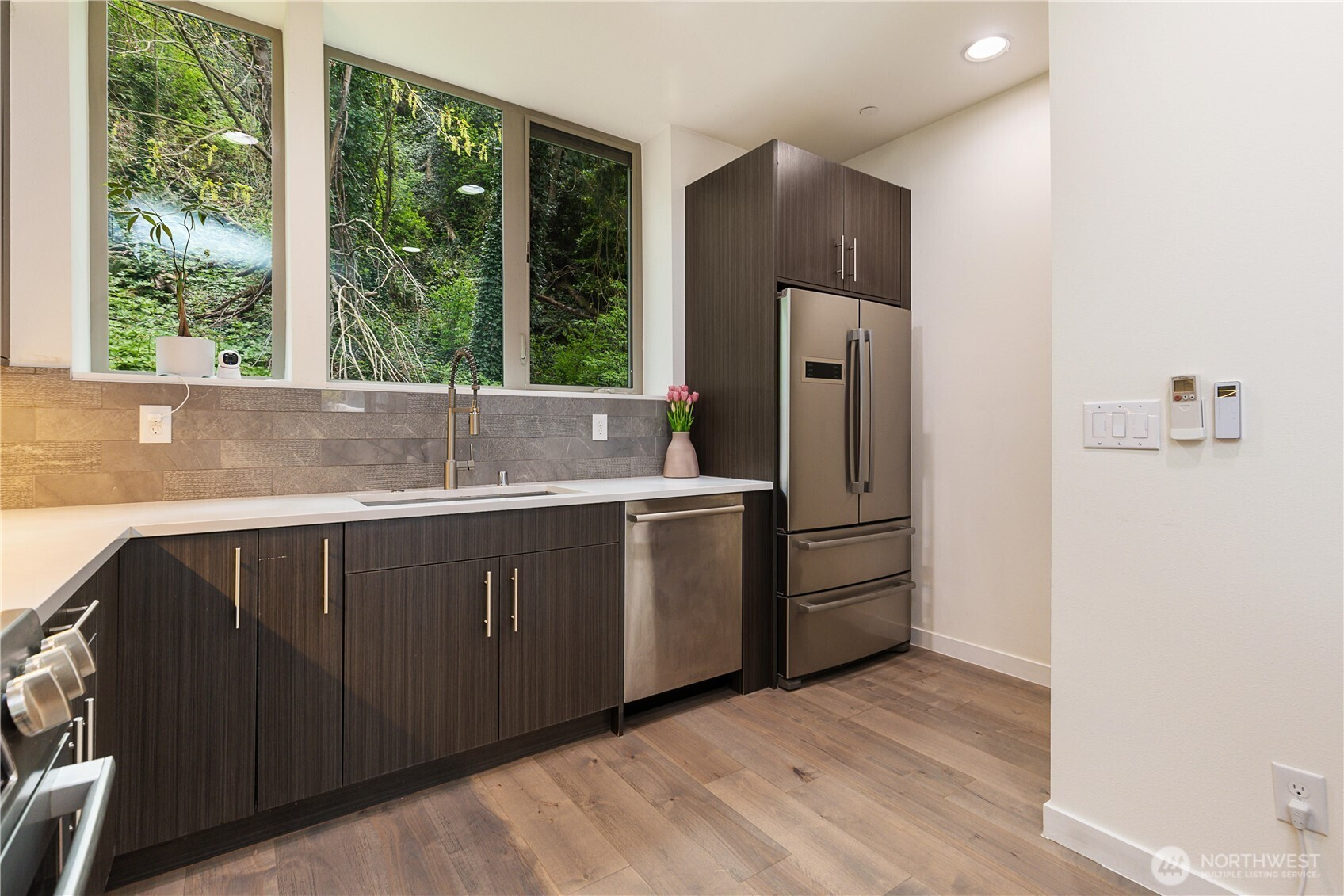 Modern architecture meets exceptional craftsmanship in this beautifully designed 1-bedroom, 1.25-bath townhome with No HOA. Featuring high ceilings and expansive windows, the home is filled with natural light and showcases high-end designer finishes throughout. The chef’s kitchen is thoughtfully appointed, while the spacious primary suite includes an ensuite bathroom and a walk-in closet. Enjoy year-round comfort with air conditioning, along with the convenience of covered parking and additional storage. Outdoor living shines with thoughtfully landscaped areas and a private rooftop deck equipped with gas, water, and electrical hookups—perfect for BBQs, entertaining, or unwinding while taking in stunning water and mountain views. Embrace the best of coastal living with easy access to the Alki Trail, local restaurants, shopping, and a variety of water activities. Commuting is a breeze with convenient access to downtown Seattle via the water taxi. Ideally situated directly across the street from Alki Beach, this home brings the sought-after Alki lifestyle into your everyday life.