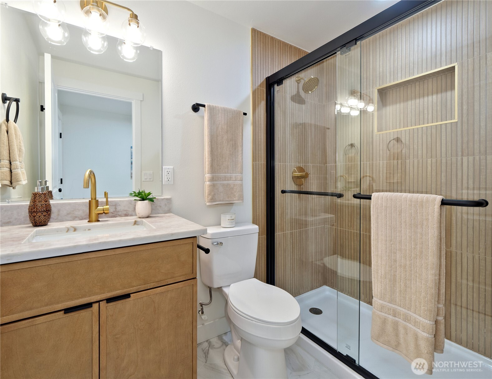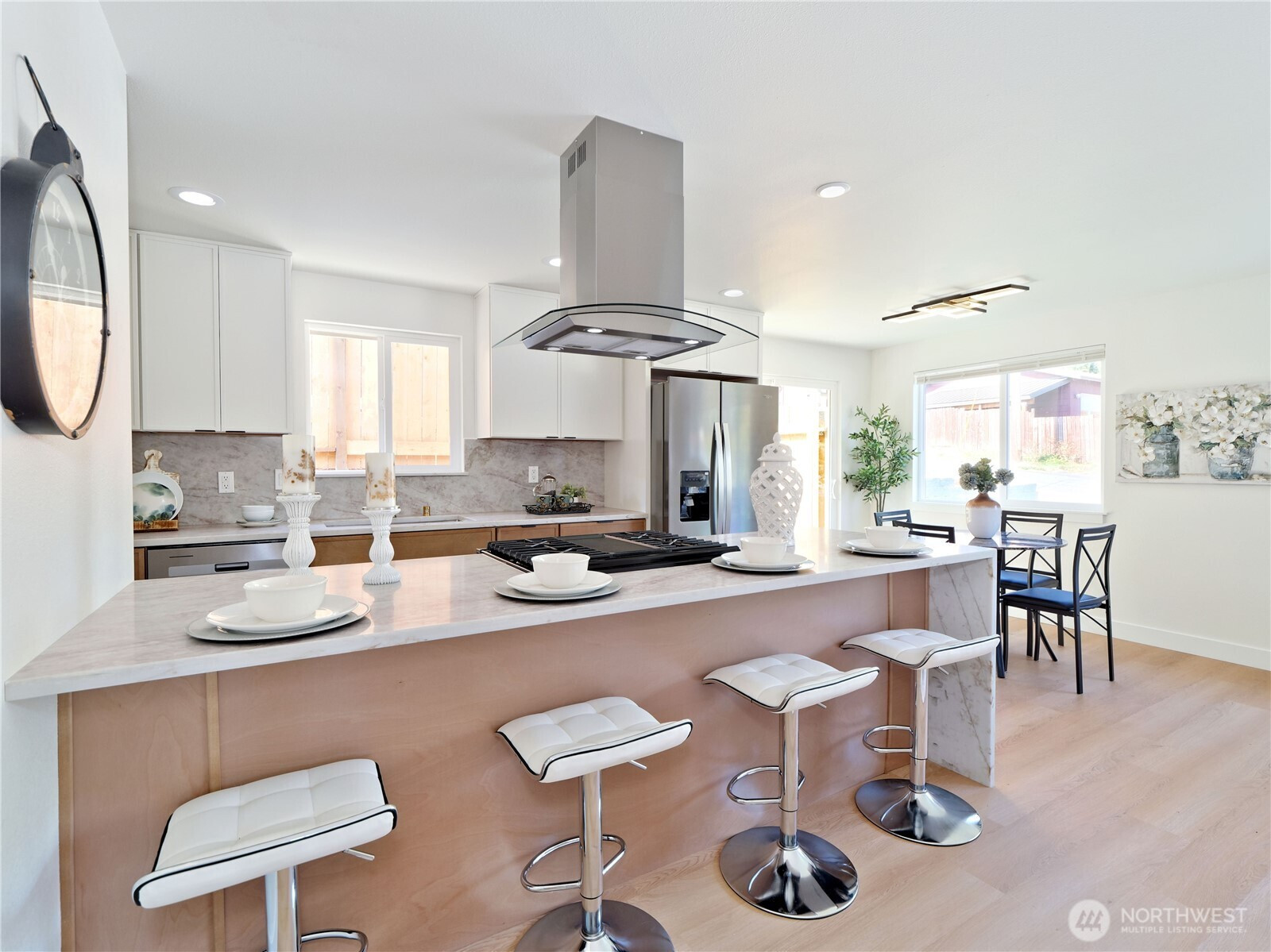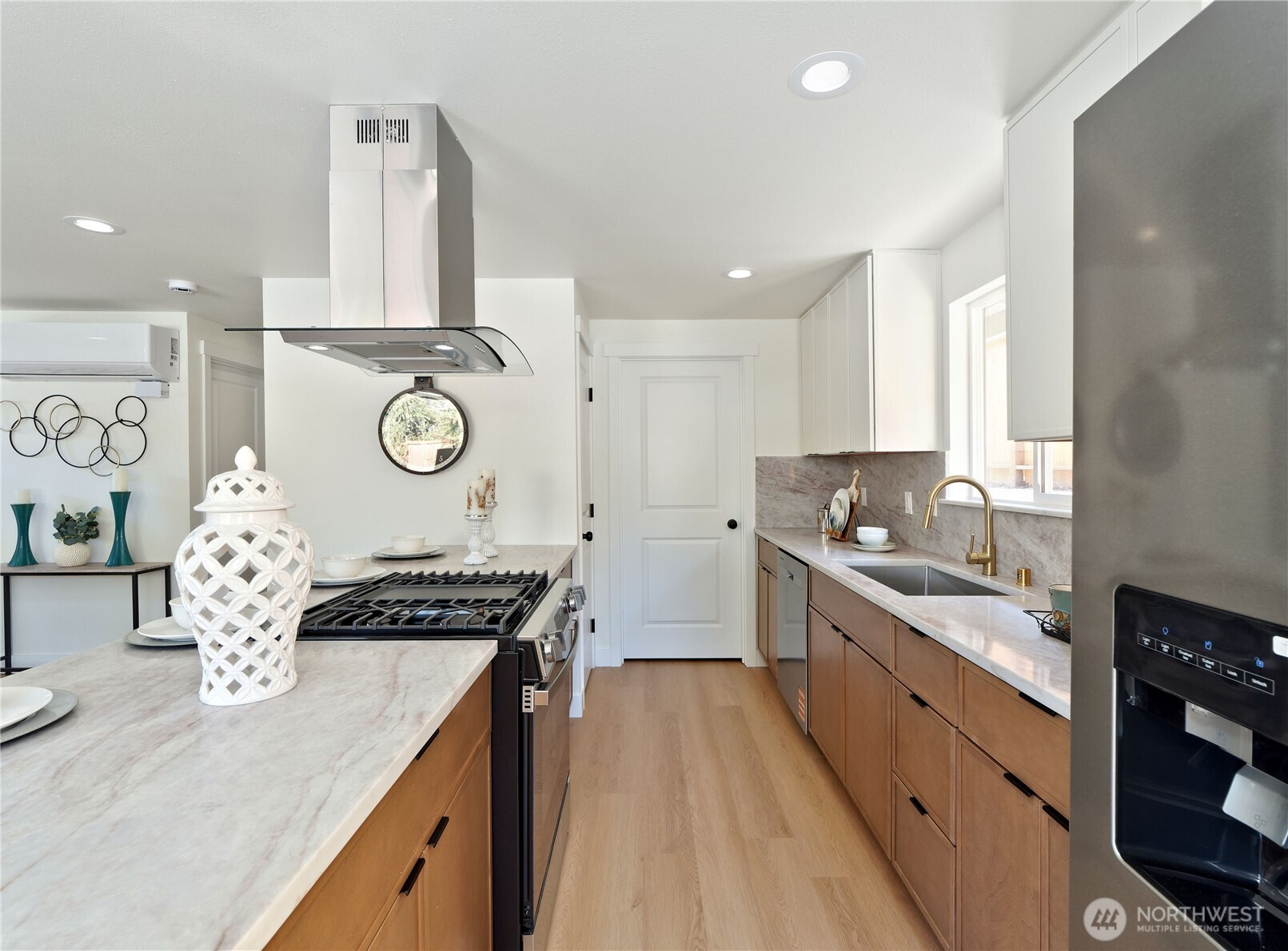 Updated 4 bed, 2.5 bath rambler in West Seattle. Quiet neighborhood on dead-end street. Brand new kitchen with solid wood cabinets, quartz countertops, and stainless steel appliances. Open concept home perfect for entertaining. Cozy living room with electric fireplace. Primary suite with ensuite bath and walk-in-closet. 2nd primary bed with it's own half bath. New LVP flooring, fresh coat of interior & exterior paint. Fully fenced home - spacious front and back yards with new sod. Private patio off dining area. Long driveway that can fit multiple cars or RV. Walking distance to bus stop. Minutes to parks, schools, South Seattle College, & West Seattle Bridge. Next door (identical) is also listed for sale.
