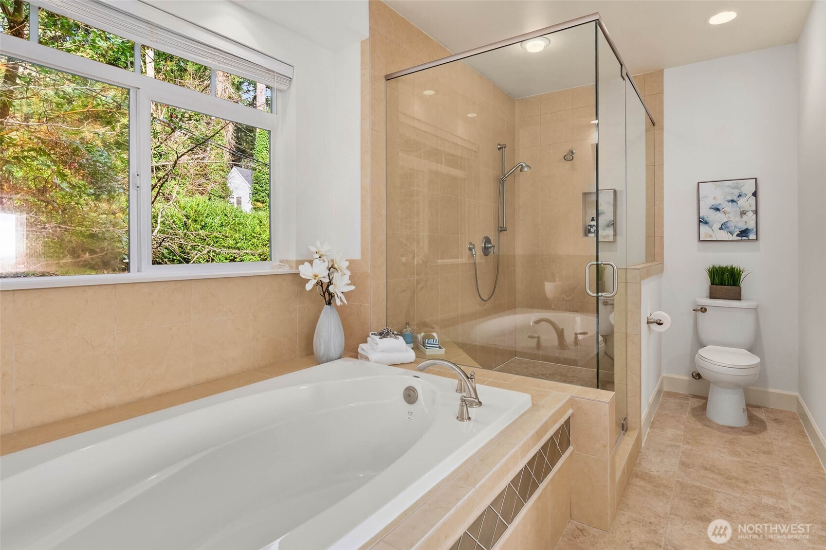 Beautiful Custom Home with Mountain Views on a Peaceful, Park-Like Property! This stunning custom home offers breathtaking mountain and partial lake views in a private, serene setting just minutes from everyday amenities. Thoughtfully designed with 9-foot ceilings, abundant natural light, mud room off side entry and a spacious open layout, the home blends comfort with effortless entertaining. The main level features a flowing great room concept that opens seamlessly to a wraparound Trex deck and covered porch, creating ideal indoor/outdoor living spaces. The chef’s kitchen includes large island, generous prep space, a walk-in pantry, & easy flow to the dining and living areas—perfect for gatherings both large and small. A flexible main-floor room with ¾ bath access offers ideal space for a guest suite, office, or bonus. Pre-Inspected Upstairs you'll find four spacious bedrooms, creating a comfortable retreat with room for everyone. Outside, the park-like grounds provide exceptional privacy with plenty of space to play, garden, or simply relax in the peaceful natural surroundings. The oversized garage offers abundant room for vehicles, storage, hobbies, or outdoor gear. Located near scenic trails and Grace Cole Nature Park, this home also includes deeded access to the private Lake Forest Park Civic Club on Lake Washington, featuring a boat launch, dock, beach, and picnic areas. Enjoy the rare combination of privacy, views, recreation, and convenience—plus NO HOA
