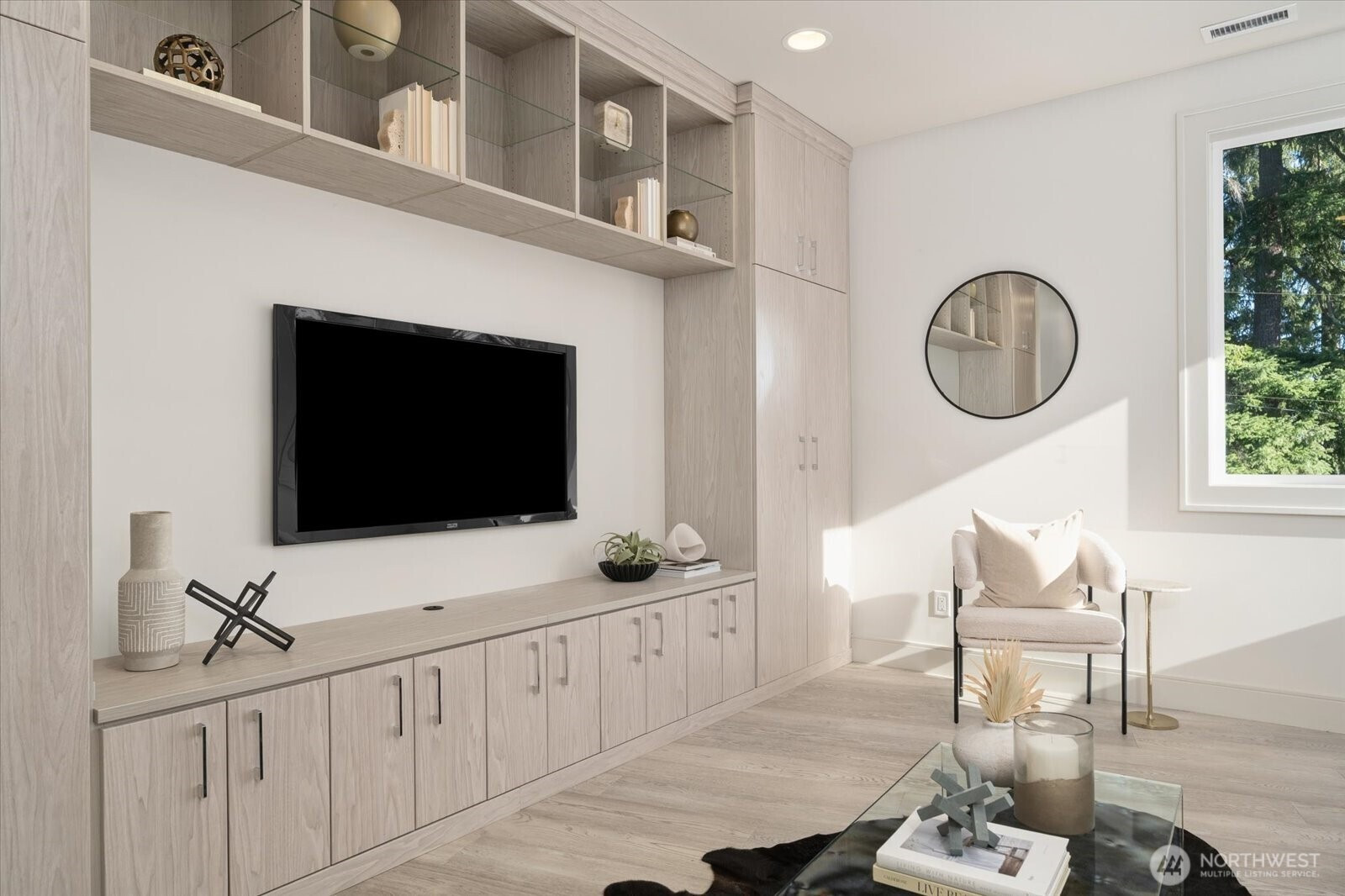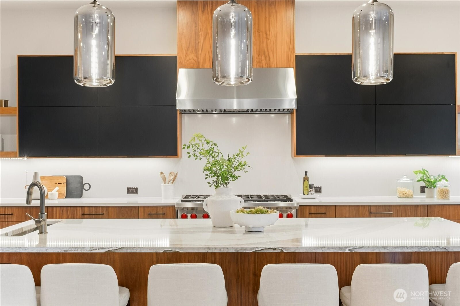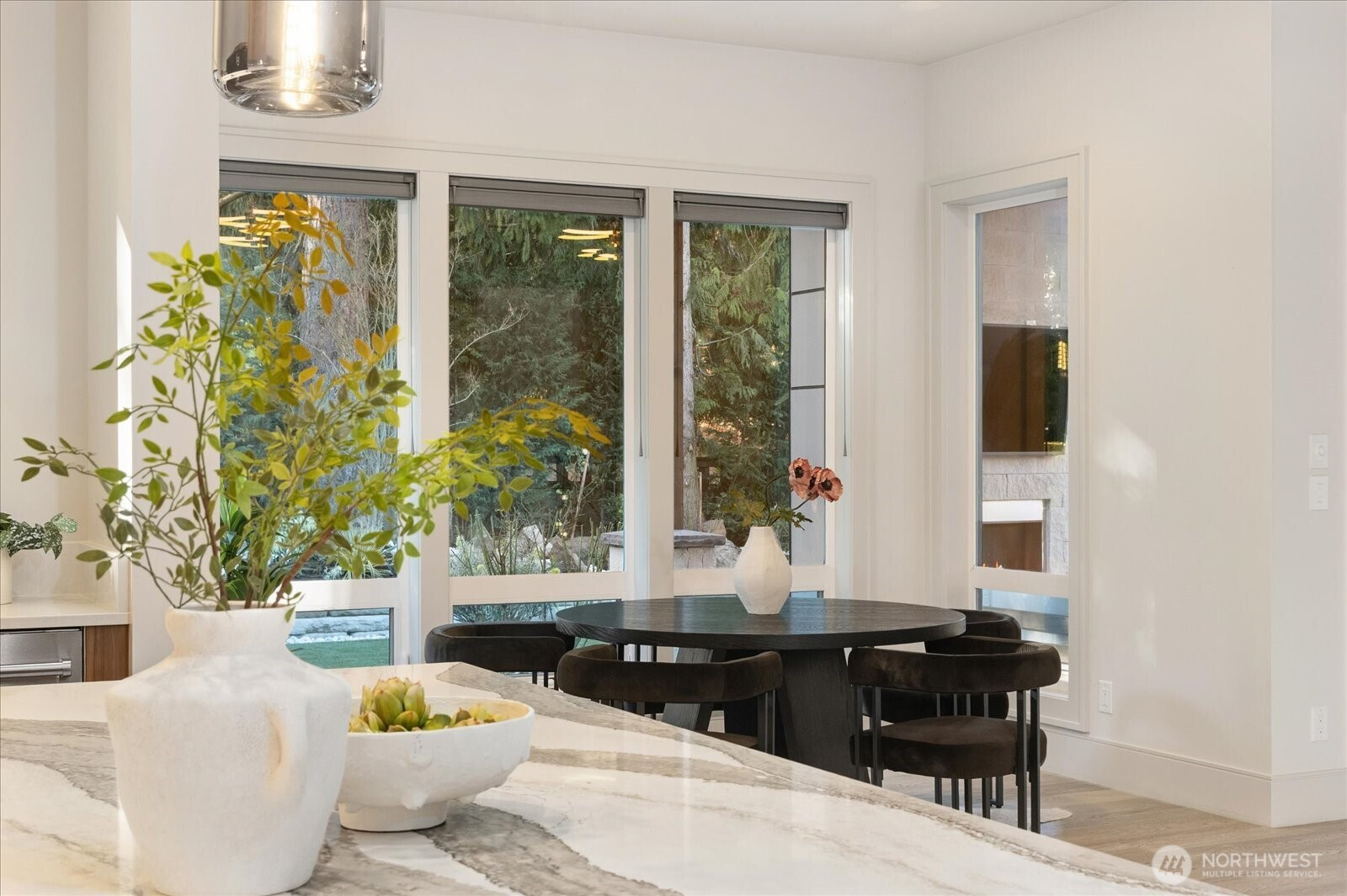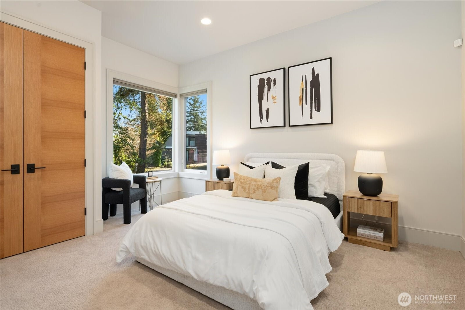 Luxury Lang Homes West Bellevue resale on quiet cul-de-sac, with impressive rock fountains & garden-like entrance.6 bedrooms/4 are ensuites. 4-car tandem garage! Stunning 2-story entry. High level finishes. Brizo lighting. Onsite custom metal & tempered glass stair rail system. 8’ solid oak doors.Plateau engineered oak floors, Pental quartz slabs, bathroom tile floors & full backsplashes.Bellmont Natural Walnut cabinets including drawers, soft close, upper floating swing up cabinets, recycle center. Mirabelle dual mount sink & kitchen island vegetable sink.Huge Cambria Quartz Island, Wolf 48” gas range, Subzero glass front refrigerator, beverage center. Butler’s panty with wine rack,built-in buffet & beverage center for easy access to formal Dining. Living room boasts a 72” Crave fireplace with custom metal mantle & tile surround.Wall details on main floor den & well appointed main level ensuite. Lower level features Wellness room with Red Light Therapy Booth, a Theatre room with built-in beverage center & addtl bed & bath.Top level Primary has vaulted ceilings, fireplace, 5-pc bath with in floor heating, organized closet systems including an LG Steamer! Upstairs Bonus with built-ins, 3 addtl bed/bath.Bidets in every bath but one.Covered vaulted patio with fireplace & Infratech overhead heaters.Fully fenced turf backyard, Greenhouse & Jacuzzi stay. Close to public & private schools, walk to downtown! HVAC Trane wireless control/ air conditioner with 4 zones. It’s a beauty!