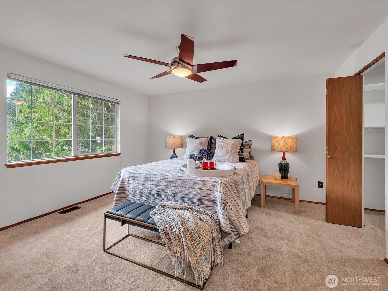 Rare opportunity! Updated home w/breathtaking 180° Cascade Mountain views from every east facing room!This home has it all! Light-filled 3 bedrm/2.5 bath move in ready home w/all new carpet, LVP flooring, interior paint, kitchen appliances & furnace. Newer roof & exterior painted in 2024. Living room has soaring cathedral ceilings, ceiling fan, fireplace w/custom wood mantle. Kitchen with new appliances, granite countertops & adjacent dining area w/slider to expansive Timbertech deck where you can relax and take in the stunning views. Enjoy a spacious recreation room, a generous primary suite with walk-in closet. Award winning Lake Washington Schools. Unbeatable location just minutes to downtown Sammamish, Microsoft, Redmond & Issaquah.