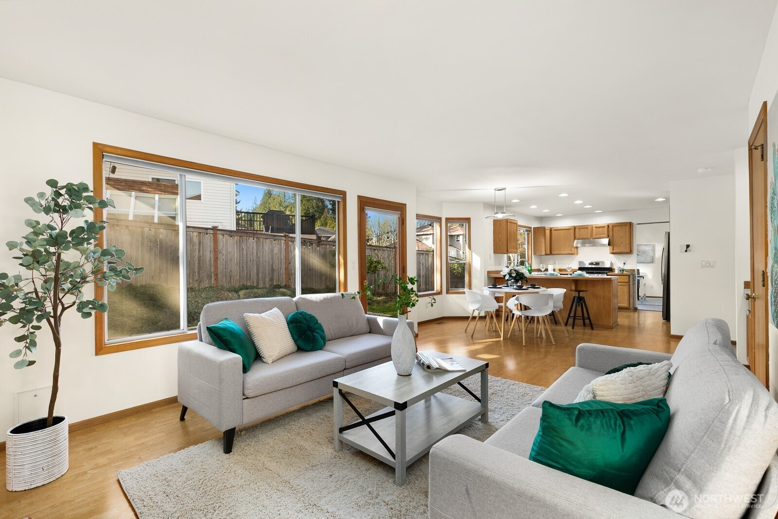 Beautifully refreshed Sammamish home with stunning Cascade Mountain views! Nestled in a desirable Plateau neighborhood, this impressive residence welcomes you with a grand arched front entry and dramatic floor-to-ceiling windows along the staircase. Vaulted ceilings and expansive windows throughout fill the home with abundant natural light, creating a bright and inviting atmosphere. Highlights include a formal living room showcasing breathtaking mountain views and a spacious dining room with a new light fixture. The kitchen features a newly installed gas line connection, brand-new 5-burner gas range, new range hood, and stainless steel dishwasher and refrigerator (2025). It flows seamlessly into the breakfast nook and generous family room, which opens to the backyard patio—perfect for everyday living and effortless entertaining. Upstairs, the spacious master suite offers newly added recessed lighting, a new shower door, and a walk-in closet. Three additional bedrooms and a full bath provide ample space for everyone. Recent updates include new carpet, fresh interior paint, and new gutters. Major system improvements include a new water heater (2025), furnace (2022), and exterior paint (2020). Air conditioning, a two-car garage, and a fully fenced backyard add comfort and convenience. Easy commute: A short drive to light rail and SR-520. Move-in ready and pre-inspected, this home is ideally positioned to capture views you’ll love & create lifelong memories you’ll treasure.