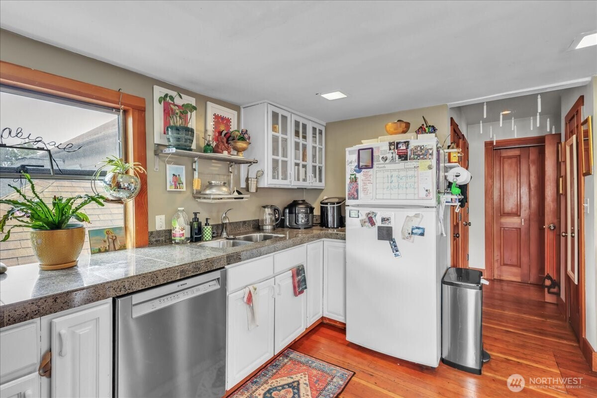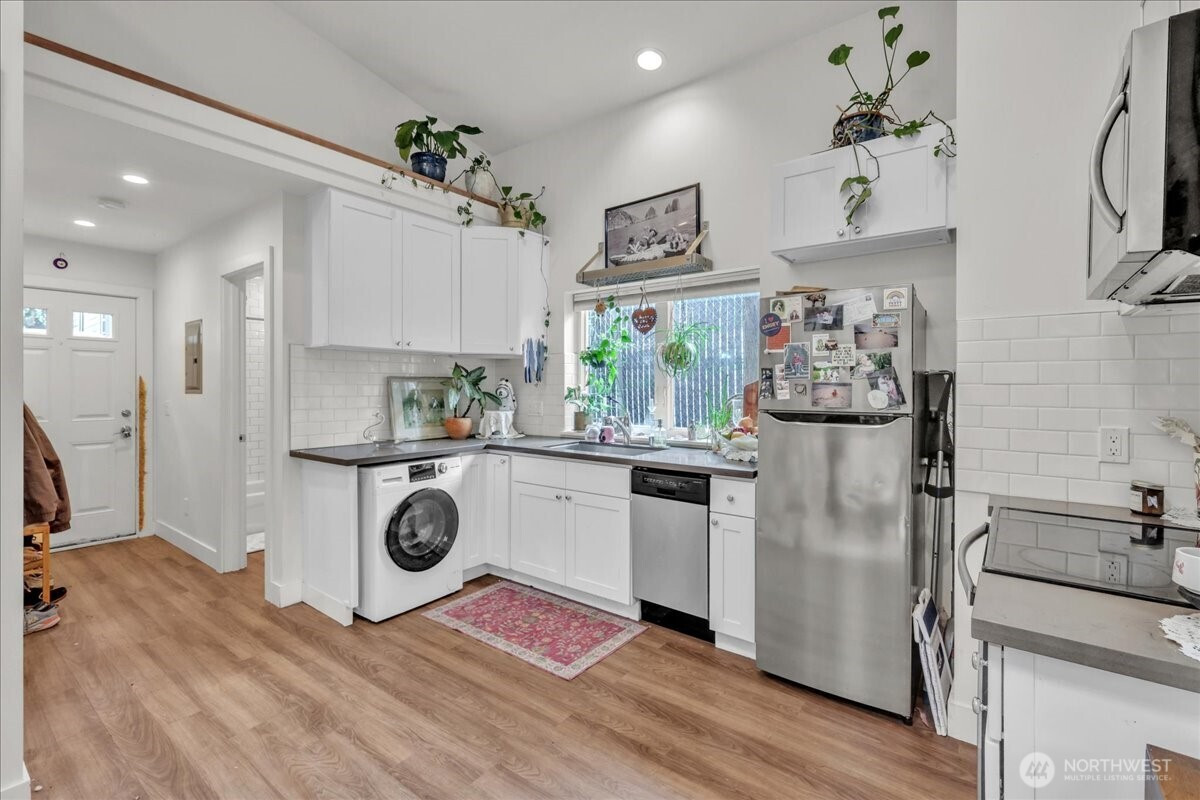 Exceptional owner / investor opportunity on a quiet, residential corner in the Central District. This 3,300 SF lot has a well-maintained & charming triplex with a non-conforming 4th unit, plus a 1 bd/1bth detached additional dwelling unit (DADU) built in 2017. Although there are 5 income generating units, this property qualifies for residential financing, opening the door to more attractive lending options. The fourplex has one 2 bd/1 bth and three 1 bd/1 bth units, each with updated systems, kitchens, and baths. Each floor plan is unique with lots of light, in-unit washer / dryer, dedicated outdoor space, and some featuring views of the Seattle skyline. The 1bd/1 bth DADU features an open floor plan with a modern design and a loft area for additional living space. Long-term development potential with the corner lot and LR2 zoning. Excellent opportunity for an investor seeking stable cash flow in a high-demand location or an owner-occupant looking to offset their mortgage payment with rental income.