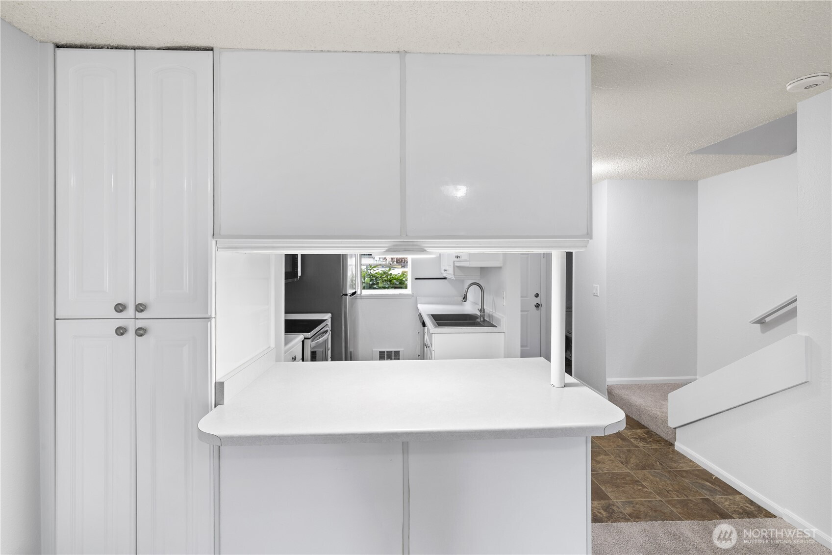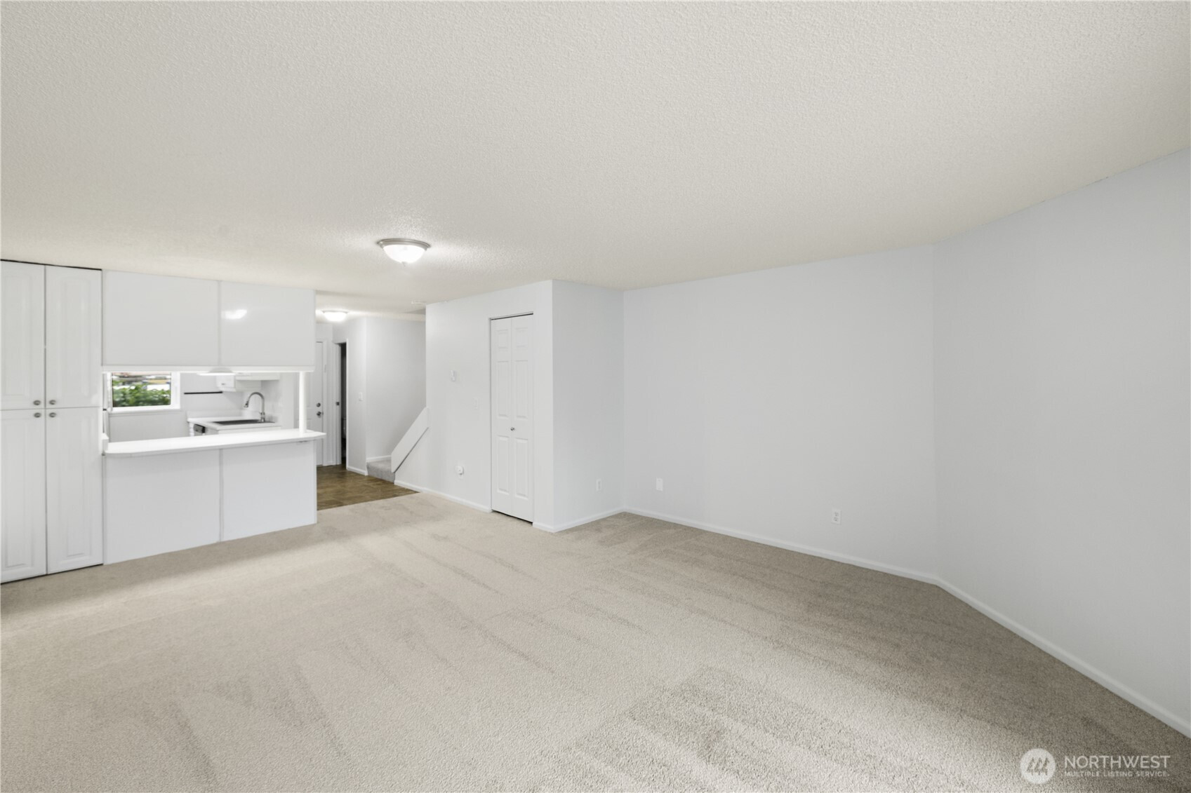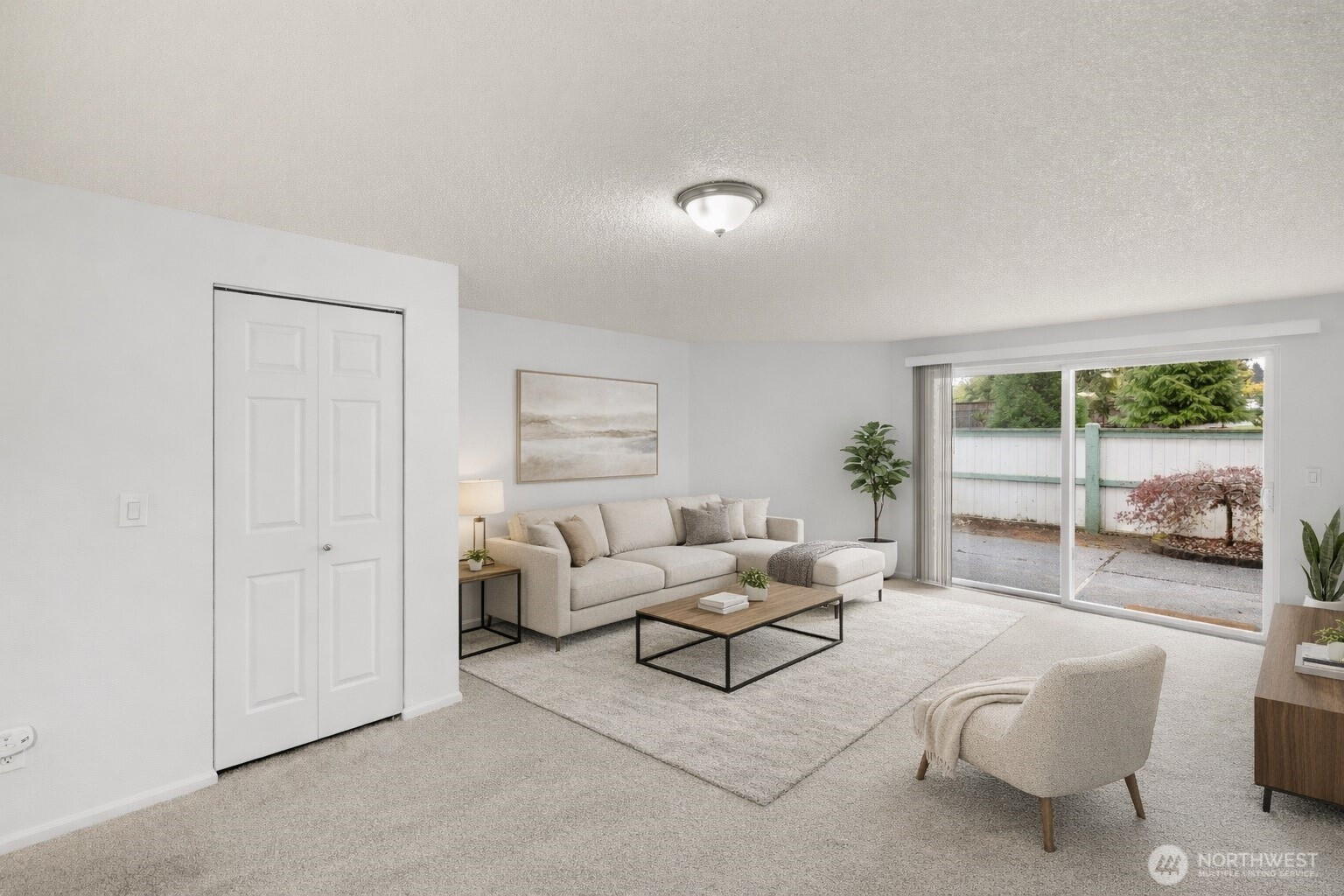 Bright and open two-story condominium with first-floor entry in the Tall Firs community, move-in ready. Updated carpets & paint. Open main-level living space features a large sliding glass door for natural light and access to a spacious fenced patio with a separate storage closet. Peninsula kitchen counter provides additional workspace and storage. Upper level includes laundry, two bedrooms with ample storage, and a full bath; the spacious primary bedroom features a dedicated vanity area. Half bath on main level. All appliances included, 2021 and newer. One assigned carport parking space. Community amenities include outdoor pool, clubhouse/cabana, sport court, exercise room, guest and RV parking. Pets allowed with restrictions. HOA includes water, sewer, and garbage. Virtually staged.