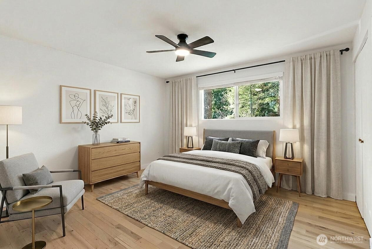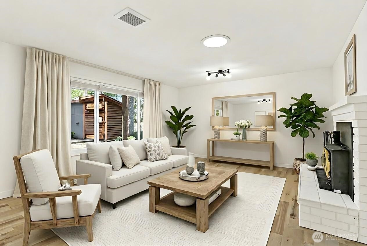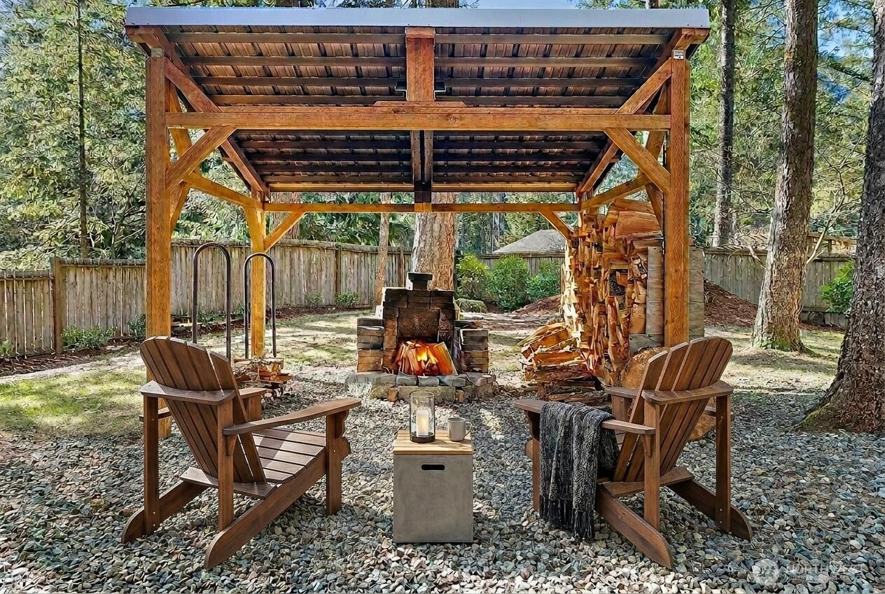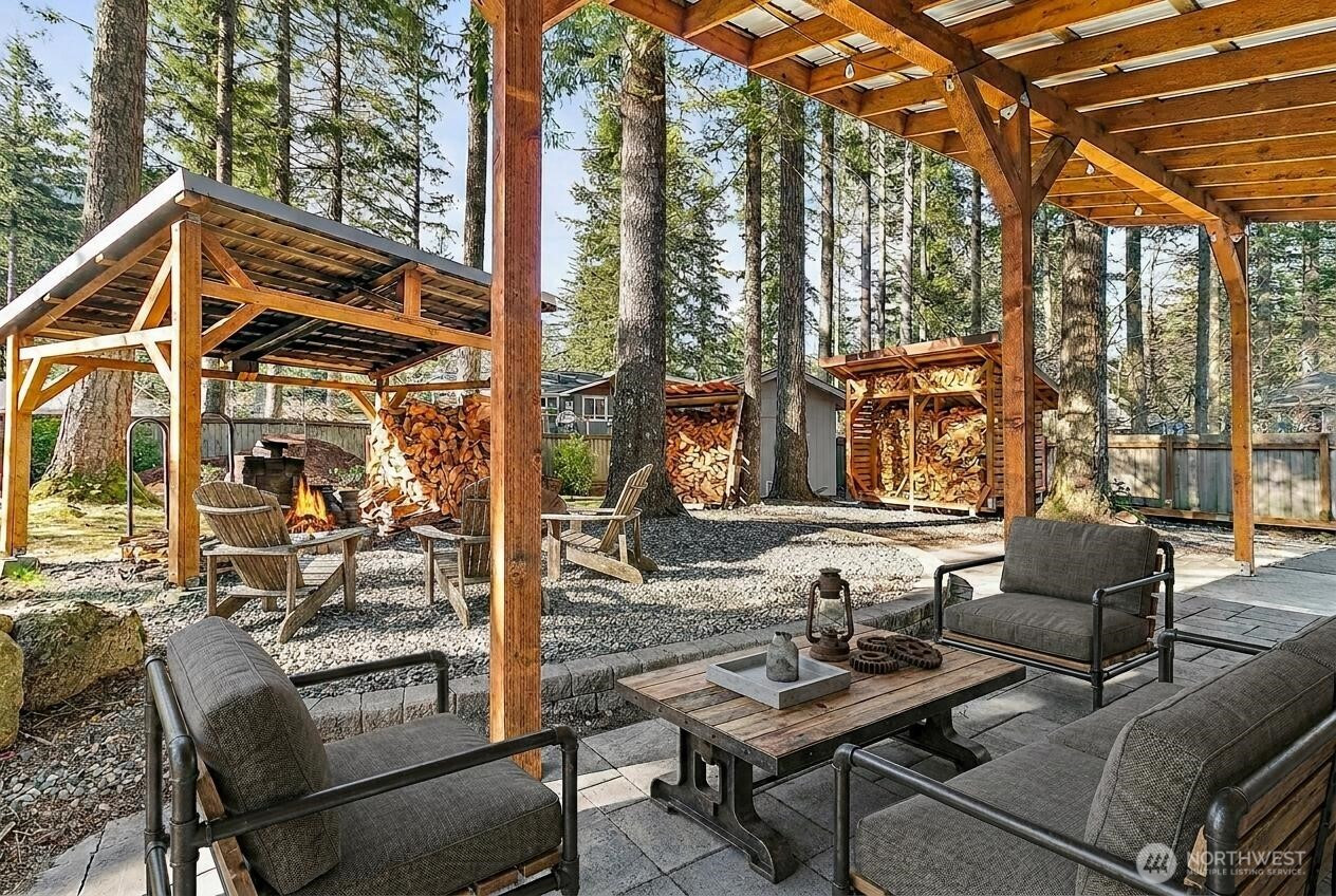 Welcome to this beautifully updated North Bend home offering comfort, style & true Snoqualmie Valley living. Thoughtfully improved throughout, this property features a new roof (2022), new windows (2020), fresh interior paint & remodeled spaces that feel both modern & inviting. The updated open kitchen shines with contemporary finishes & new appliances, creating a functional, stylish space ideal for everyday living & entertaining. Both bathrooms have been tastefully refreshed. A cozy wood stove adds warmth & charm, perfect for Pacific Northwest evenings + new hardwood floors throughout. Step outside to the covered patio with built-in fire pit — an ideal year-round gathering space for relaxing or hosting under the stars. The property also includes a convenient woodshed & dedicated RV parking, offering flexibility for storage, hobbies & adventure-ready living. Located in the heart of North Bend, you'll love the balance of privacy, mountain lifestyle & convenient access to trails, recreation & town amenities. Major system updates are already complete, making this move-in ready home a standout opportunity for comfort, functionality & long-term value. Close to Rattlesnake lake, hiking, trails and more!