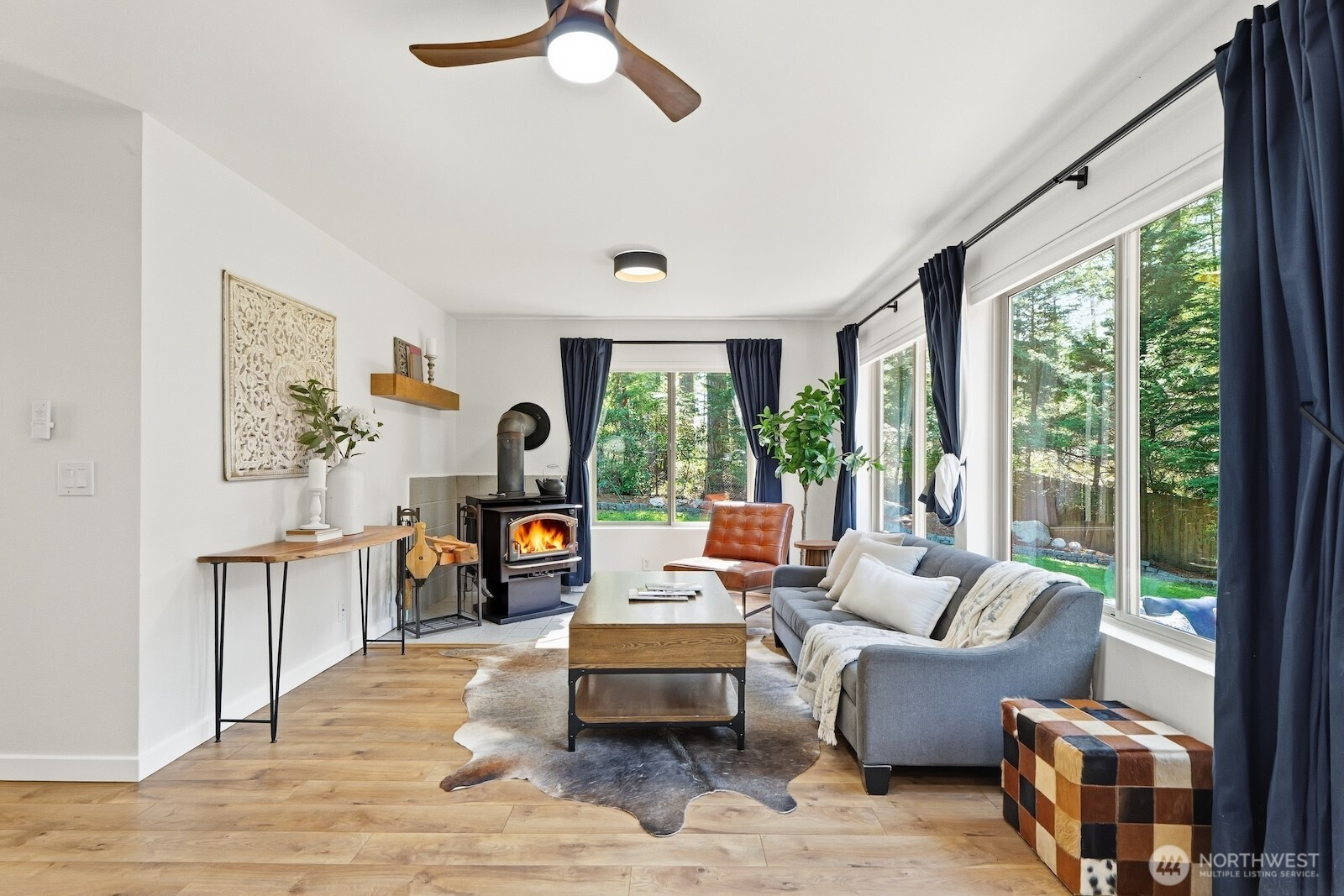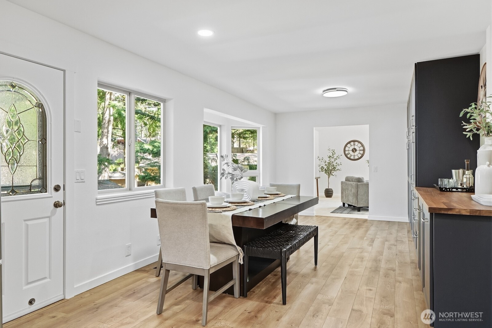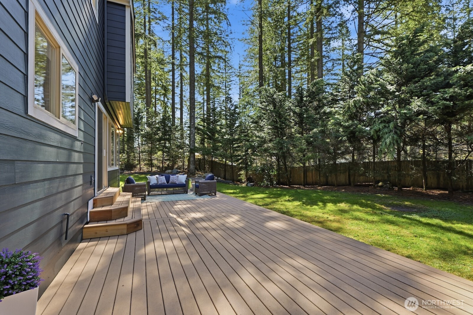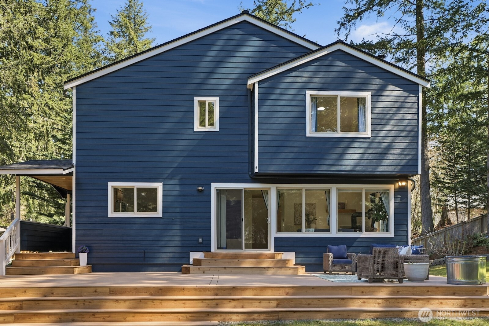 Welcome to your dream home in North Bend's sought-after Wilderness Rim community—ideal for seamless indoor-outdoor living. This updated 3,150 sq ft home sits on a peaceful cul-de-sac & features 5+ bedrooms, 3.5 baths, & a huge, flat, fully fenced backyard with a view of Rattlesnake Ridge. Step inside to an inviting & very spacious layout with vaulted ceilings, a cozy wood stove in the family room, as well as a kitchen equipped with stainless steel appliances, custom wall to ceiling pantry cabinets with a hidden refrigerator & a spacious dining area. Cool All -In-One Washer & Dryer! The upstairs primary suite includes a walk-in closet & beautifully updated en-suite, while the versatile basement offers a separate entrance, 2 bedrooms, an extra nonconforming room and a ¾ bath—perfect for multi-generational living, guests, or possible rental income. Outside enjoy your private park-like oasis w/ an expansive deck, fire pit, RV parking & direct access to greenbelt trails leading to Brewster Lake & the community park. Recent upgrades include new Hardie plank siding & underground gutter drainage ('25), new roof & central A/C ('23), 2 EV chargers & basement expansion ('24), new LVP flooring, updated bathrooms, fresh paint, & light fixtures throughout. Perfect for outdoor enthusiasts, this home is minutes from Rattlesnake Lake, Snoqualmie Valley Trail & Iron Horse State Park. Top-rated Snoqualmie Valley schools & an assumable VA loan @4.75% make this an exceptional find.