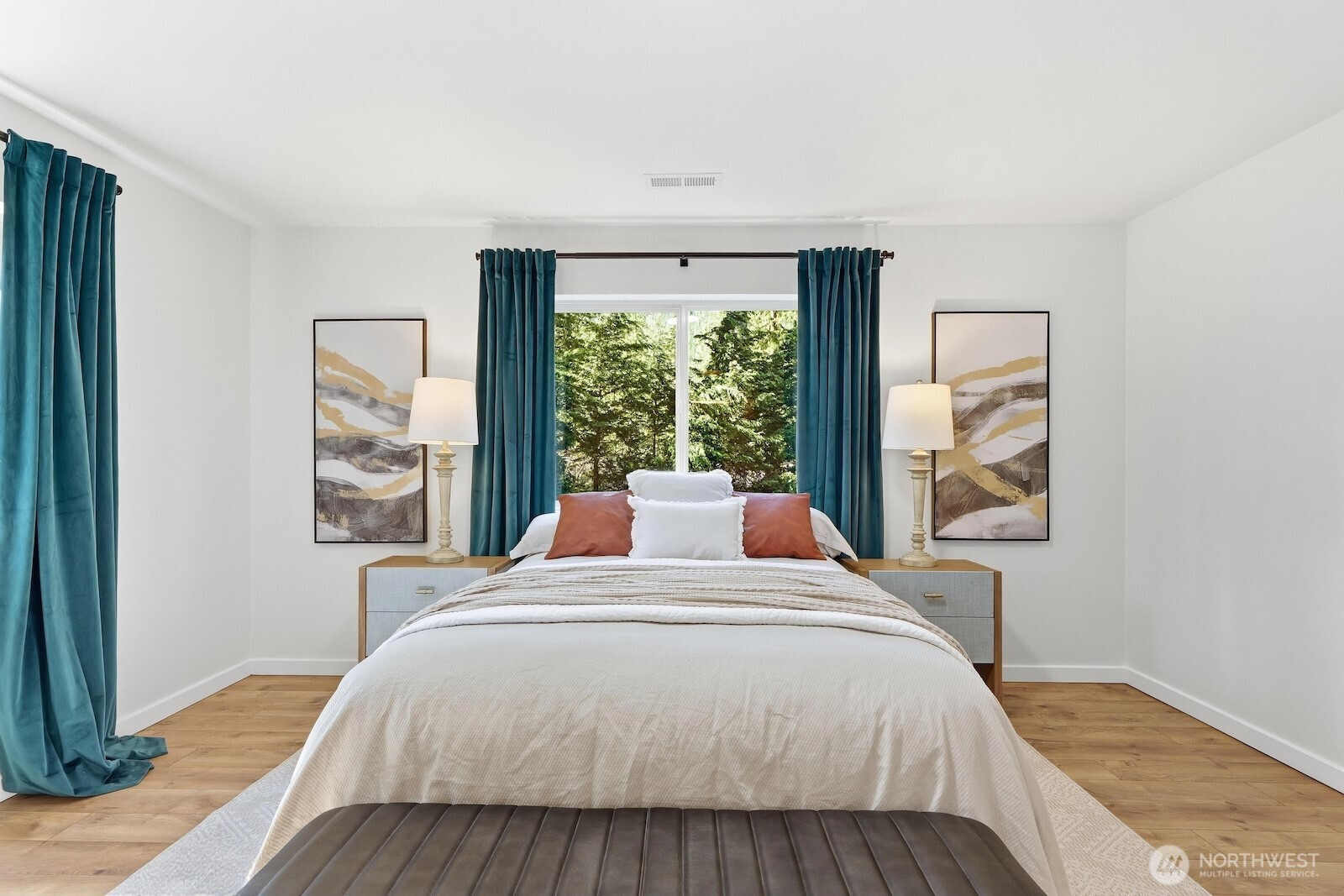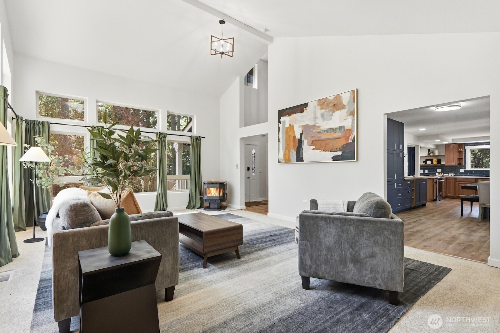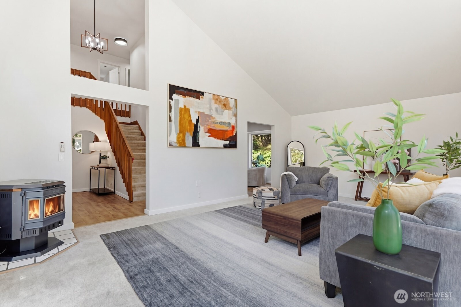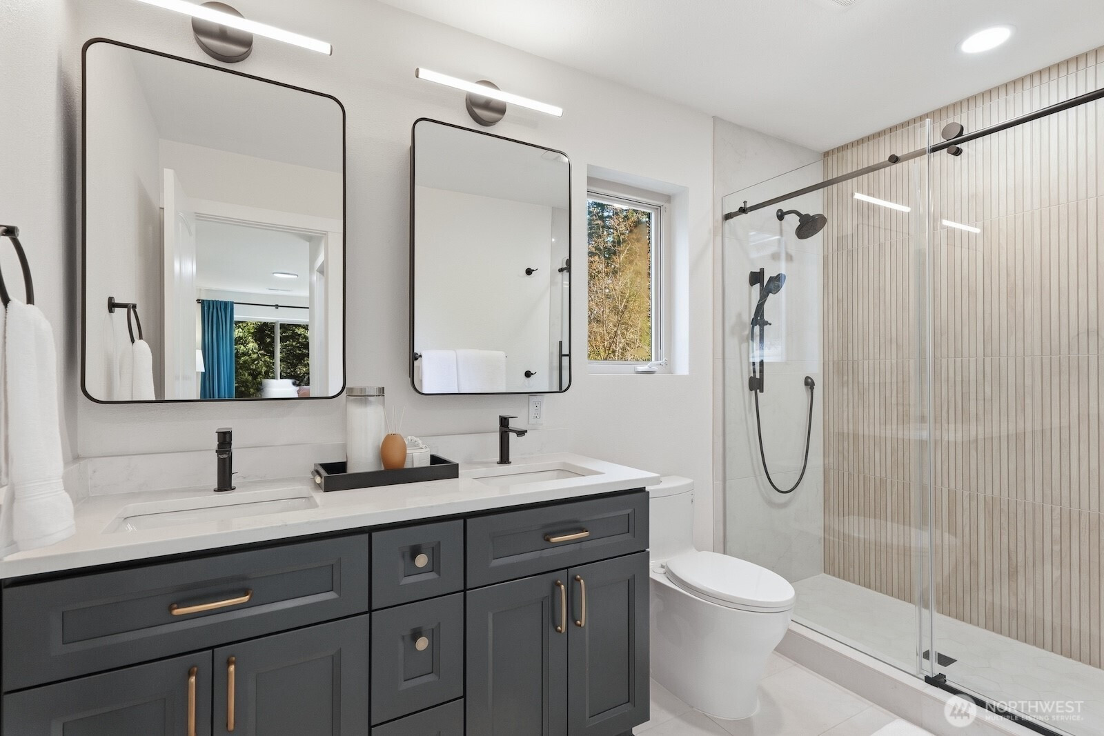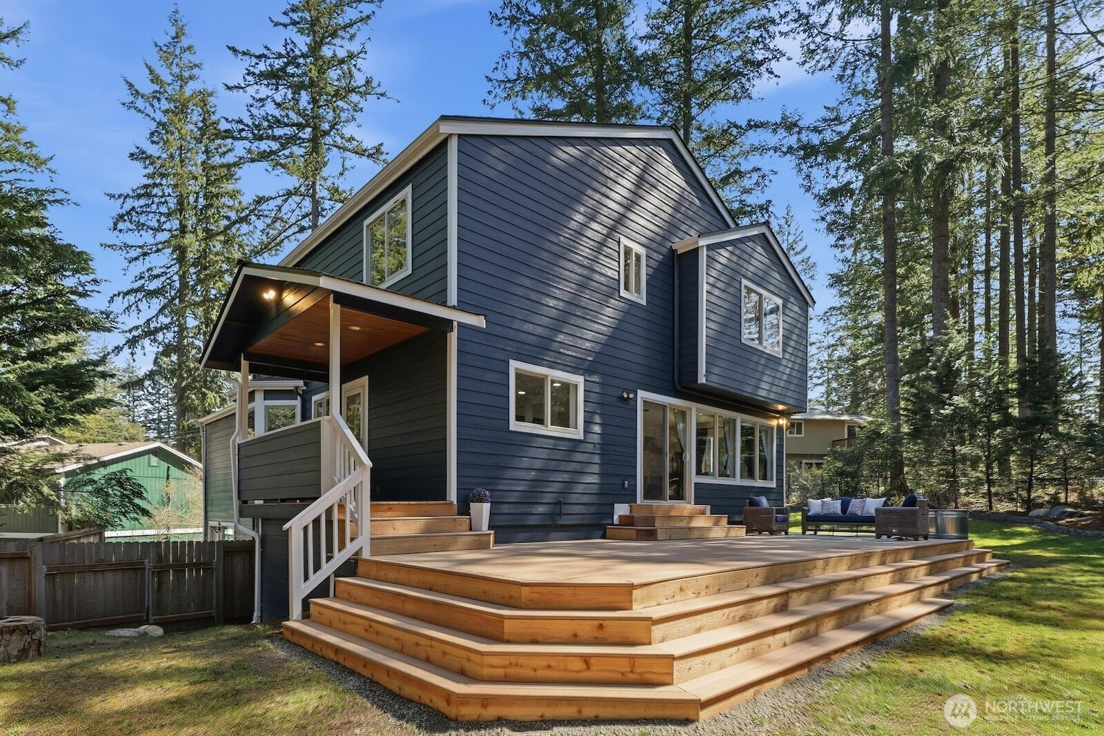 Welcome to your dream home in North Bend's sought-after Wilderness Rim community—ideal for seamless indoor-outdoor living. This updated 3,150 sq ft home sits on a peaceful cul-de-sac & features 5+ bedrooms, 3.5 baths, & a huge, flat, fully fenced backyard with a view of Rattlesnake Ridge. Step inside to an inviting & very spacious layout with vaulted ceilings, a cozy wood stove in the family room, as well as a kitchen equipped with stainless steel appliances, custom wall to ceiling pantry cabinets with a hidden refrigerator & a spacious dining area. Cool All -In-One Washer & Dryer! The upstairs primary suite includes a walk-in closet & beautifully updated en-suite, while the versatile basement offers a separate entrance, 2 bedrooms, an extra nonconforming room and a ¾ bath—perfect for multi-generational living, guests, or possible rental income. Outside enjoy your private park-like oasis w/ an expansive deck, fire pit, RV parking & direct access to greenbelt trails leading to Brewster Lake & the community park. Recent upgrades include new Hardie plank siding & underground gutter drainage ('25), new roof & central A/C ('23), 2 EV chargers & basement expansion ('24), new LVP flooring, updated bathrooms, fresh paint, & light fixtures throughout. Perfect for outdoor enthusiasts, this home is minutes from Rattlesnake Lake, Snoqualmie Valley Trail & Iron Horse State Park. Top-rated Snoqualmie Valley schools & an assumable VA loan @4.75% make this an exceptional find.