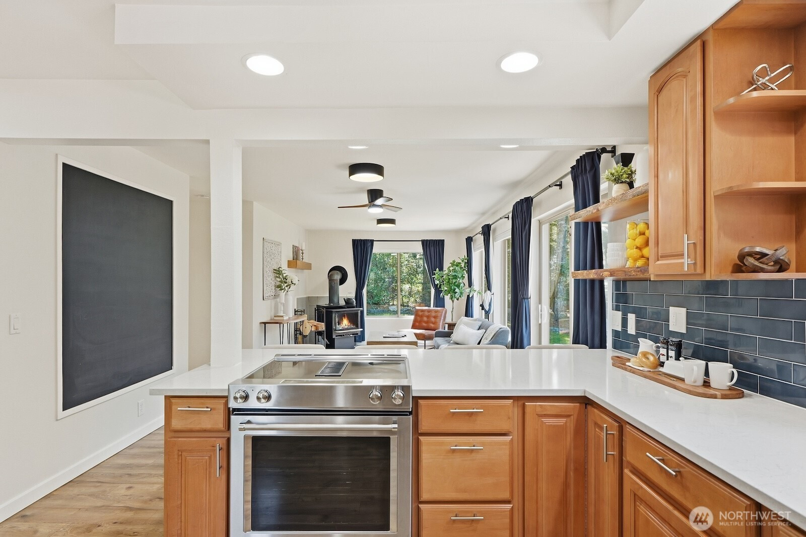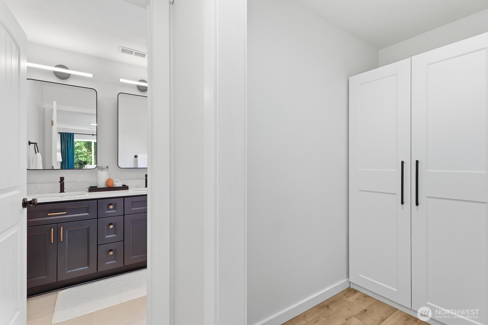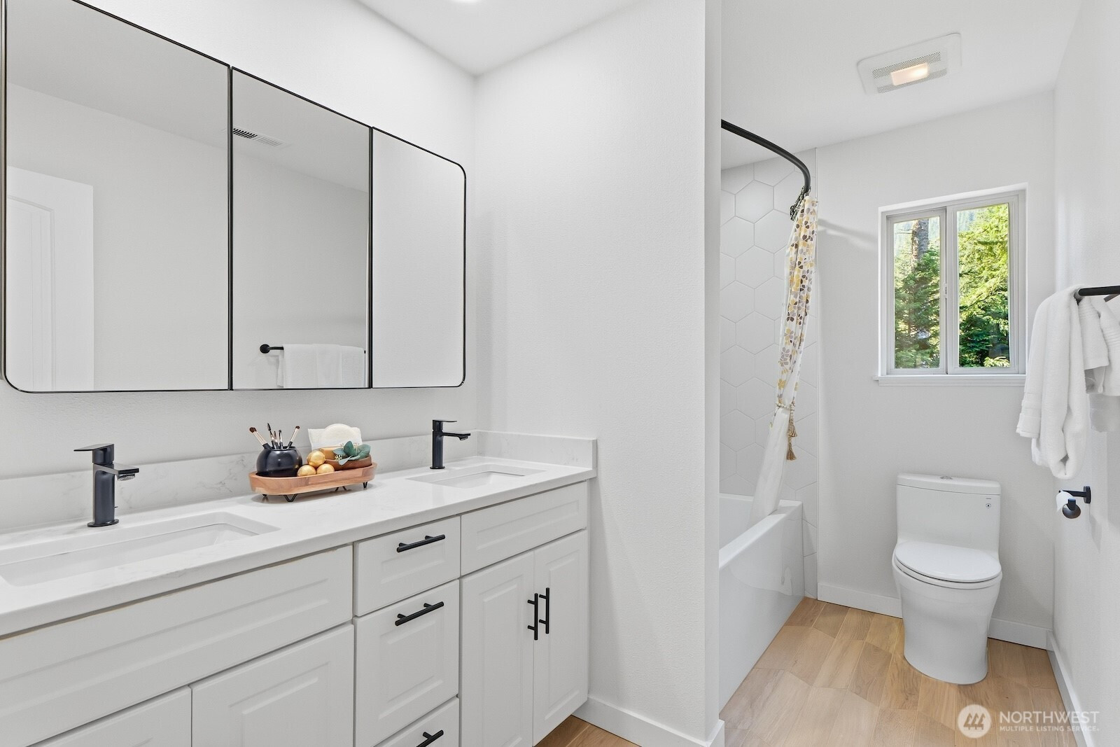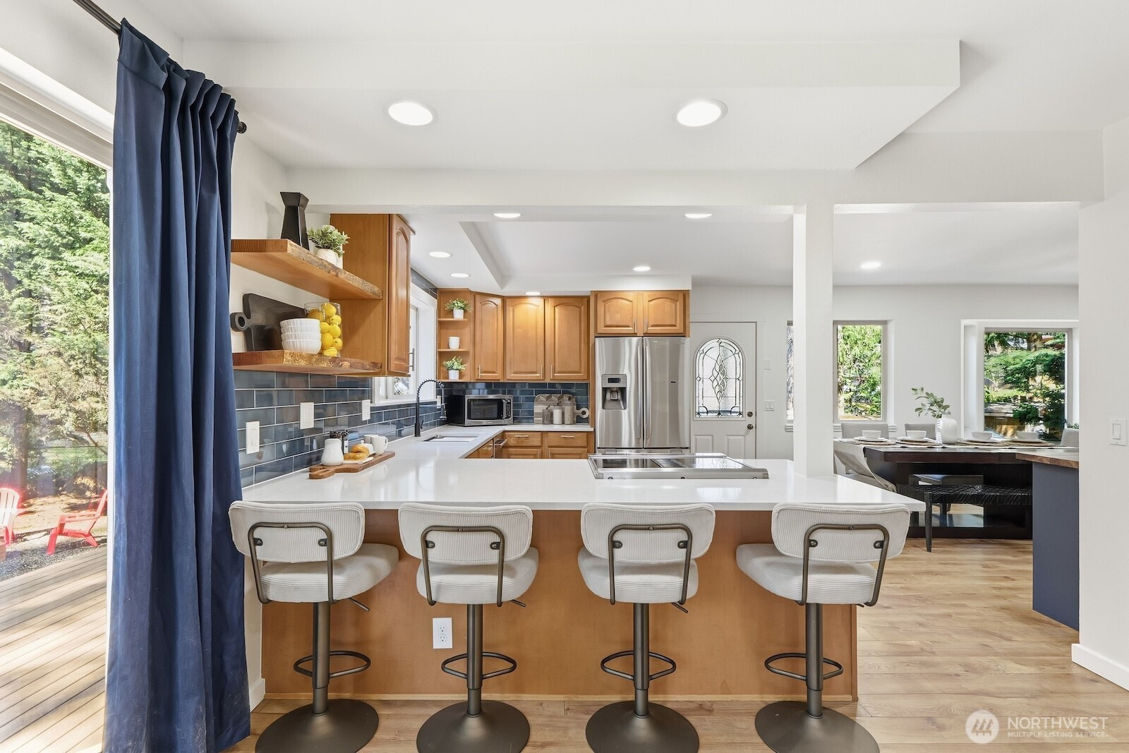 Welcome to your dream home in North Bend's sought-after Wilderness Rim community—ideal for seamless indoor-outdoor living. This updated 3,150 sq ft home sits on a peaceful cul-de-sac & features 5+ bedrooms, 3.5 baths, & a huge, flat, fully fenced backyard with a view of Rattlesnake Ridge. Step inside to an inviting & very spacious layout with vaulted ceilings, a cozy wood stove in the family room, as well as a kitchen equipped with stainless steel appliances, custom wall to ceiling pantry cabinets with a hidden refrigerator & a spacious dining area. Cool All -In-One Washer & Dryer! The upstairs primary suite includes a walk-in closet & beautifully updated en-suite, while the versatile basement offers a separate entrance, 2 bedrooms, an extra nonconforming room and a ¾ bath—perfect for multi-generational living, guests, or possible rental income. Outside enjoy your private park-like oasis w/ an expansive deck, fire pit, RV parking & direct access to greenbelt trails leading to Brewster Lake & the community park. Recent upgrades include new Hardie plank siding & underground gutter drainage ('25), new roof & central A/C ('23), 2 EV chargers & basement expansion ('24), new LVP flooring, updated bathrooms, fresh paint, & light fixtures throughout. Perfect for outdoor enthusiasts, this home is minutes from Rattlesnake Lake, Snoqualmie Valley Trail & Iron Horse State Park. Top-rated Snoqualmie Valley schools & an assumable VA loan @4.75% make this an exceptional find.