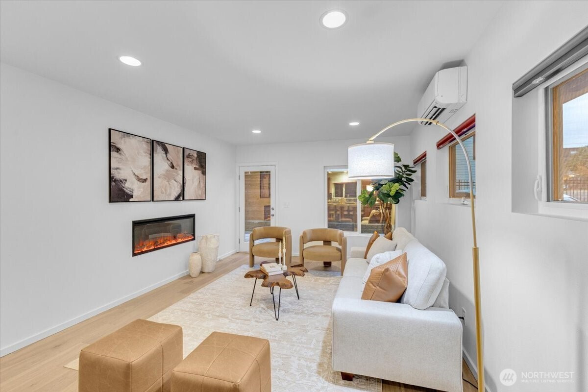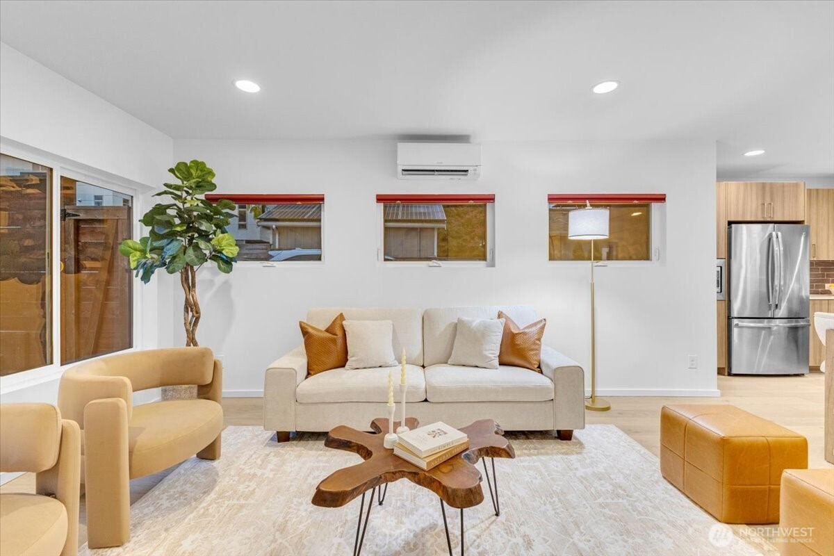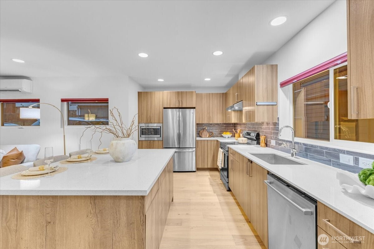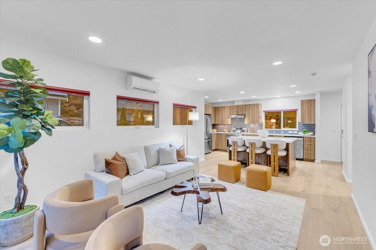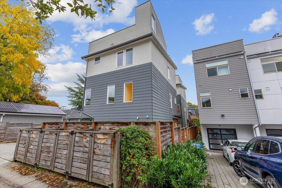 Discover urban elegance in this stunning 2017-built, fully detached 4BR/2.25 BA townhome spanning 1,920 sq. ft. Step into a light-filled haven w/ sleek cedar accents, open-concept living/dining & chef's kitchen boasting quartz counters, SS appliances, an island w/seating for 3. Four generous beds upstairs with WIC's, A primary suite w/spa-like bath, walk-in closet, & dual vanities. Ascend to the sprawling rooftop deck w/ panoramic city/mountain views ideal for sunset soirees, al fresco dining, or stargazing! Low-maint yard w/off-street parking for 2 cars. Top-rated Adams Elem & Ballard High. Walk to Ballard Locks, Golden Gardens Park, Ballard Ave, Sunday farmers market, & D Line light rail! Ballard's at your door step!