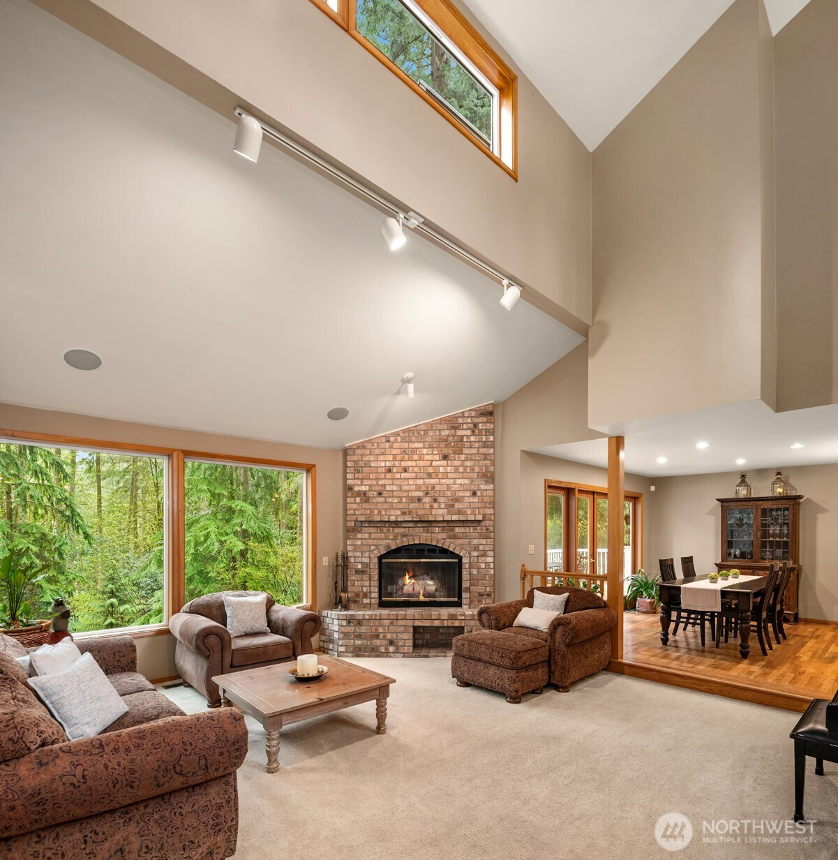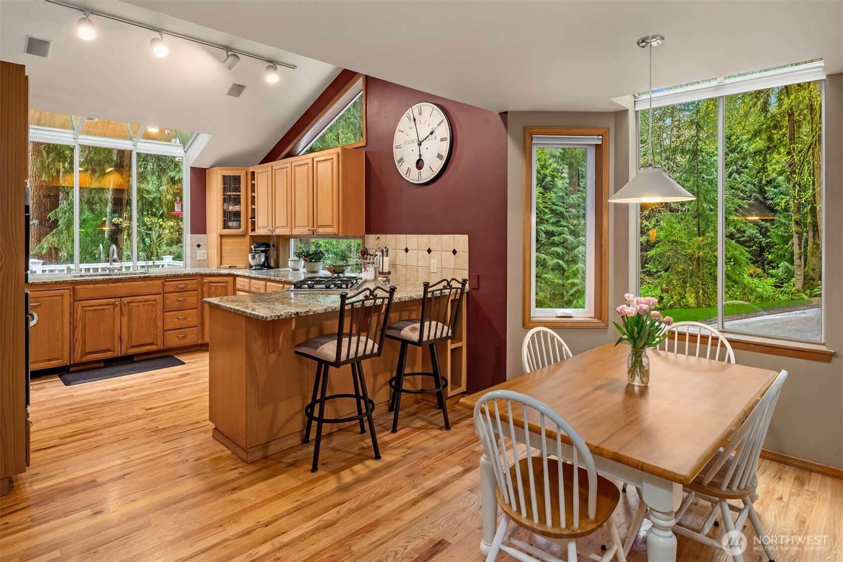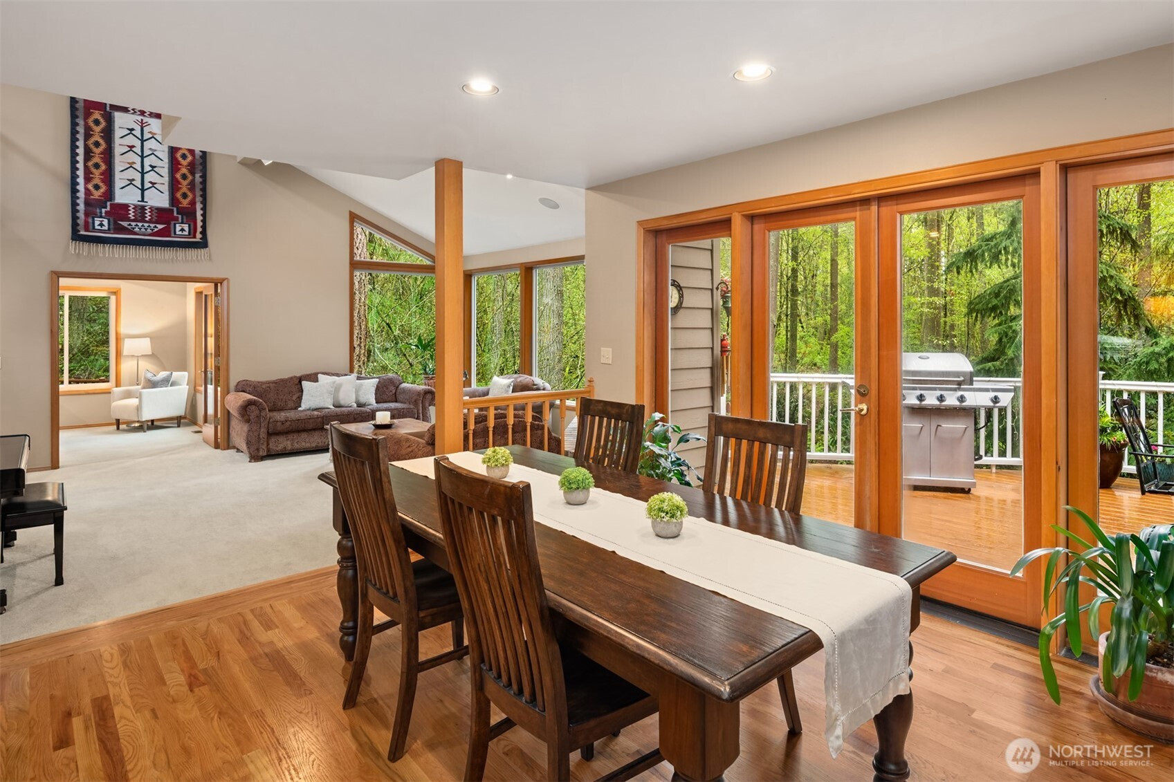 Architecturally striking Woodinville acreage home. Nestled on a quiet dead end lane in one of the most desirable locations in all of the Hollywood Hill community, this captivating NW contemporary style residence is now available for the first time ever on the open market. Lovingly maintained by original owners, this custom residence offers soaring ceilings, exposed beams & walls of glass overlooking lush garden areas & peaceful woodlands. The sundrenched interior offers open concept gathering spaces with formal living & dining areas, executive office, chef’s kitchen with breakfast nook & adjacent family room. The spacious upper level boasts the convenience of 3 BRs & 2 BAs including a sumptuous primary suite with cozy fireplace, private veranda & luxurious 5-piece bath. The expansive daylight basement provides the perfect setting for guests with additional BR, full bath, huge bonus room, unfinished storage space & oversized 2 car garage w/workshop. This 5 acre estate style property provides exceptional privacy & incredible outdoors spaces including multiple entertainment decks, sports court for pickleball or basketball, greenhouse, professionally designed landscaping & storybook garden areas with mature plantings. Coveted location in the award-winning Northshore School District, directly adjacent to the Pipeline Trail for miles of recreational opportunities, just mins from Woodinville Wine Country, Sammamish Bike Trail, popular concerts & vibrant shopping/dining experiences.