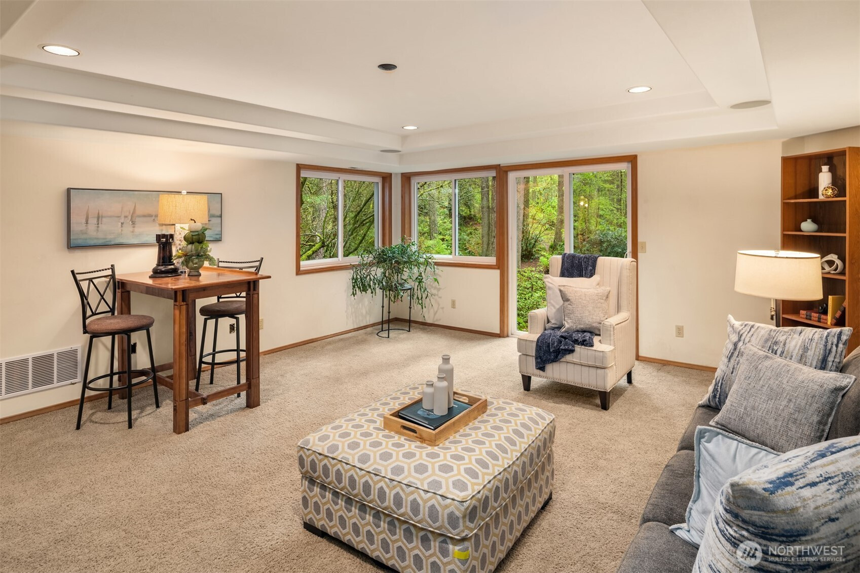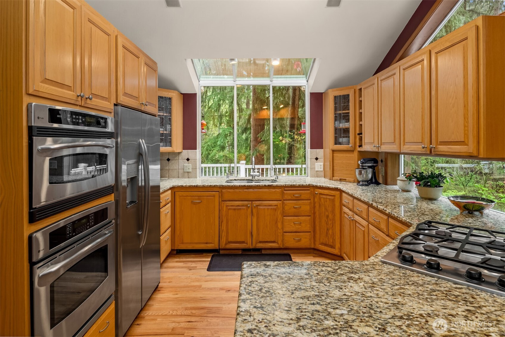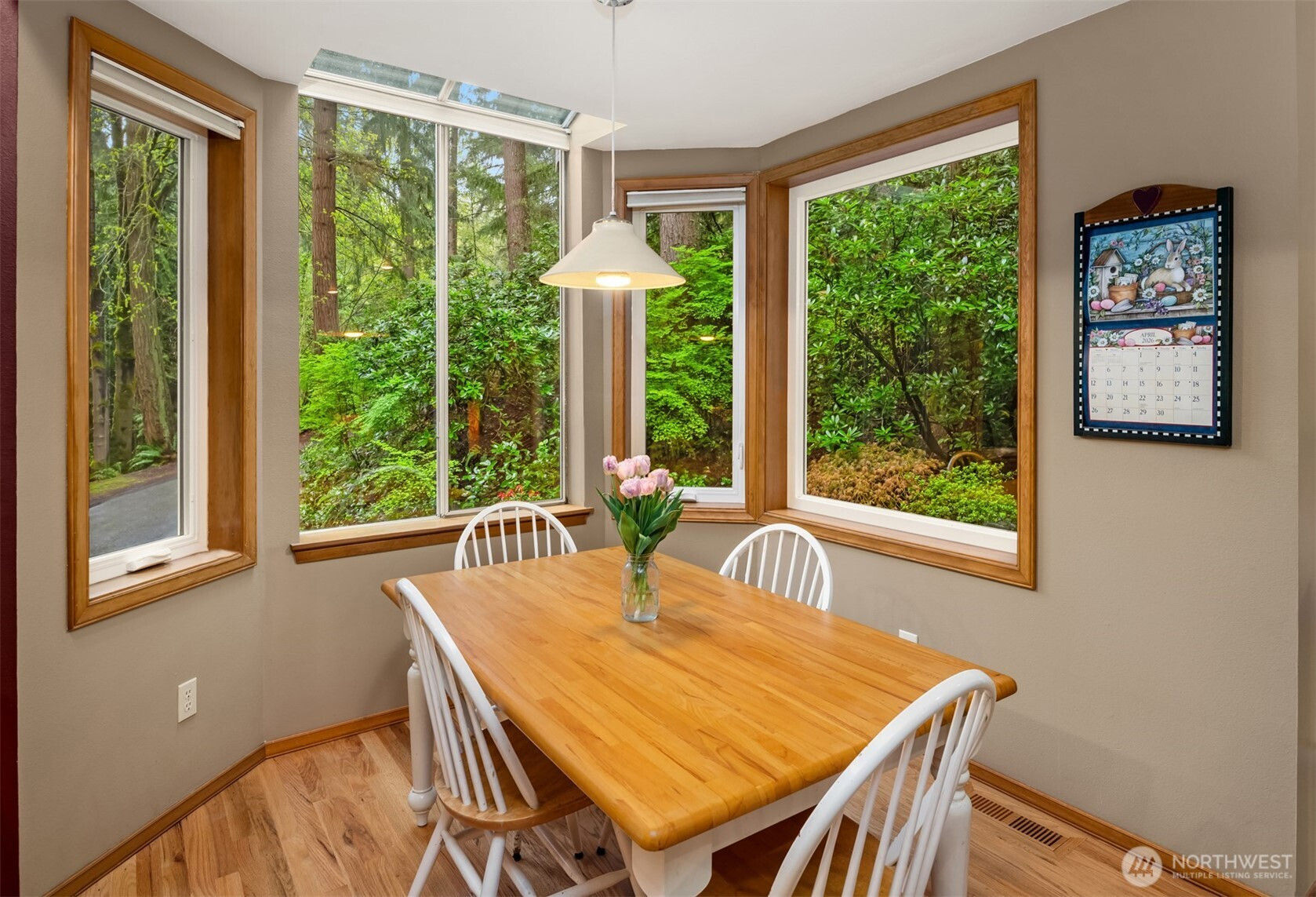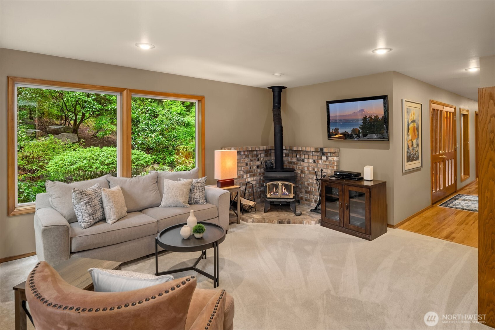 Architecturally striking Woodinville acreage home. Nestled on a quiet dead end lane in one of the most desirable locations in all of the Hollywood Hill community, this captivating NW contemporary style residence is now available for the first time ever on the open market. Lovingly maintained by original owners, this custom residence offers soaring ceilings, exposed beams & walls of glass overlooking lush garden areas & peaceful woodlands. The sundrenched interior offers open concept gathering spaces with formal living & dining areas, executive office, chef’s kitchen with breakfast nook & adjacent family room. The spacious upper level boasts the convenience of 3 BRs & 2 BAs including a sumptuous primary suite with cozy fireplace, private veranda & luxurious 5-piece bath. The expansive daylight basement provides the perfect setting for guests with additional BR, full bath, huge bonus room, unfinished storage space & oversized 2 car garage w/workshop. This 5 acre estate style property provides exceptional privacy & incredible outdoors spaces including multiple entertainment decks, sports court for pickleball or basketball, greenhouse, professionally designed landscaping & storybook garden areas with mature plantings. Coveted location in the award-winning Northshore School District, directly adjacent to the Pipeline Trail for miles of recreational opportunities, just mins from Woodinville Wine Country, Sammamish Bike Trail, popular concerts & vibrant shopping/dining experiences.