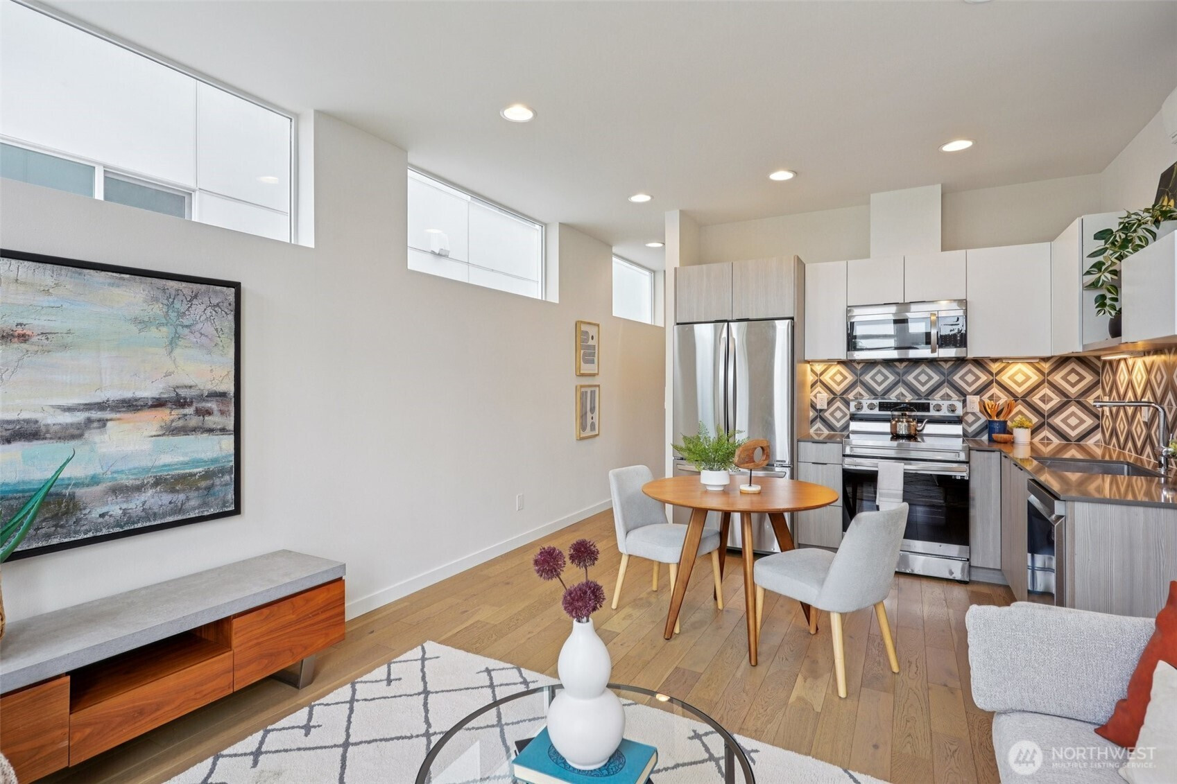 Stand-alone home in the heart of North Beacon Hill - 83 Walk Score near restaurants, coffee, grocery store & underground light-rail! This is the 1st townhome sold since they were built in 2020; no surprise, once you move to the hill you never want to leave! Raised entry w/ floor to ceiling windows, hardwood floors, soft-close cabinetry & other upgrades. Stunning rooftop deck w/ sweeping views of Lake Washington & the Bellevue skyline—a perfect spot for a quiet moment or an evening with friends. Zoned for newly constructed Kimball Elementary School (opened last year). Pride of ownership - fully pre-inspected & turnkey w/ new carpet & paint, ready to "just move in" and start your next chapter.