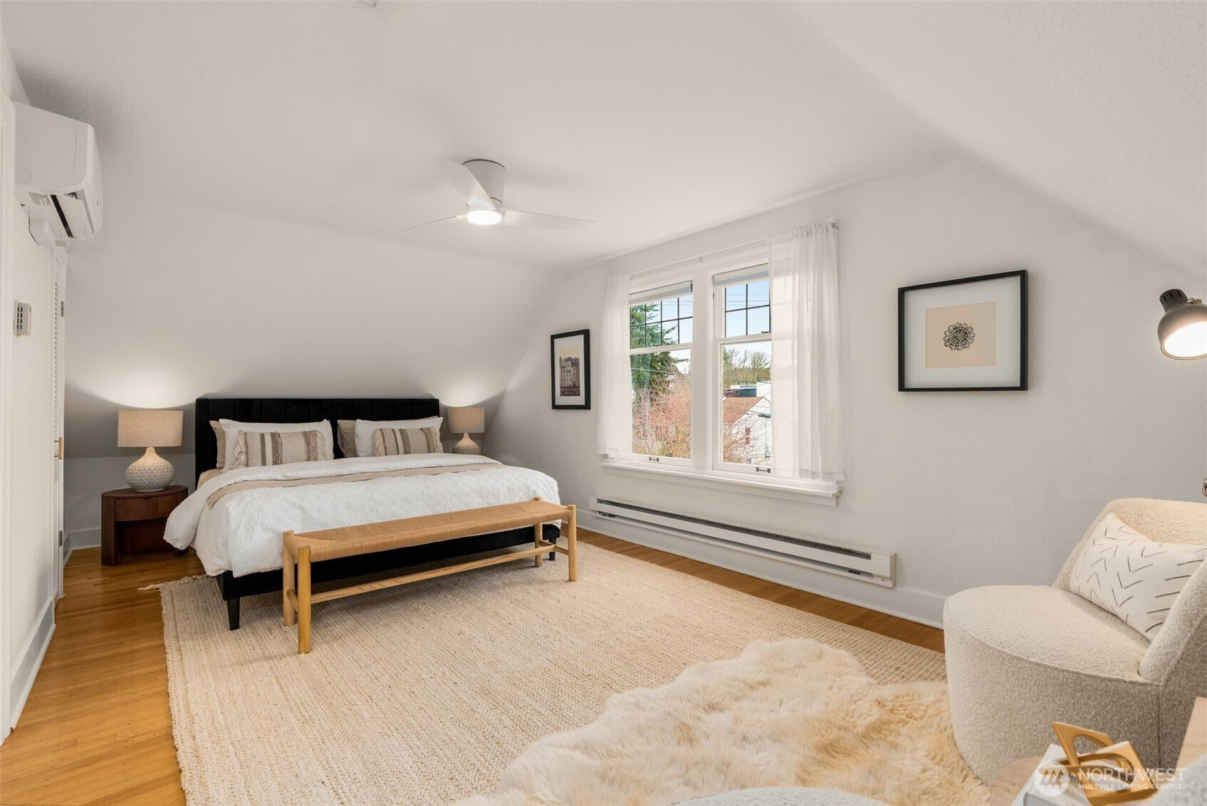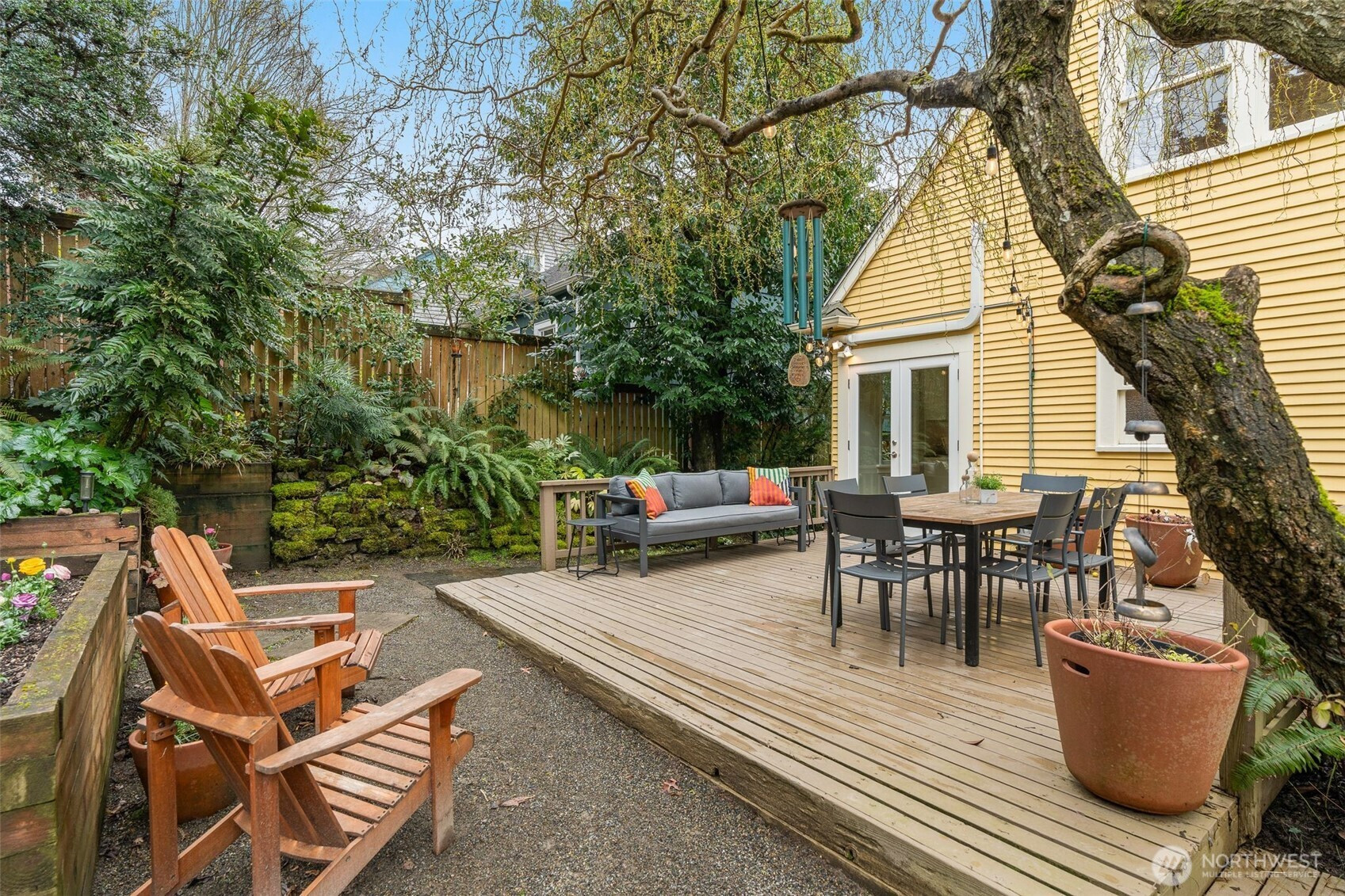 Nestled in the highly sought-after Madrona neighborhood, this timeless residence beautifully blends period character with thoughtful modern updates. Perched above the street, the home enjoys a serene territorial outlook framed by blooming trees, creating a picturesque and inviting setting. Just a few blocks from Madrona’s vibrant main street, enjoy effortless access to beloved local restaurants, cafés, and boutiques, while the natural beauty of Washington Park Arboretum & Lake Washington await less than a mile away. Inside, classic charm is preserved throughout, complemented by a beautifully remodeled kitchen opening seamless through French Doors to a private back deck and tranquil yard anchored by a magical willow tree—perfect for indoor-outdoor living. The spacious living room offers a warm and welcoming retreat, centered around a cozy fireplace. The flexible floor plan includes a bedroom and bath on the main level, two additional bedrooms upstairs with newly installed mini-splits for heating and A/C. The lower level expands your living space with a fourth bedroom, rec room, and dedicated laundry area. A newly renovated garage offers exceptional versatility—ideal for a home gym, studio, or additional storage. A truly special place to call home in the heart of Madrona.