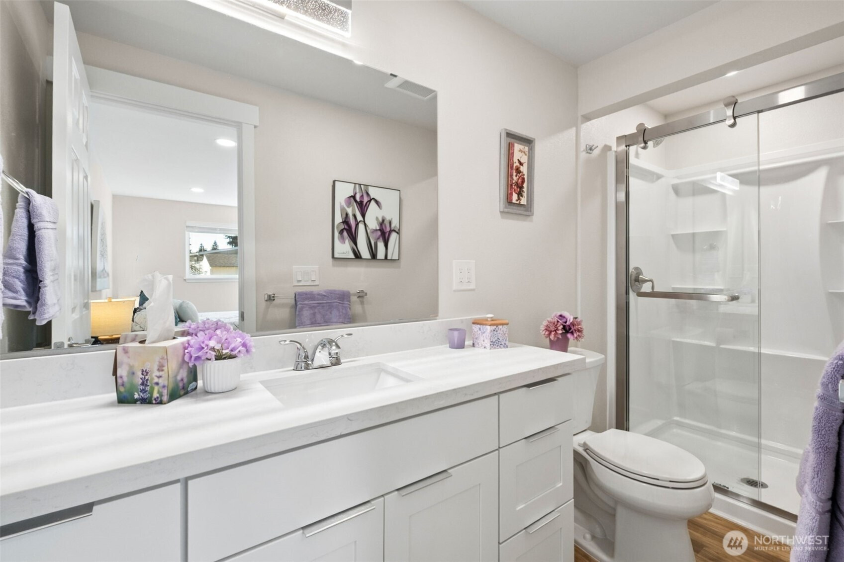 3200 square foot 4 bedroom, 4 bathroom with a private office - transformative remodel of this amazing home. Features eat-in kitchen AND dining room, two primary bedrooms, both with 3/4 bathrooms, and newly finished 2nd story. Home has new kitchen, bathrooms, dining room, floors, doors, trim, paint, closets, lighting, all but one window (it was already newer), and gorgeous closets. The upstairs office is insulated for sound and the home is designed with today's electrical needs in mind (there are lots of plugs)! The upstairs primary suite has a private tiled shower in the connected bathroom and two almost 20 foot by 7 foot closets. Home also includes two large bonus rooms to create your own spaces. Fully fenced back yard with big lockable shed and room to play. There are multiple ways to take advantage of this home - come create your future here. PS - grass in photos is edited in - new grass seed has sprouted and is now growing strong.