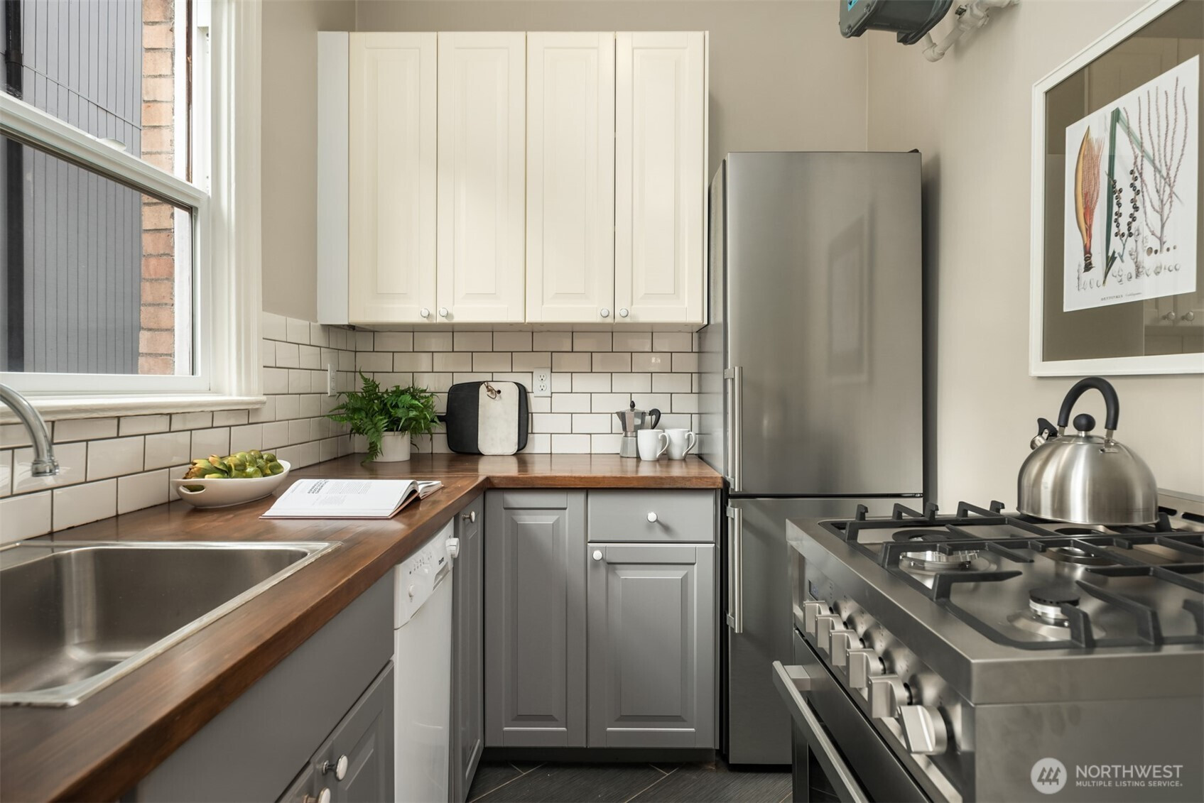 Welcome to this charming and classic Capitol Hill Co-op residence, beautifully refreshed with new floors, fresh paint, new windows, updated kitchen appliances, and thoughtful building upgrades. The fully remodeled kitchen showcases warm butcher-block counters, and the flexible floor plan easily supports a second bedroom or an ideal home office. Enjoy the rare convenience of in-unit laundry, complete with a washer/dryer, a dedicated laundry room, and a spacious walk-in closet. Step outside and you’re just moments from Capitol Hill’s best dining, coffee shops, nightlife, groceries, parks, and transit—everything that makes this neighborhood so iconic. With HOA dues already paid through June, the value is even more compelling. This is an exceptional opportunity to own a full-size, 750 sqft condo in Capitol Hill at an incredible price—a rarity in one of Seattle’s most sought-after neighborhoods and truly an opportunity not to be missed. The home’s full appeal is best experienced in person—schedule your tour and see firsthand why opportunities like this rarely come along. HOA dues include water, central hot water, heat, sewage, garbage, high-speed internet, prop taxes, & common area maintenance.