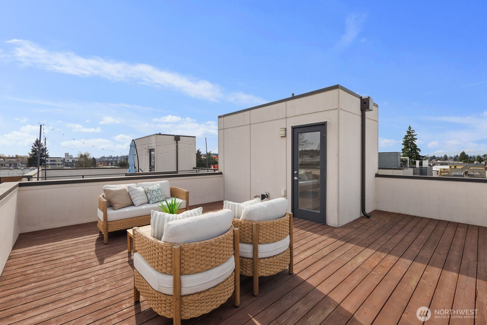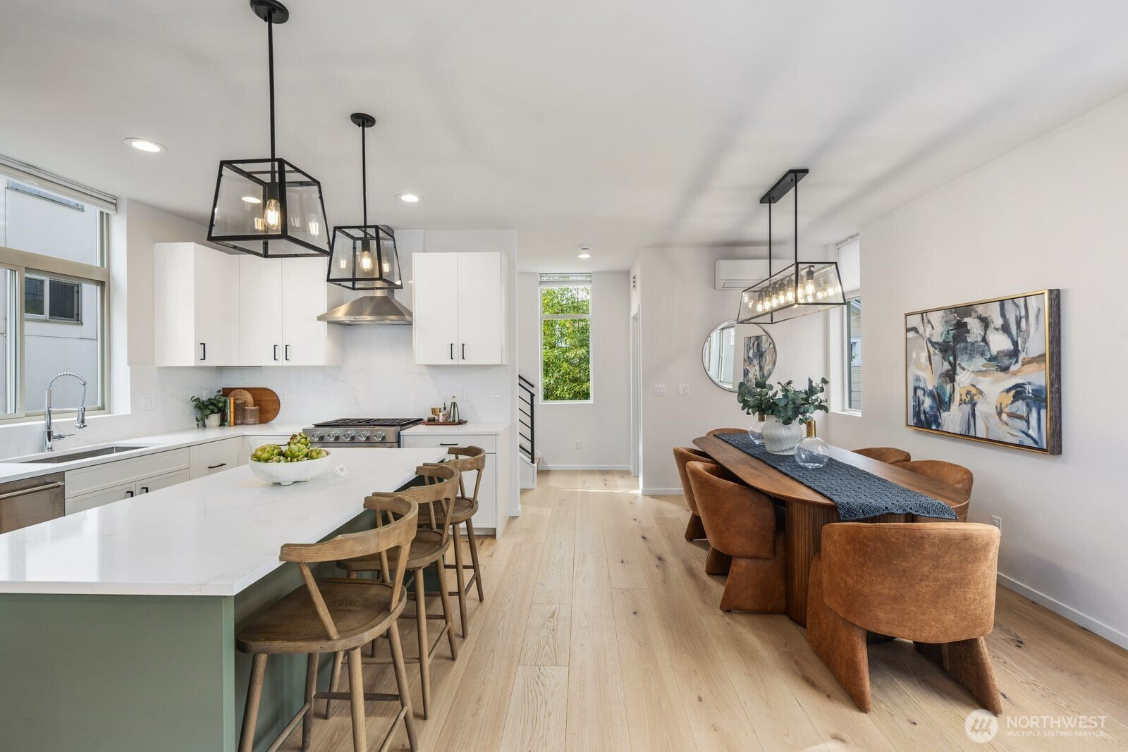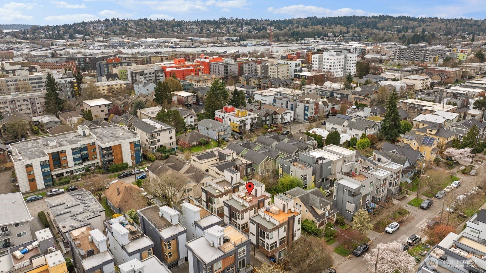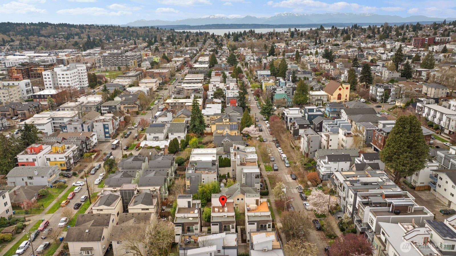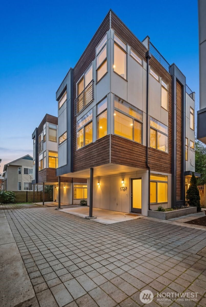 Experience modern urban living in this beautifully updated 2017 stand alone townhome offering 3 bedrooms + office/nursery, 2.5 baths with 1,923 sq ft of thoughtfully designed space. The main level welcomes you with a bright, open-concept layout featuring spacious living and dining areas, new hardwood flooring, and a chef's kitchen with quartz countertops, stainless steel appliances, and a striking center island perfect for entertaining. Upstairs, retreat to the primary suite with a spa-inspired bath, dual vanities, and a generous walk-in closet. An additional flexible room on this level makes an ideal home office, nursery, or lounge, while a full laundry room on the same floor adds everyday ease. The ground floor includes two additional bedrooms and a full bath, providing privacy and versatility for guests or roommates. Take entertaining to the next level on the rooftop deck with views of Mount Rainier and the Cascades, perfect for sunset gatherings, al fresco dining, or stargazing. Enjoy modern living with smart-home features like a Ring camera and smart lock, offering added convenience and peace of mind. The home also provides abundant storage throughout, ensuring plenty of space to keep everything organized. A covered carport with one parking space completes the home. Ideally located just moments from Ballard Locks, Golden Gardens Park, Ballard Avenue, the Sunday Farmers Market, and the D Line, this home puts the best of Ballard right at your doorstep.
