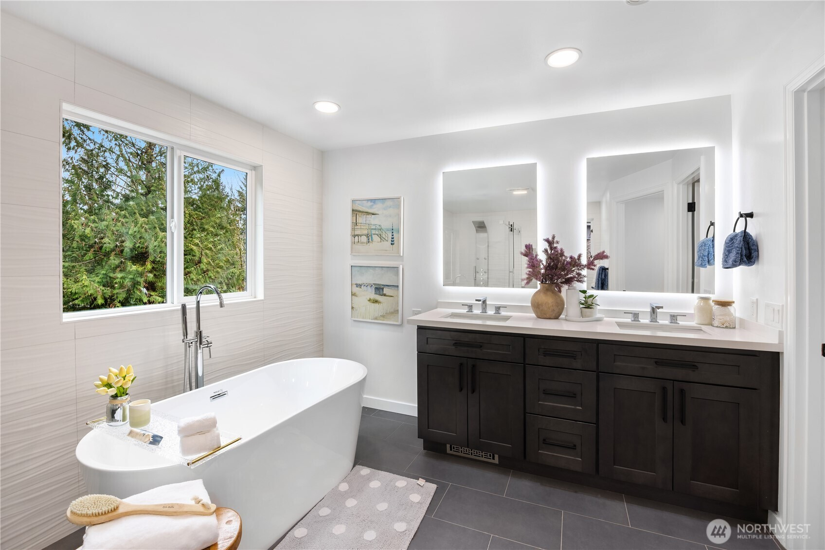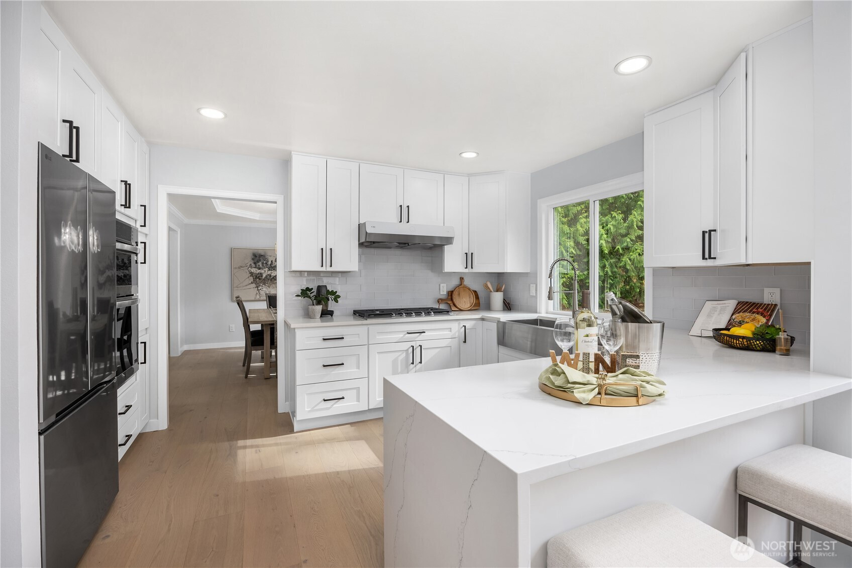 Welcome to this beautifully remodeled coveted Sheffield neighborhood of Redmond’s English Hill. Peacefully nestled on a rare south-facing, level shy-acre lot with lush, manicured grounds, this timeless Buchan-built residence blends classic elegance with over $300K in upgrades. Featuring 4 BED+BONUS+DEN, the home offers exceptional flexibility for modern living. Grand formal living and dining rooms create inviting gathering spaces, while the fully remodeled chef’s kitchen showcases waterfall quartz countertops, stainless steel appliances, and seamless flow into the spacious family room. Outdoor living shines with an oversized designer Belgard-paved patio and newly installed weather-resistant aluminum gazebo, creating a sophisticated covered space for year-round entertaining, surrounded by a large private yard with brand-new fencing for ultimate seclusion. Dual staircases lead to four generous bedrooms plus a bonus room ideal as a 5TH BED, office, or recreation space. The luxurious primary suite features a spa-inspired bath and walk-in closet. Extensive upgrades include energy-efficient new windows, remodeled kitchen and baths, new engineered flooring, new carpet, fresh interior paint, and updated fixtures throughout. Additional highlights include heat pump with A/C, 50-year roof, and three-car garage wired for generator. Walk to top-rated Sunrise Elementary and minutes to athlete court, parks, trails, Woodinville Wine Country, downtown Redmond, and tech corridor
