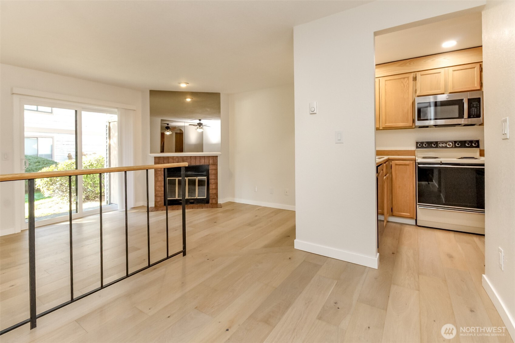 Welcome home to this inviting, move in ready ground-level Cascade Park condominium, where comfort and convenience come together. This charming 1-bedroom, 1-bath unit features new flooring, new windows, updated appliances, and an updated bathroom with contemporary fixtures. The spacious bedroom includes a full-length closet. Enjoy everyday ease with an in-unit washer and dryer. The kitchen with breakfast bar opens to a warm living space centered around a cozy wood burning fireplace. Step outside through the sliding glass door to a private patio with storage and garden space perfect for quiet mornings or relaxing evenings. Assigned covered parking plus guest parking. Convenient access to Hwy 167, I-405, and I-5. Pet friendly community (40 lbs. max per pet) don't miss this opportunity to live in this great community.