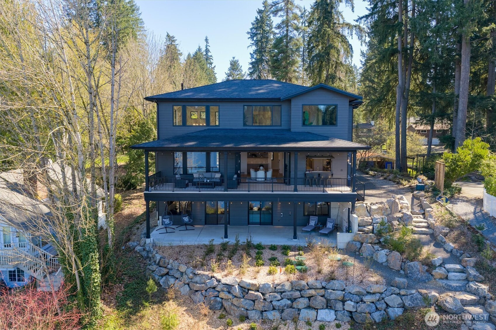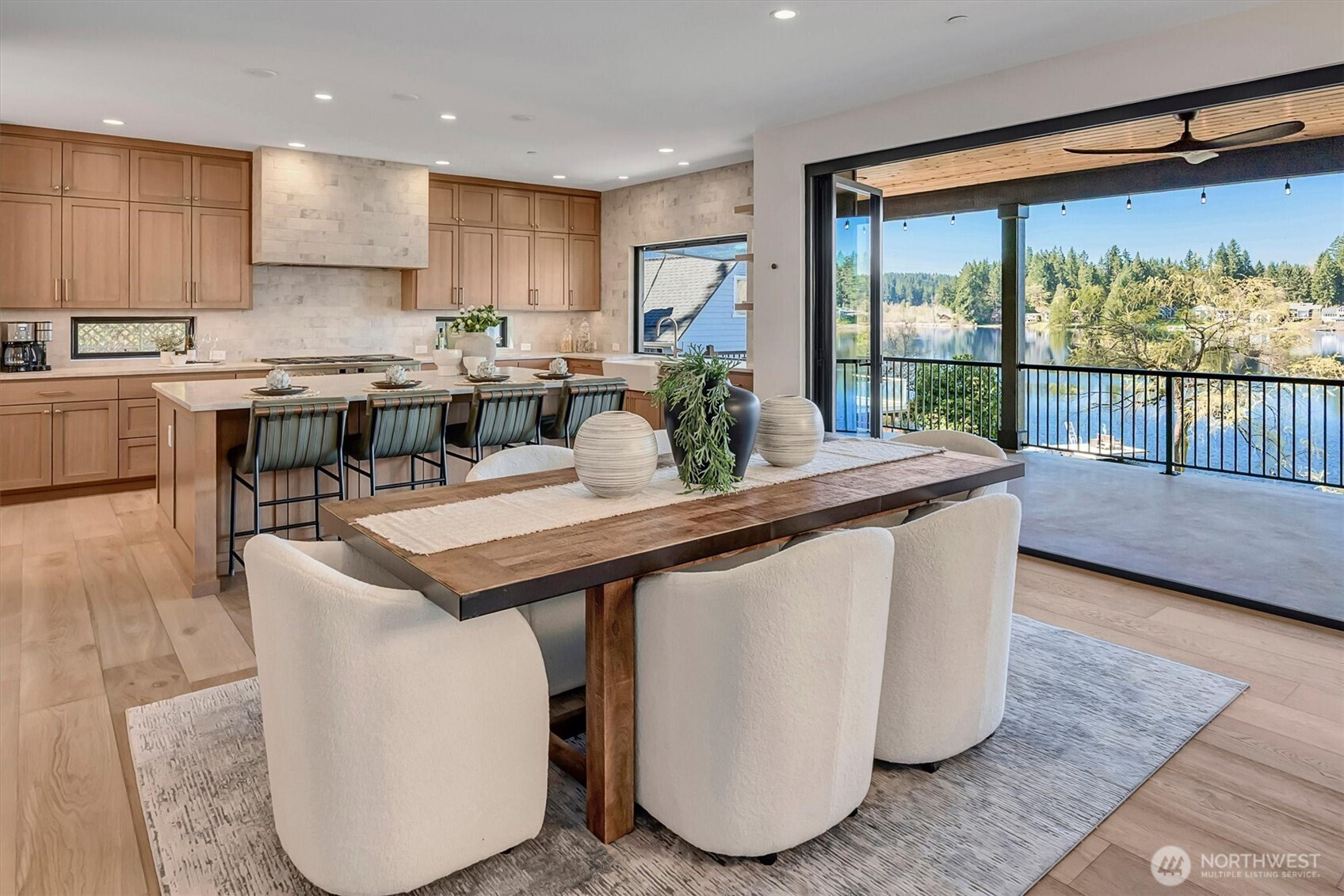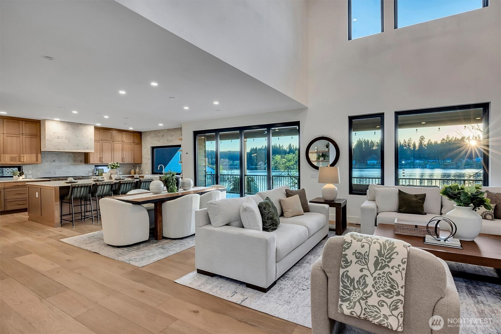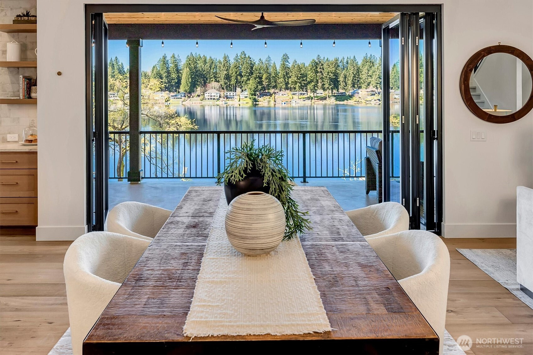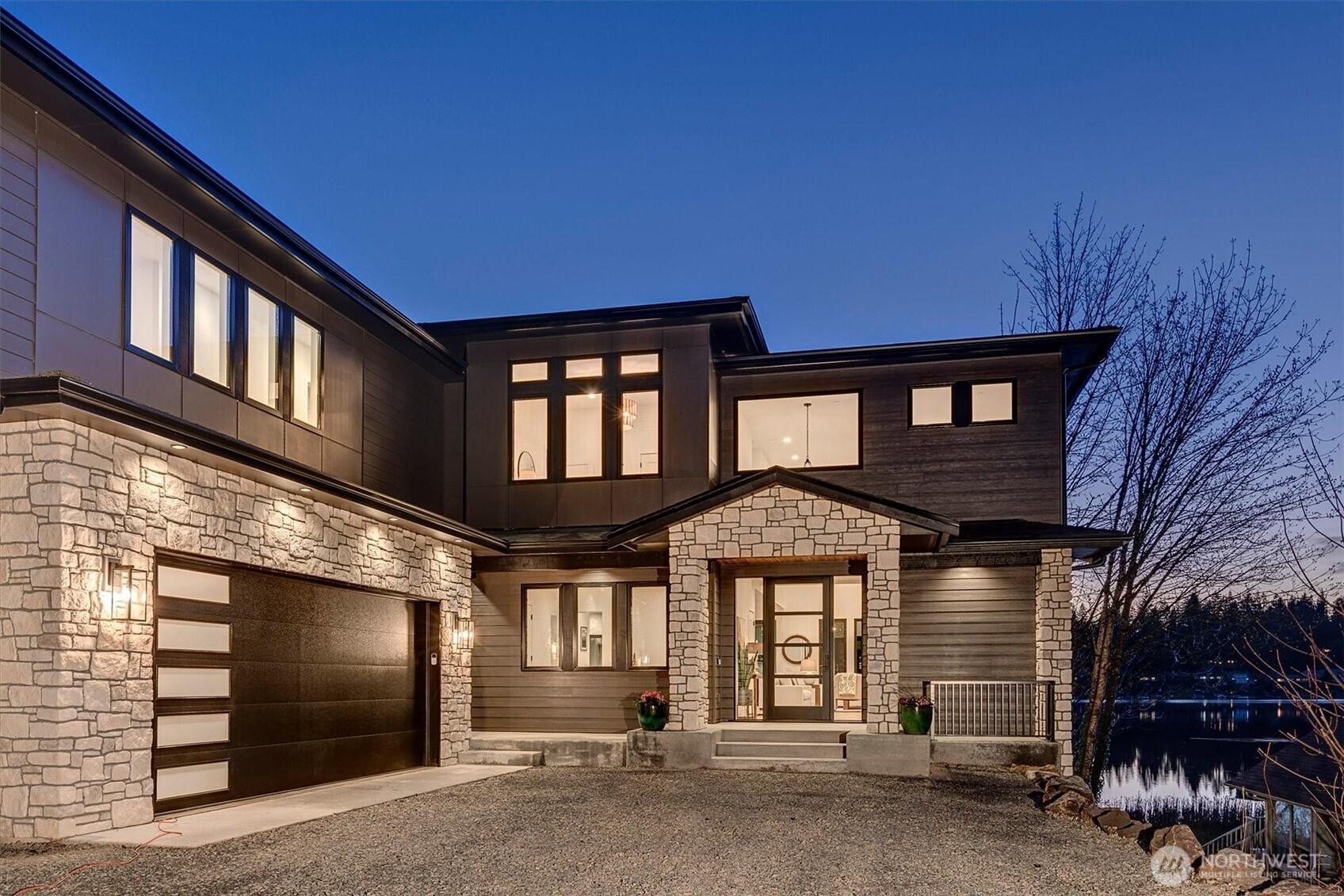 Step into a luxurious residence artfully crafted by acclaimed builder, Devon Hughes, where nearly 5,000 sf of modern elegance, meets the tranquility of charming Cottage Lake. Built in 2024, this home offers a rare blend of refined craftsmanship, premier finishes and a lifestyle immersed in nature, just minutes to top-rated schools, easy freeway access, and all that the vibrant Woodinville Wine Country has to offer. The 2/3 acre waterfront property has a private dock from which to paddleboard, swim or catch fish for your dinner. The evening sunsets are epic as the colors glisten on the water. Sip your morning coffee on the vast deck encompassing the entire rear of the home and ready for heat lamps. A built-in bar area makes for easy entertaining and the gas BBQ stays with the home. The open-concept living spaces flow seamlessly into the stunning kitchen with white oak cabinetry and Taj Mahal Quartzite counters. The spacious living room with two-story ceiling, opens through La Cantina accordion doors to the deck, inviting summer evenings in. The primary suite on the upper floor has glorious views of Cottage Lake and the stunning bath with heated tile floors, features a massive walk-in closet with charming window inviting natural light in. Two additional bedrooms, a bonus room and full bath complete the upper level. The lower level offers a massive rec room, den with double doors, huge storage and 3/4 bath. Welcome home to a beautiful lifestyle on Cottage Lake!