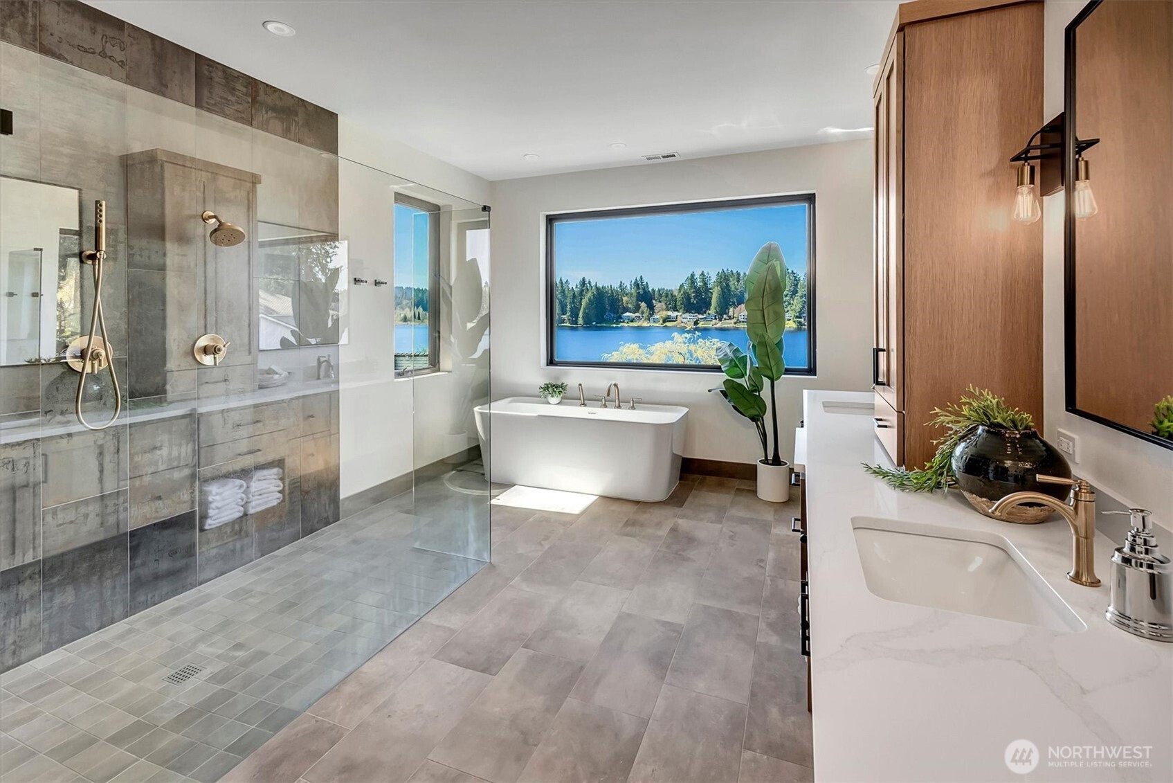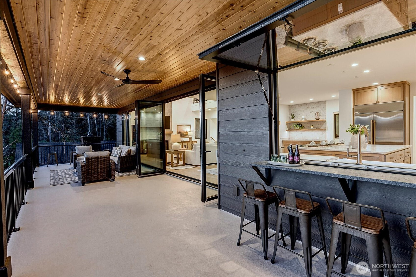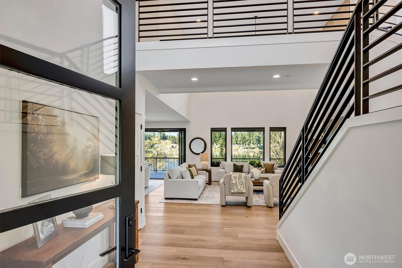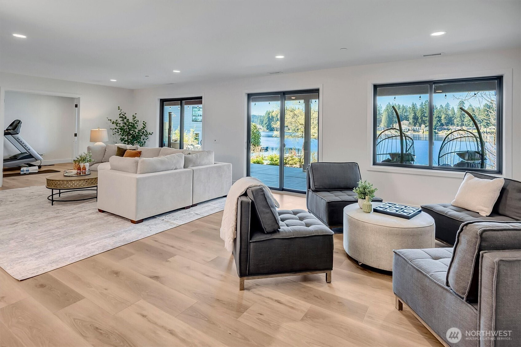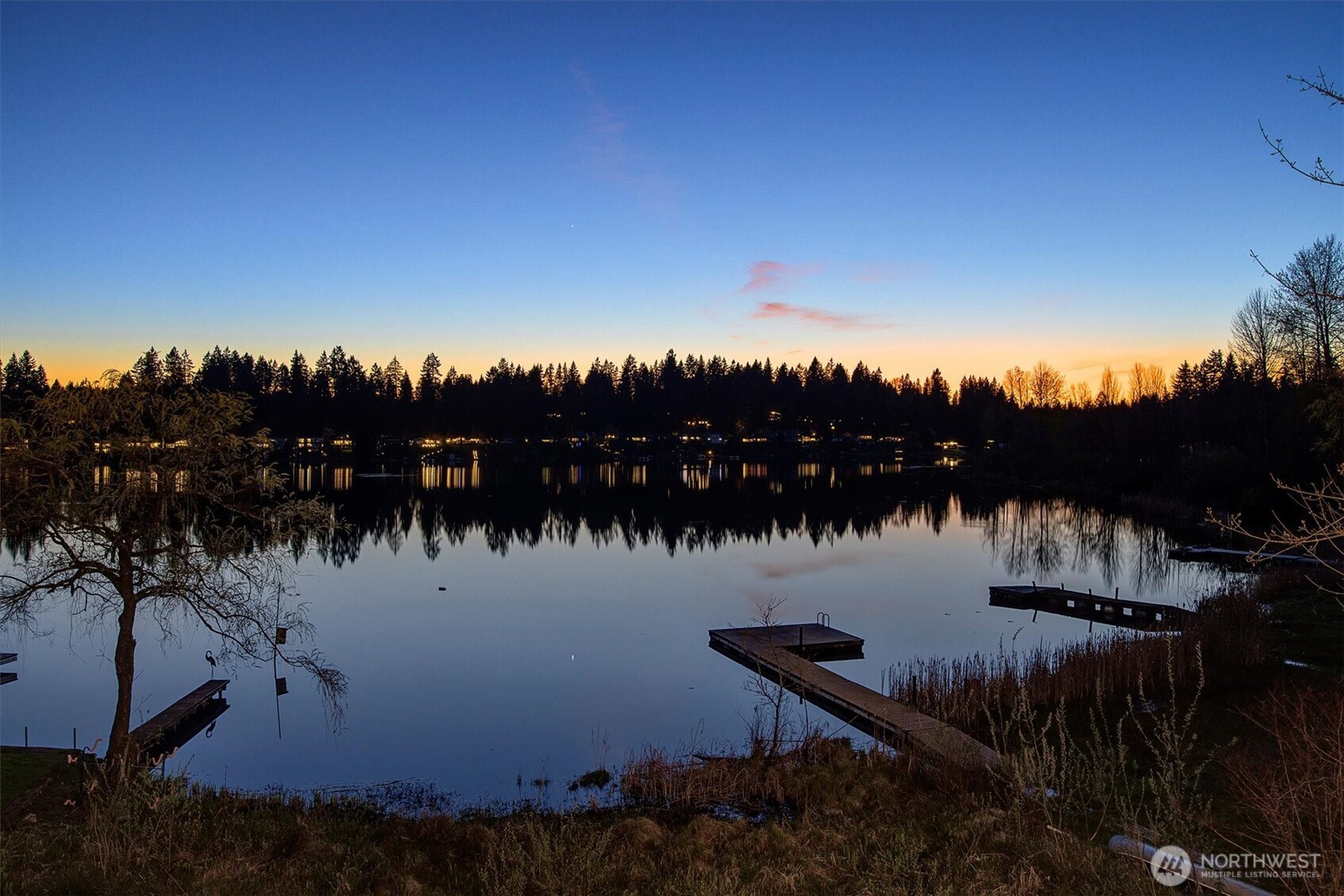 Step into a luxurious residence artfully crafted by acclaimed builder, Devon Hughes, where nearly 5,000 sf of modern elegance, meets the tranquility of charming Cottage Lake. Built in 2024, this home offers a rare blend of refined craftsmanship, premier finishes and a lifestyle immersed in nature, just minutes to top-rated schools, easy freeway access, and all that the vibrant Woodinville Wine Country has to offer. The 2/3 acre waterfront property has a private dock from which to paddleboard, swim or catch fish for your dinner. The evening sunsets are epic as the colors glisten on the water. Sip your morning coffee on the vast deck encompassing the entire rear of the home and ready for heat lamps. A built-in bar area makes for easy entertaining and the gas BBQ stays with the home. The open-concept living spaces flow seamlessly into the stunning kitchen with white oak cabinetry and Taj Mahal Quartzite counters. The spacious living room with two-story ceiling, opens through La Cantina accordion doors to the deck, inviting summer evenings in. The primary suite on the upper floor has glorious views of Cottage Lake and the stunning bath with heated tile floors, features a massive walk-in closet with charming window inviting natural light in. Two additional bedrooms, a bonus room and full bath complete the upper level. The lower level offers a massive rec room, den with double doors, huge storage and 3/4 bath. Welcome home to a beautiful lifestyle on Cottage Lake!