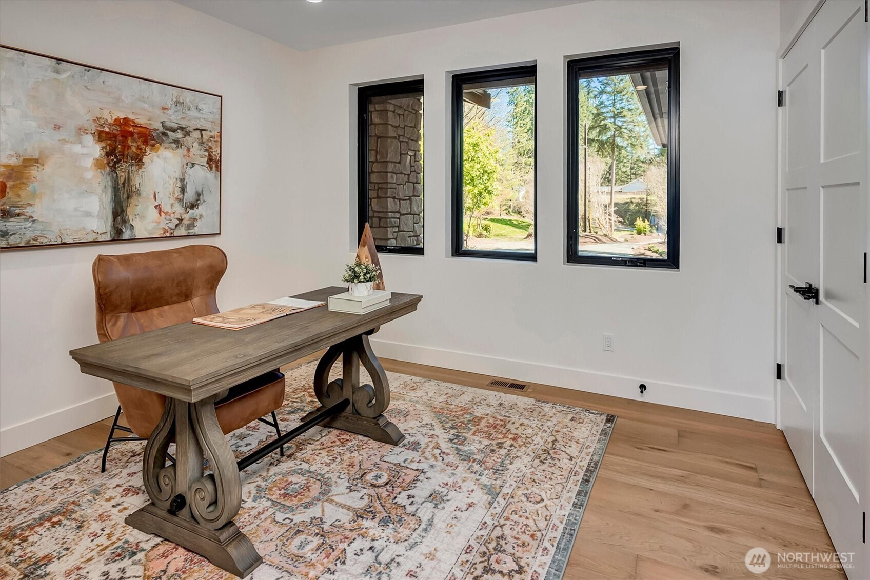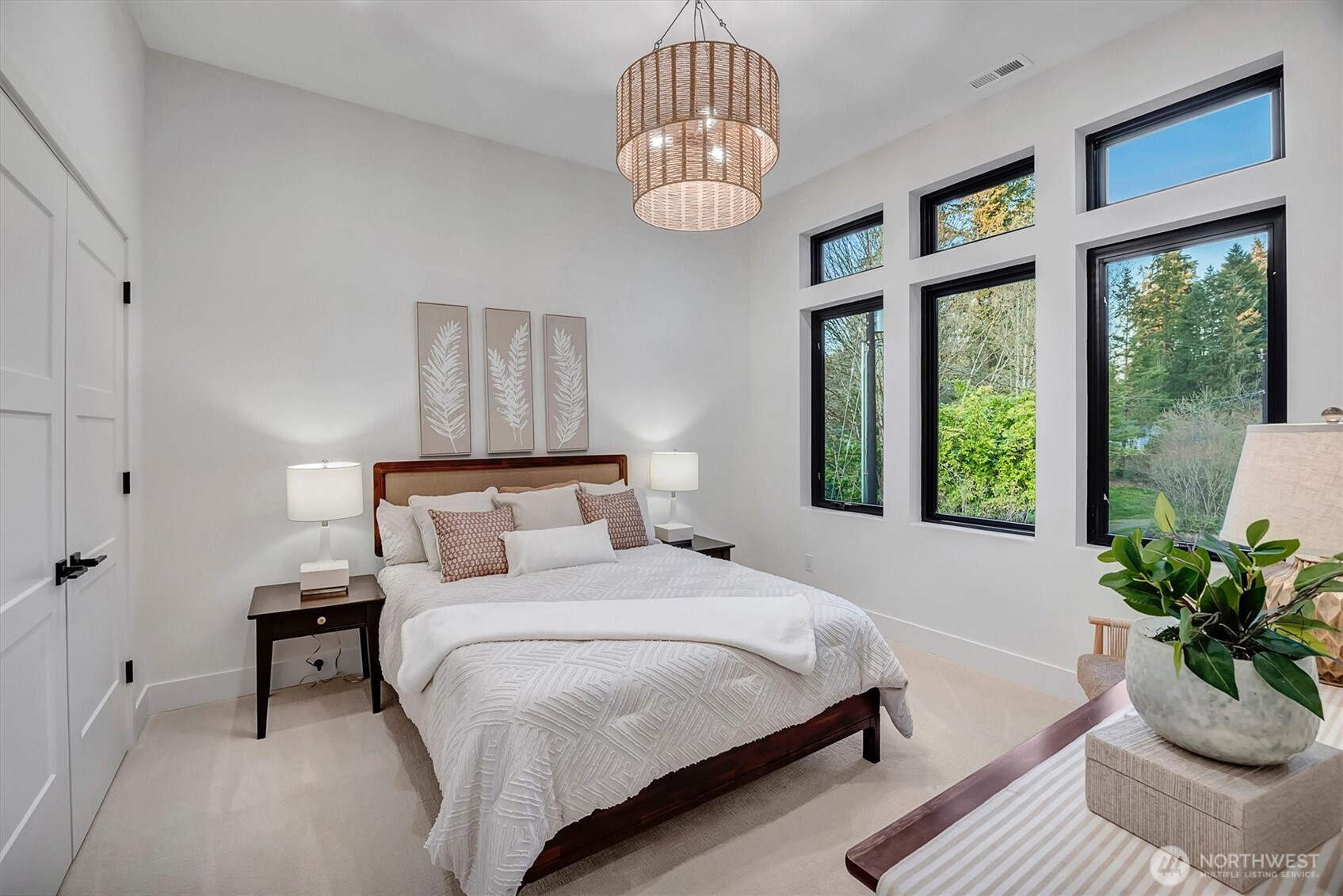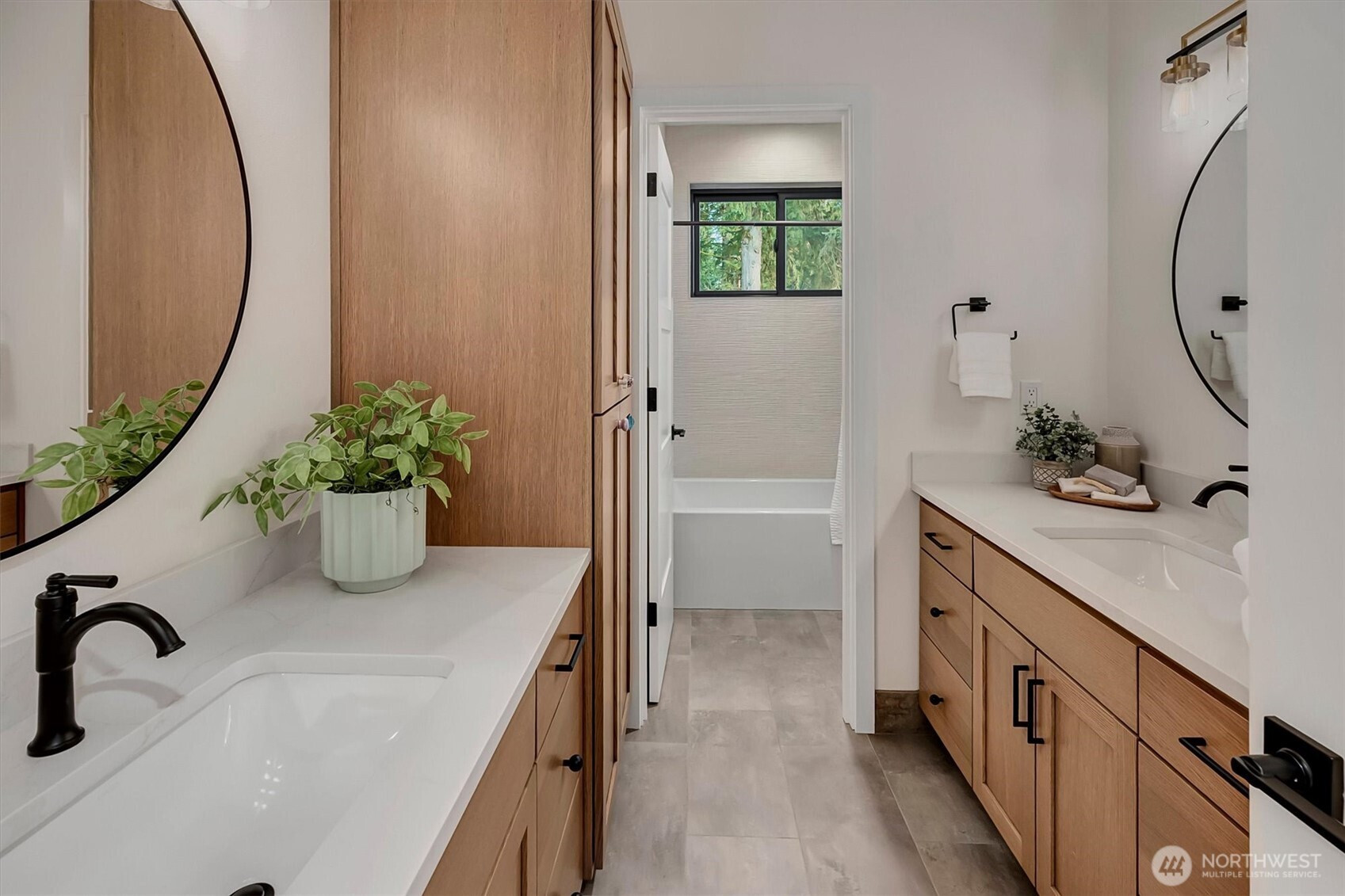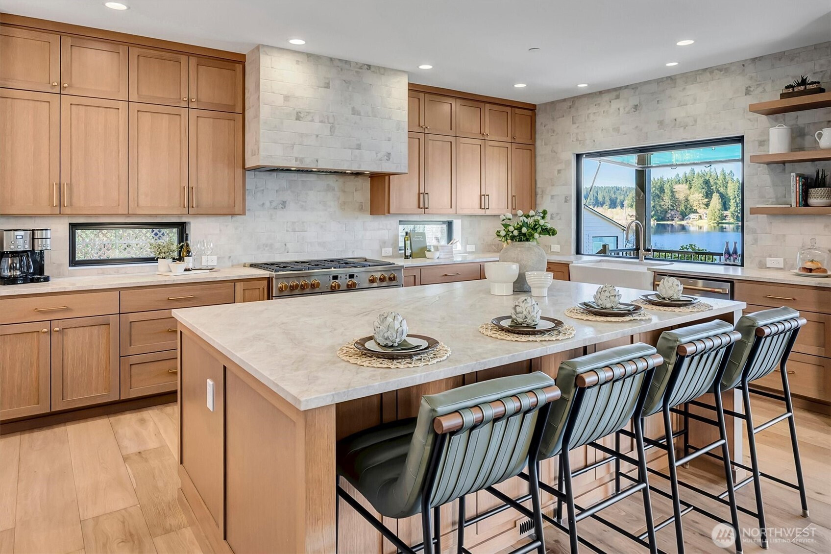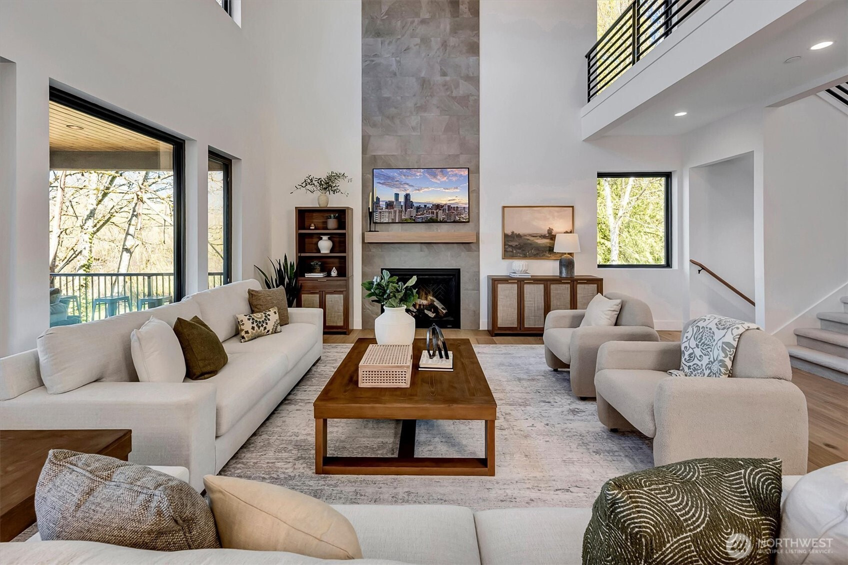 Step into a luxurious residence artfully crafted by acclaimed builder, Devon Hughes, where nearly 5,000 sf of modern elegance, meets the tranquility of charming Cottage Lake. Built in 2024, this home offers a rare blend of refined craftsmanship, premier finishes and a lifestyle immersed in nature, just minutes to top-rated schools, easy freeway access, and all that the vibrant Woodinville Wine Country has to offer. The 2/3 acre waterfront property has a private dock from which to paddleboard, swim or catch fish for your dinner. The evening sunsets are epic as the colors glisten on the water. Sip your morning coffee on the vast deck encompassing the entire rear of the home and ready for heat lamps. A built-in bar area makes for easy entertaining and the gas BBQ stays with the home. The open-concept living spaces flow seamlessly into the stunning kitchen with white oak cabinetry and Taj Mahal Quartzite counters. The spacious living room with two-story ceiling, opens through La Cantina accordion doors to the deck, inviting summer evenings in. The primary suite on the upper floor has glorious views of Cottage Lake and the stunning bath with heated tile floors, features a massive walk-in closet with charming window inviting natural light in. Two additional bedrooms, a bonus room and full bath complete the upper level. The lower level offers a massive rec room, den with double doors, huge storage and 3/4 bath. Welcome home to a beautiful lifestyle on Cottage Lake!