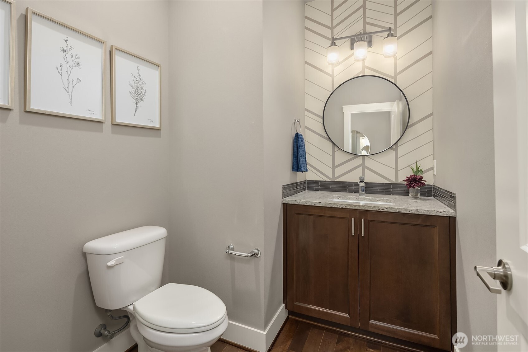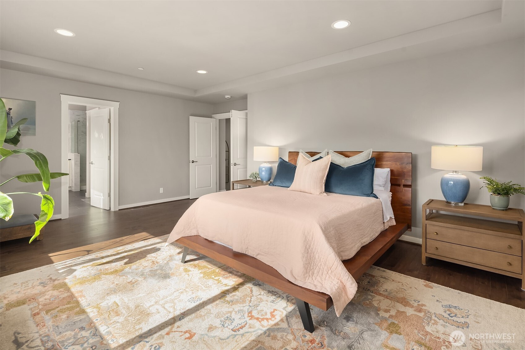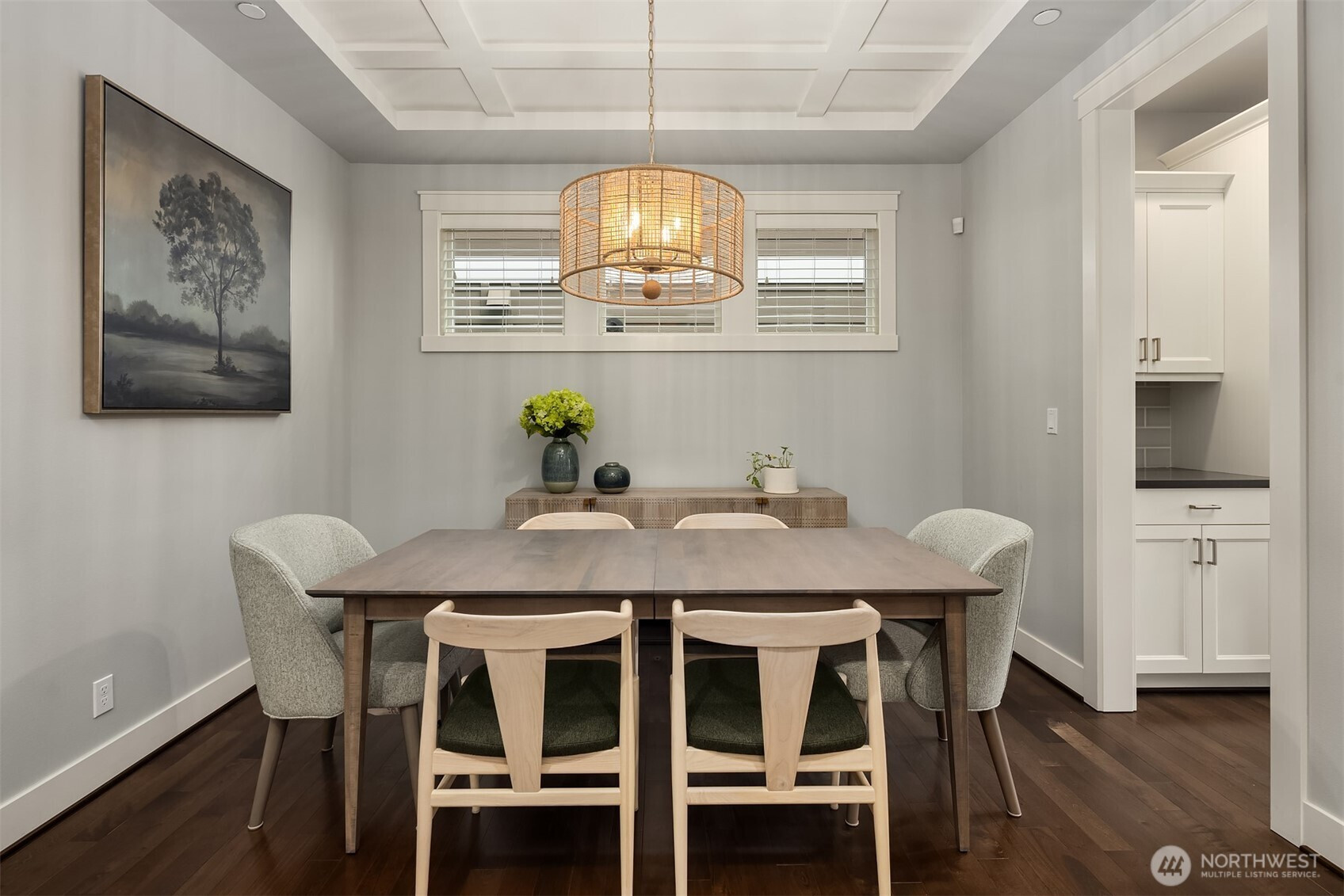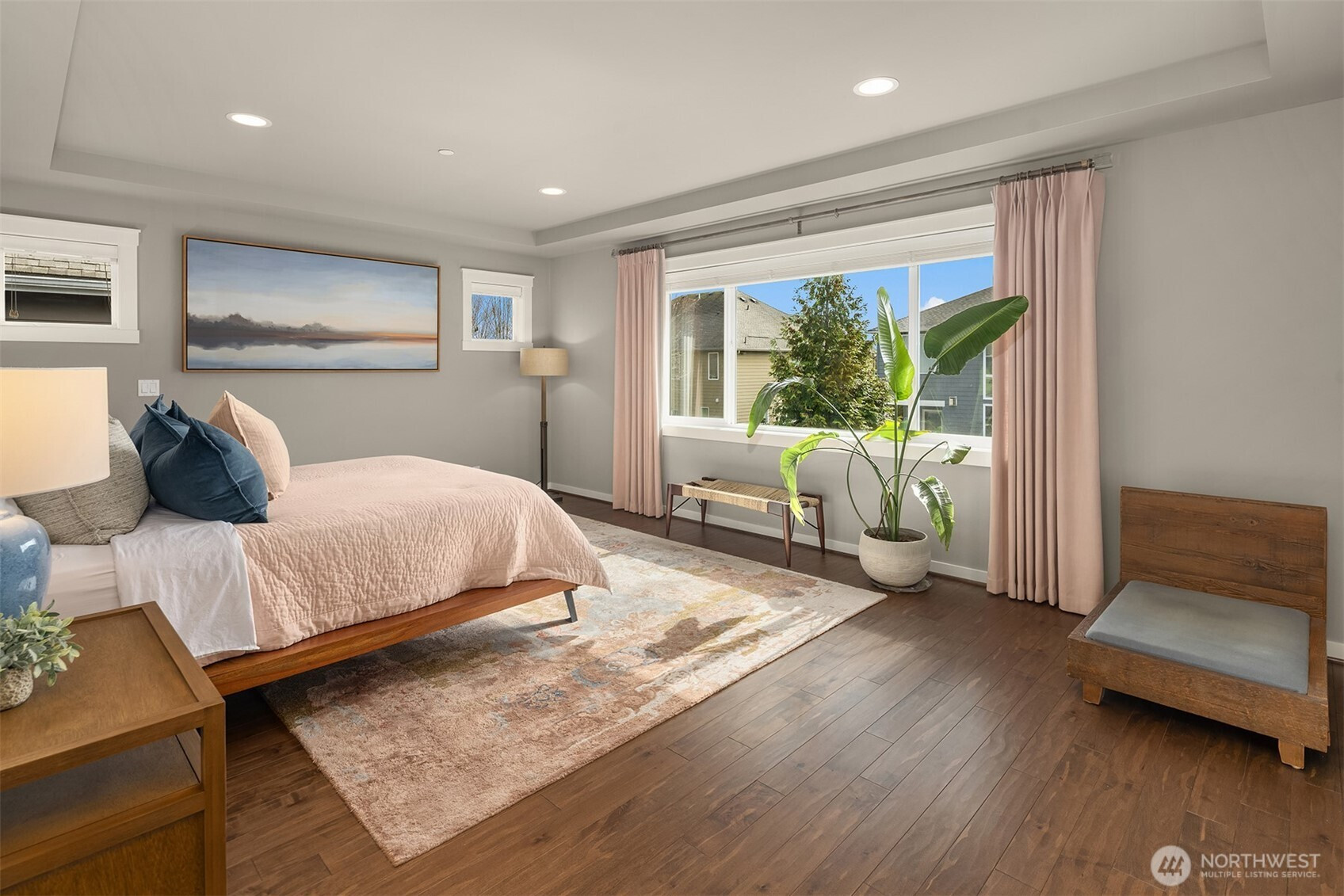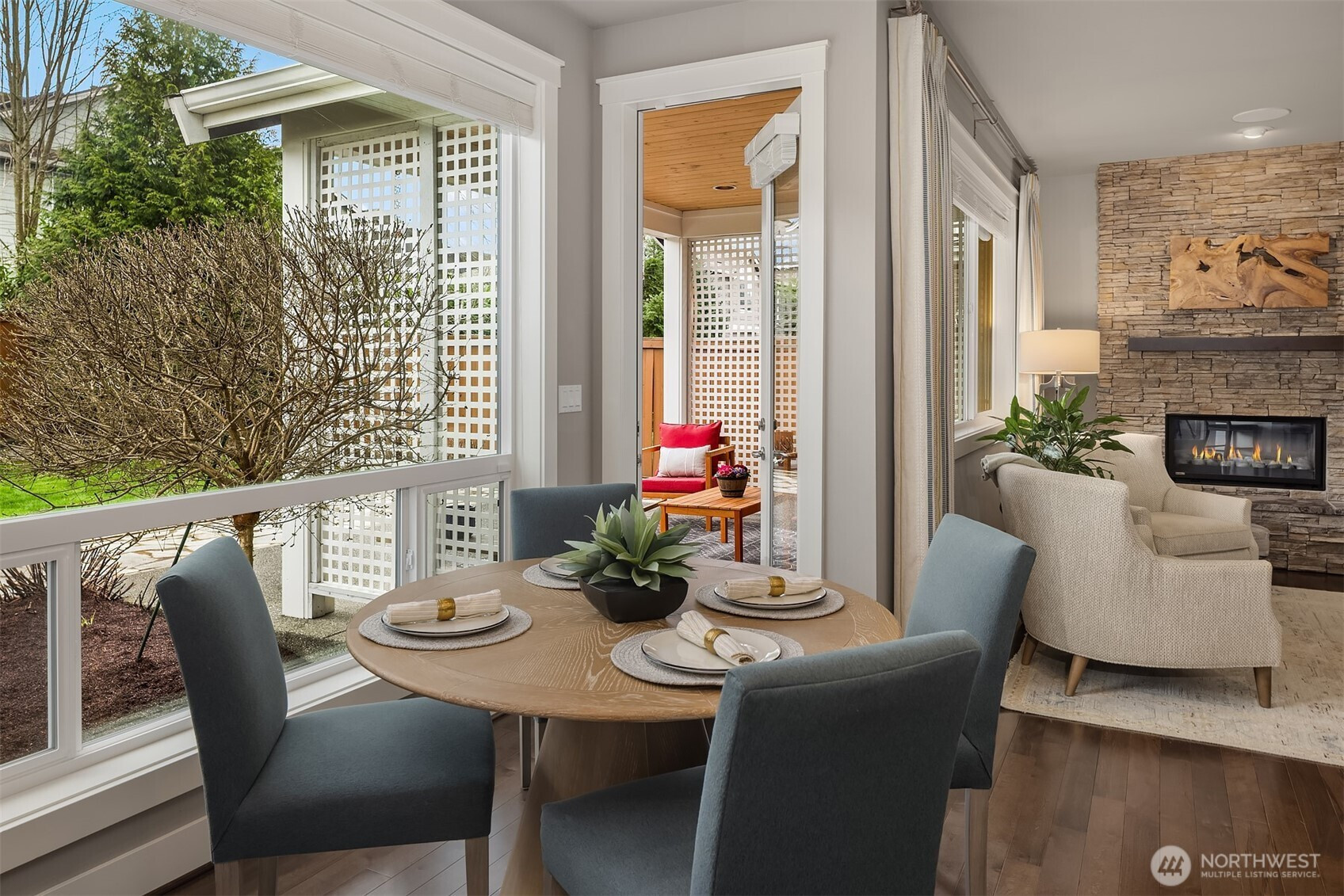 Welcome home to this impeccable Rick Burnstead residence, filled with natural light throughout and equipped with central air conditioning for year round comfort. The large south-facing backyard is beautifully landscaped and features a covered patio and elegant stone pathway—perfect for relaxing, entertaining, or play. The warm and inviting great room flows seamlessly into the kitchen, showcasing a large center island, white cabinetry, quartz countertops, and stainless-steel appliances. A main-floor den/office with a closet offers an ideal work-from-home space or potential fifth bedroom. Beautiful hardwood flooring runs throughout the home, including solid maple floors on the upper level that were added just a few years ago. The spacious primary suite features a spa-like ensuite and a generous walk-in closet with custom California Closets built-ins. A large bonus room is ready for movie nights or game days, while three additional bedrooms provide ample closet space. The garage includes durable epoxy flooring and large, sturdy storage racks. The community offers a neighborhood play park and scenic trails, all conveniently located just minutes from Clara Barton Elementary School and major Eastside employers.