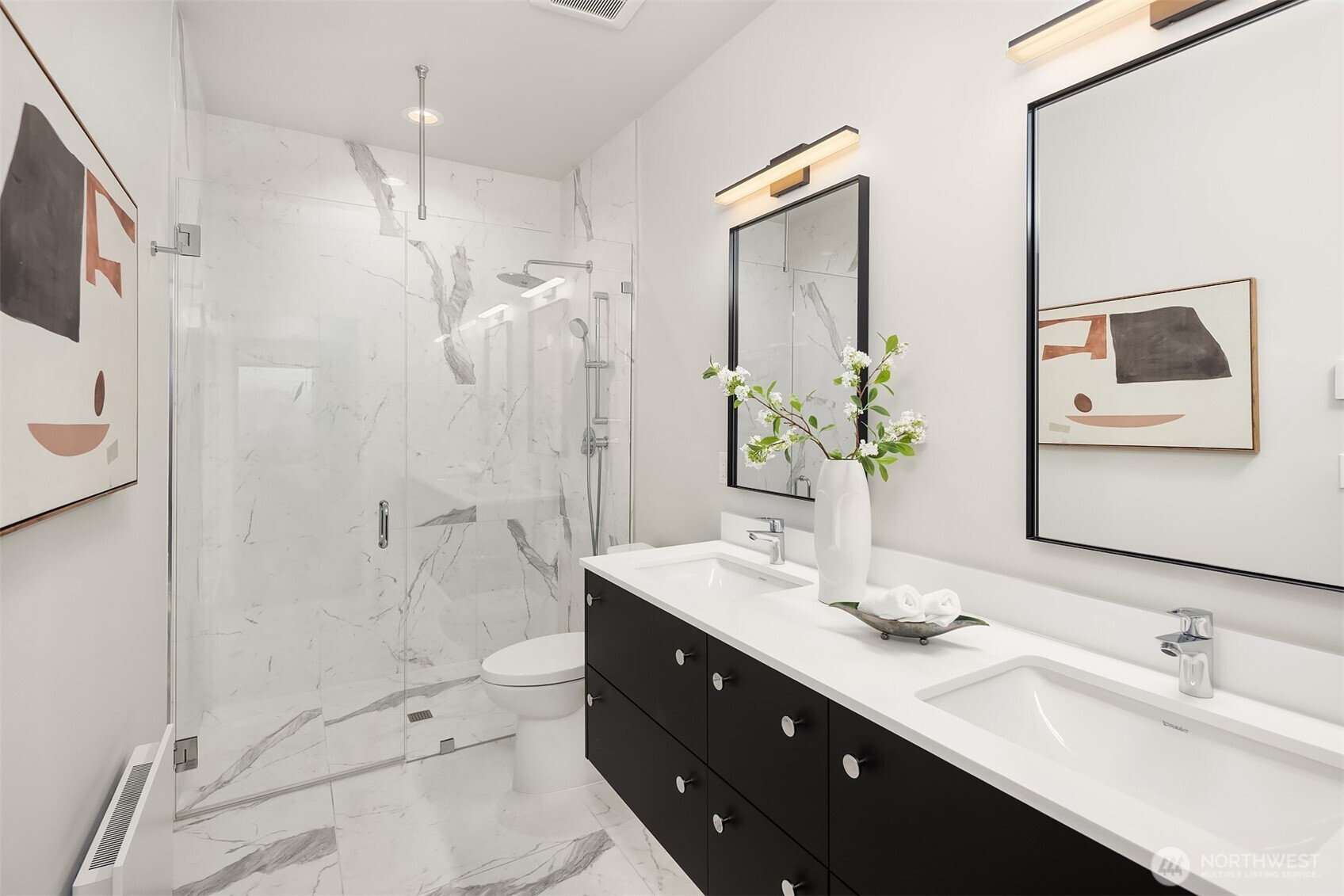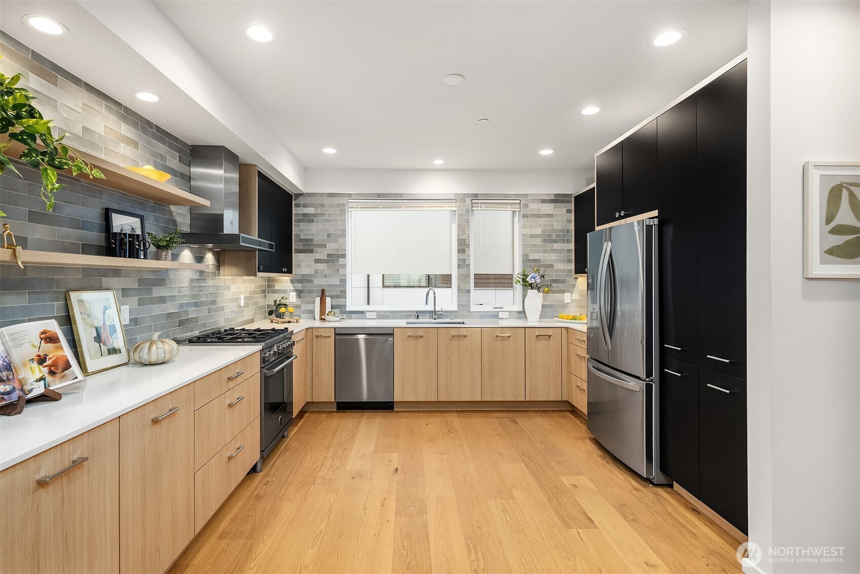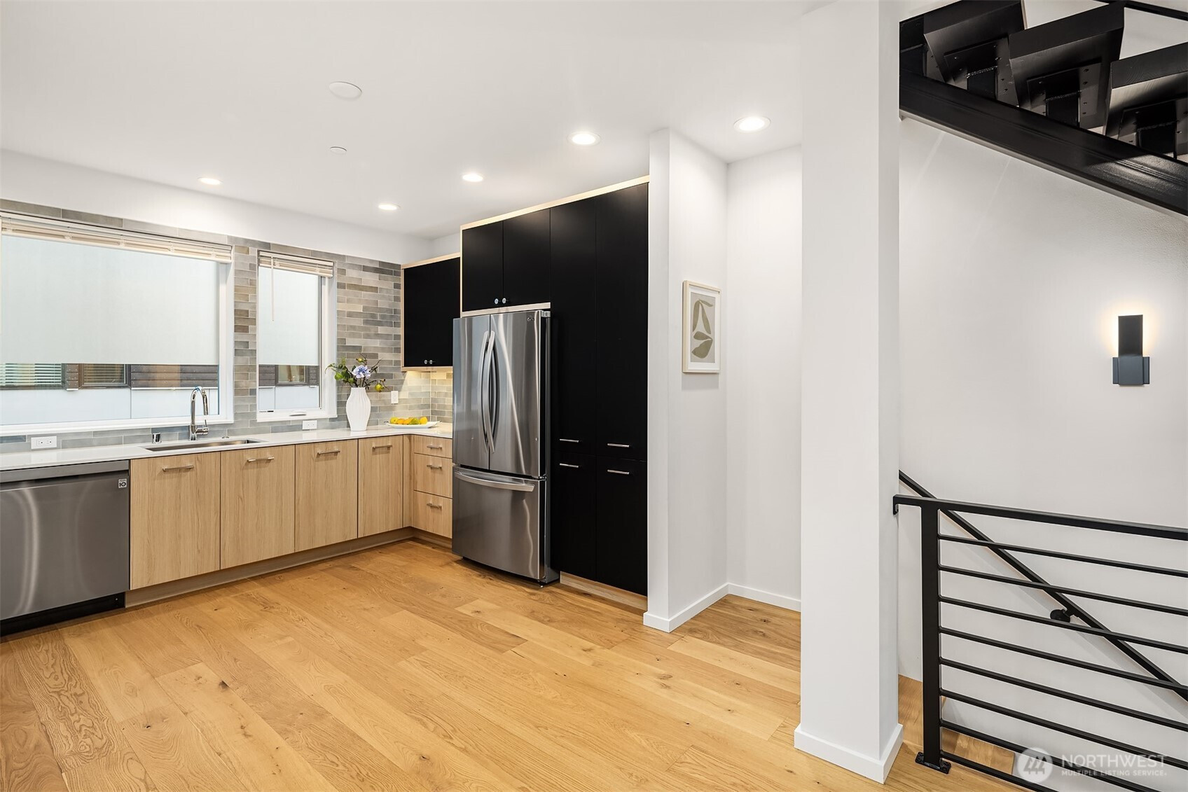 Better-than-new 4 bed, 2.5 bath townhome in the heart of Bothell! Ideally located just minutes from vibrant downtown Bothell, scenic trails, and beautiful parks. This modern, sleek home features a bright, open-concept main living area filled with natural light. The gourmet kitchen shines with stainless steel appliances, quartz countertops, and stylish finishes—perfect for entertaining. Upstairs, generously sized bedrooms offer excellent ceiling height and abundant light, while the spacious primary suite boasts a walk-in closet and a luxurious ensuite bath. Enjoy outdoor living on your private rooftop deck. Complete with a two-car garage, low HOA dues, and low-maintenance living. No rental restrictions make this an excellent opportunity for both homeowners and investors. Located in the highly sought-after Northshore School District with easy access to Hwy 522 and I-405 for a quick commute to Bellevue and Seattle. Close to shopping, dining, and more—this move-in ready home has it all!
