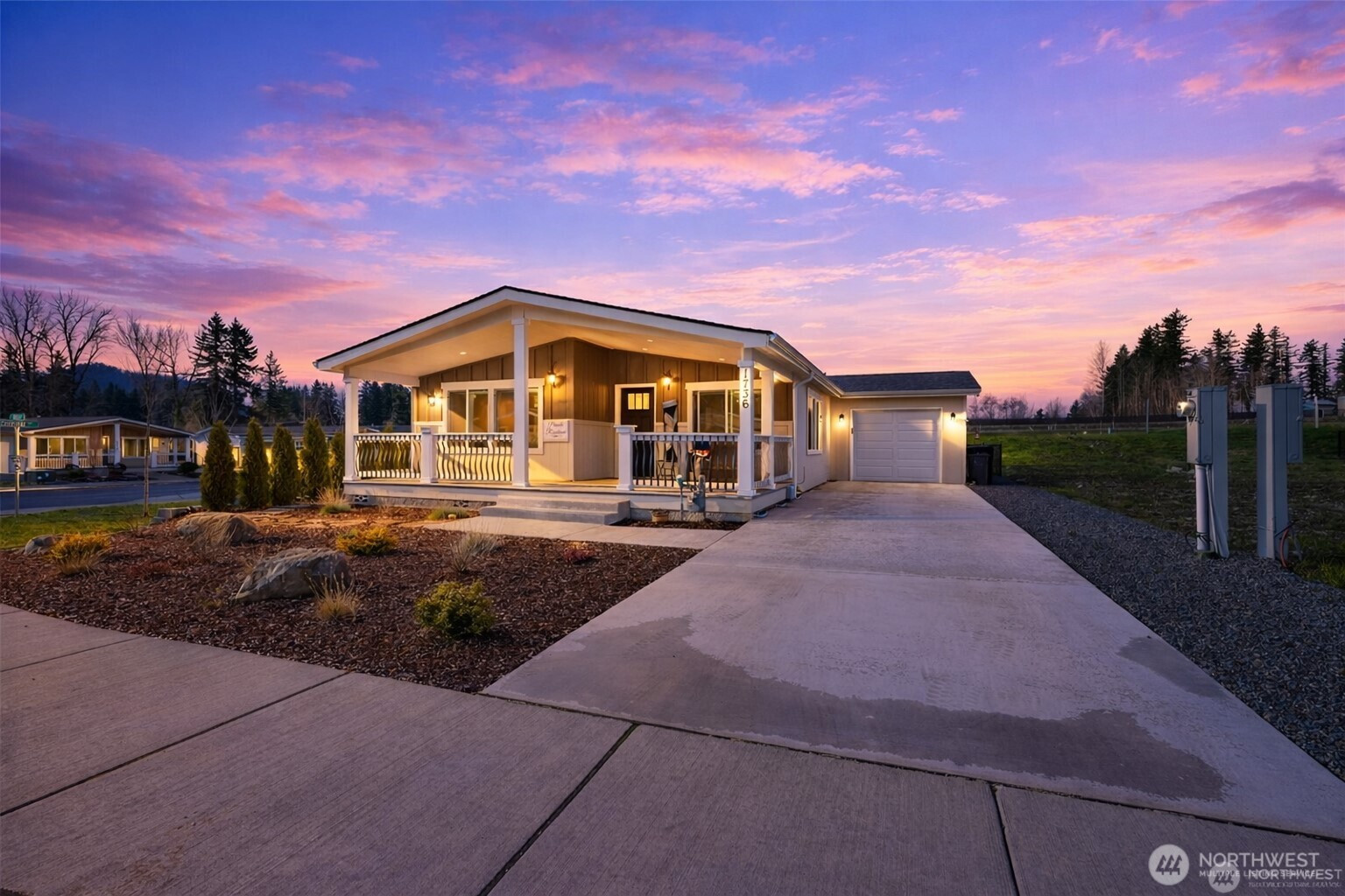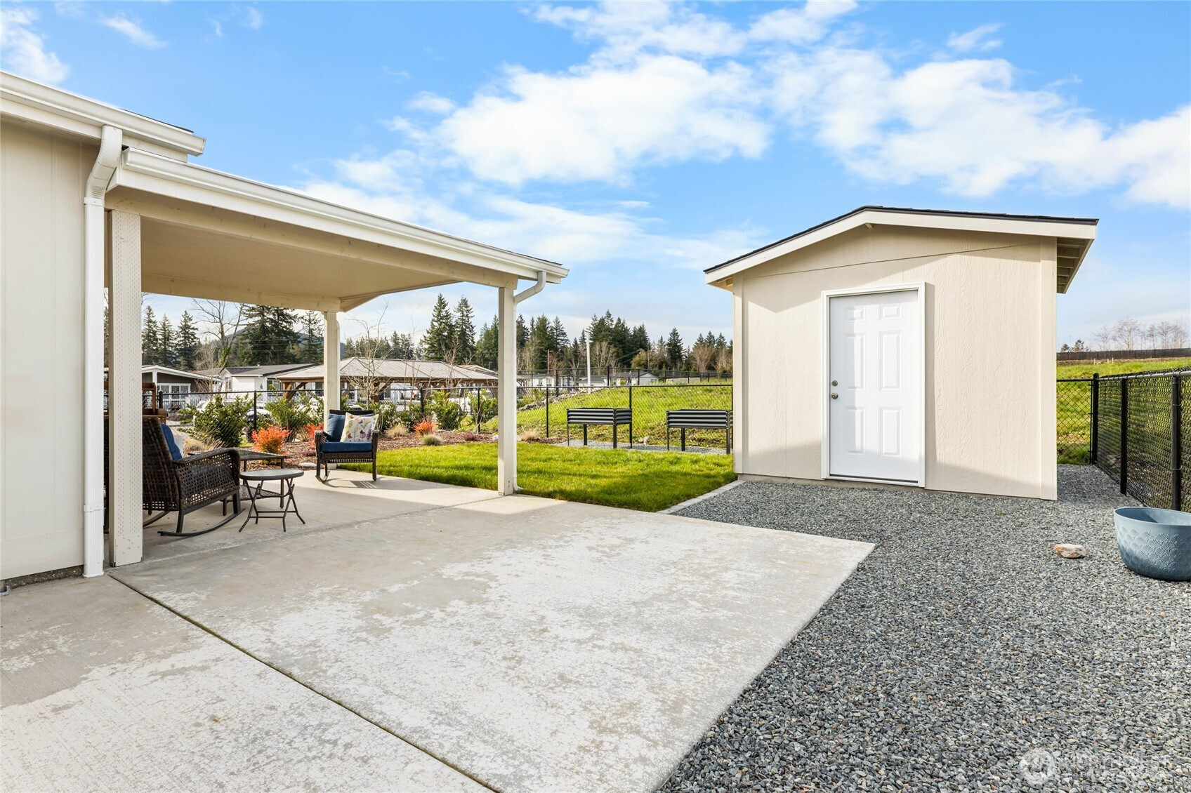 Crystal Mountain MHC — a new highly anticipated 55+ land lease community! Pass through the prestigious gated entry and discover this Eagle resale with a spacious, functional layout that is no longer available in the community. This sought-after floor plan features an office with French doors and bookshelves, dining space, and attached garage. Relax on the large covered front porch and enjoy LVP flooring throughout the main living areas. Stay comfortable year-round with a new electric furnace and heat pump with A/C. Washer and dryer included. The kitchen features a quartz island, stainless steel appliances, a gas range, walk-in corner pantry, white cabinetry, and striking tile backsplash. The impressive primary en-suite offers dual sinks, abundant storage, tile walk-in shower with dual shower heads, and walk-in closet. Exceptional corner lot next to pickleball courts. Fully fenced, landscaped yard with a 13x13 covered patio, 10x10 shed, and raised garden beds. Enjoy community amenities including bocce ball, gardens, a dog park & more. Conveniently located next to the golf course & a short distance to downtown.