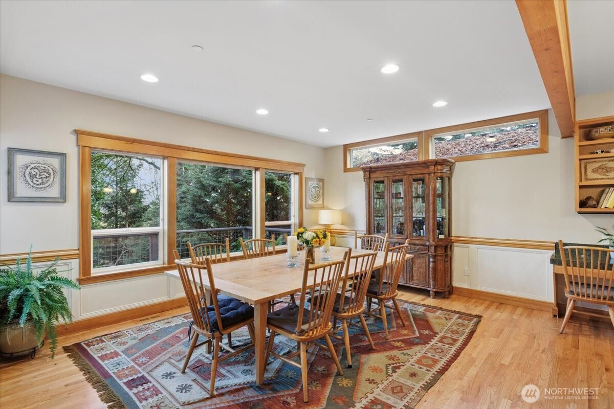 Step inside this extraordinary home where treehouse charm meets lodge-like warmth & rare privacy. Quietly tucked off the street on a large street-to-street lot, it offers a wooded nature path, an expansive private deck & patio, newer windows, a new Carrier furnace, & recently added central AC. The main floor features a great-room layout with large view windows & fresh paint. A lower level 6th bedroom functions beautifully as an office with built-ins and a Murphy bed. The lower level includes a gas fireplace & walk-out patio, plus abundant storage. Enjoy deeded access to the Lake Forest Park Civic Club (https://www.lfpcc.org/), top-rated Shoreline schools, and a short walk to Town Center shops & dining. Welcome home to the Park!