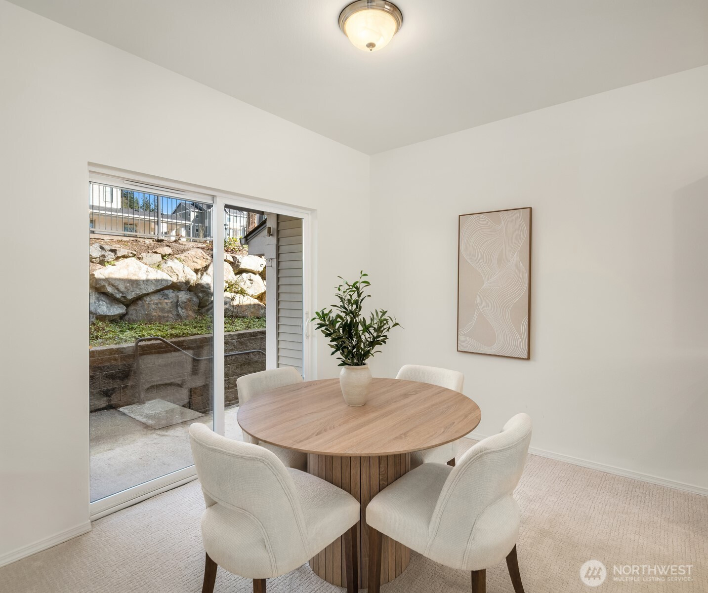 [REFINED LIVING IN THE HEART OF DUVALL] Thoughtfully designed & ideally located in the heart of Duvall, this inviting 2 bedroom condo offers a blend of comfort & connection. The main level offers an easy flow between spaces, where the kitchen opens to the dining area & living room, creating a natural layout whether you are hosting or enjoying a quiet night in. The kitchen is both functional & open, with ample counter space & clear sightlines that keep you engaged with the heart of the home. Just off the dining area, a covered outdoor space offers a private extension, ideal for morning coffee or winding down in the evening. Large windows fill the living room with natural light, while the gas fireplace anchors the space with warmth & ease. Upstairs, the primary suite feels calm & inviting enhanced with a peaceful backdrop of the Snoqualmie Valley to start & end your day. Enjoy a 2nd bedroom or office providing flexibility for guests, work from home or a creative space. Fresh interior paint & brand new carpet create a clean, move in ready feel throughout. The lower level offers additional storage & access to a private tandem two car garage, giving you the space you need without sacrificing simplicity. Set in a charming community just minutes from downtown Duvall, local shops, restaurants, parks, & scenic trails are all within easy reach. Well maintained HOA & no rental cap. [A LIFESTYLE THAT FEELS CONNECTED, REFINED, & EFFORTLESSLY LIVABLE.]