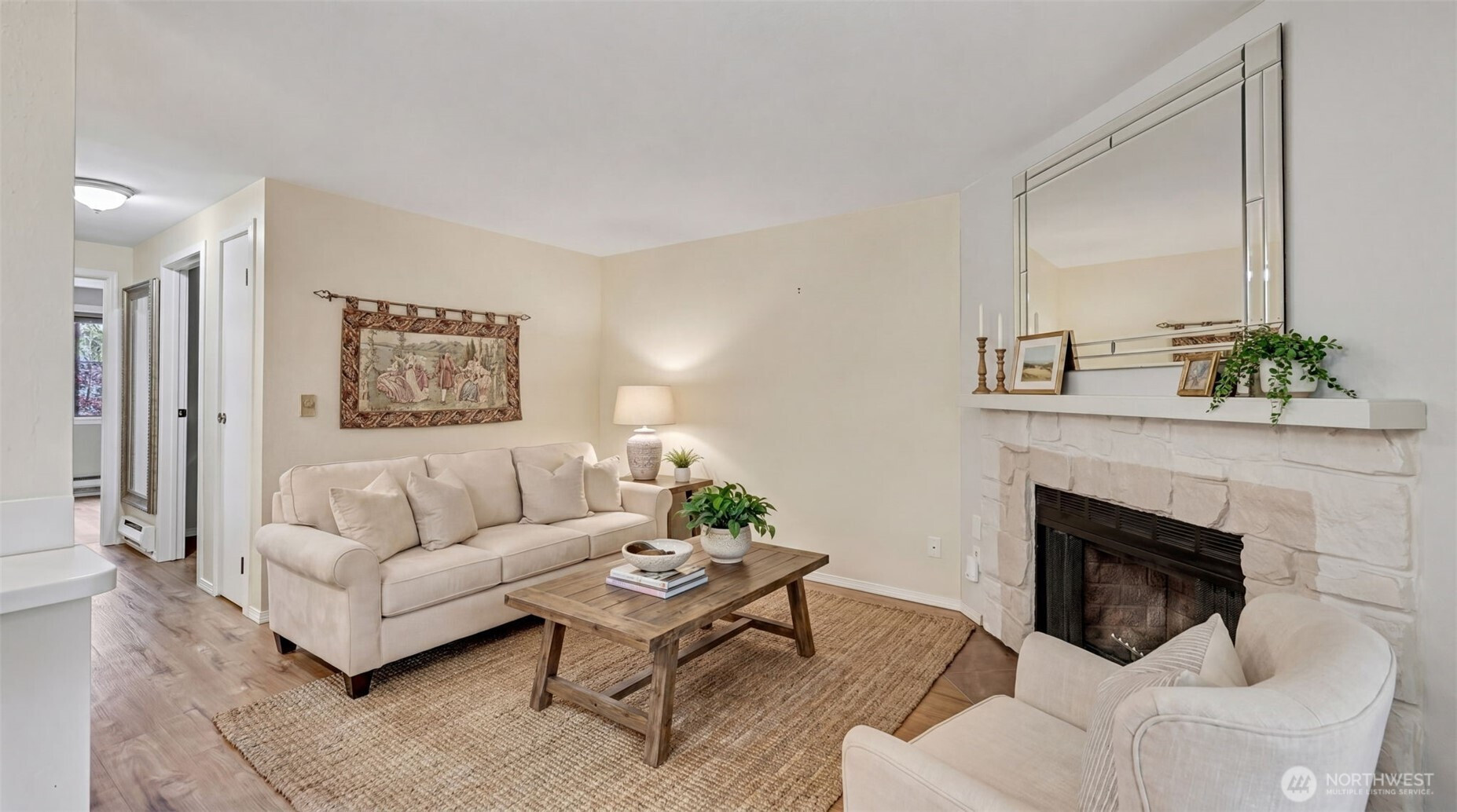 Welcome to Cascade Park Condos in Renton—an ideal opportunity for comfortable, low-maintenance living in a commuter-friendly location. This well-designed 1 bedroom, 1 bath home offers a functional layout that maximizes space and flow, making everyday living feel easy and efficient. The updated kitchen features quartz countertops, stainless steel appliances, and modern finishes that elevate the space while still feeling warm and inviting. The living area opens to a private balcony overlooking a peaceful greenspace, creating the perfect spot to relax or unwind. Enjoy the convenience of zero stair access, making entry simple and accessible, along with covered parking for added ease year-round. Located just minutes from major commuter routes including I-405 and Hwy 167, this home offers quick access to Bellevue, Seattle, and surrounding areas. Whether you’re a first-time buyer, downsizing, or looking for a smart investment, this condo checks the boxes with its thoughtful updates, great layout, and unbeatable location.