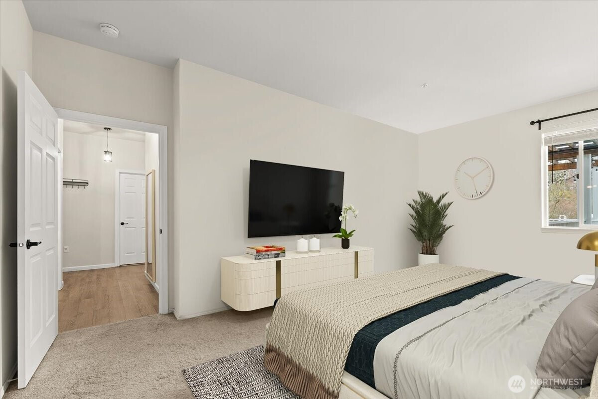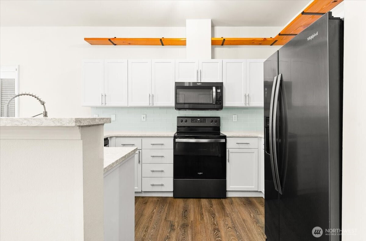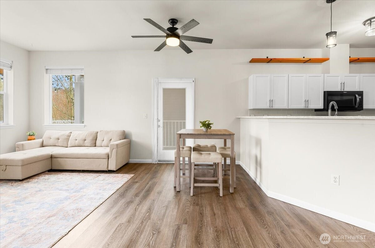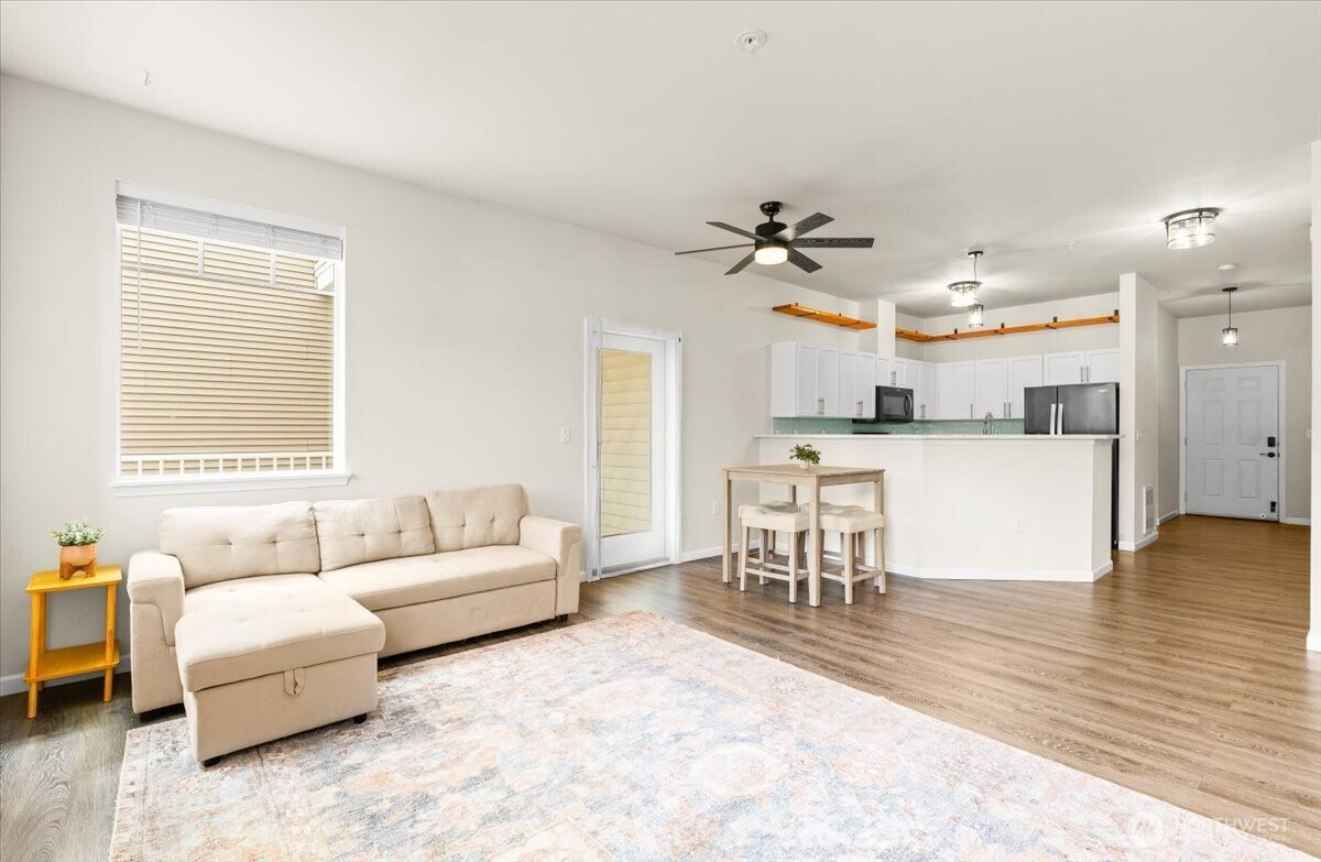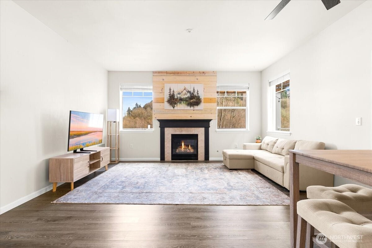 Prime location! Welcome to this beautifully updated condo in the desirable Riverfront Landing community. This light-filled home features 9-ft ceilings, an open floor plan, and a stunning remodeled kitchen with massive granite countertops, new cabinetry with soft-close drawers, stainless steel appliances, and abundant storage. The spacious living area offers a stylish accent wall and cozy gas fireplace, opening to an oversized wrap-around deck—perfect for morning coffee, relaxing evenings, or entertaining guests. The oversized primary suite provides plenty of space to relax or work from home, complete with a private bath featuring dual vanities and a generous walk-in closet. Enjoy an incredible outdoor lifestyle right outside your door. Located along the Sammamish River with direct access to the Burke-Gilman Trail, you can bike, walk, or explore miles of scenic trails. Stroll into downtown Bothell for coffee, dining, and local shops, or launch your kayak and paddle toward Woodinville’s wineries. Additional highlights include extra exterior storage, two designated covered parking spaces in a secure garage, kayak storage, guest parking, and convenient elevator access. Ideally located just minutes from major freeways, shopping, dining, recreation, and Lake Washington, this home offers the perfect balance of nature, convenience, and vibrant Eastside living. Experience the beauty of riverfront living—schedule your showing today.