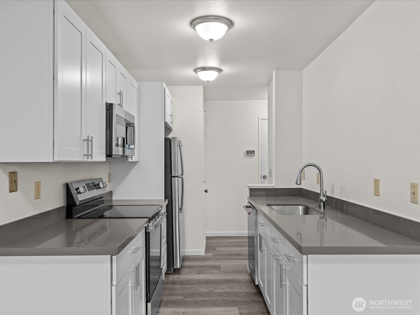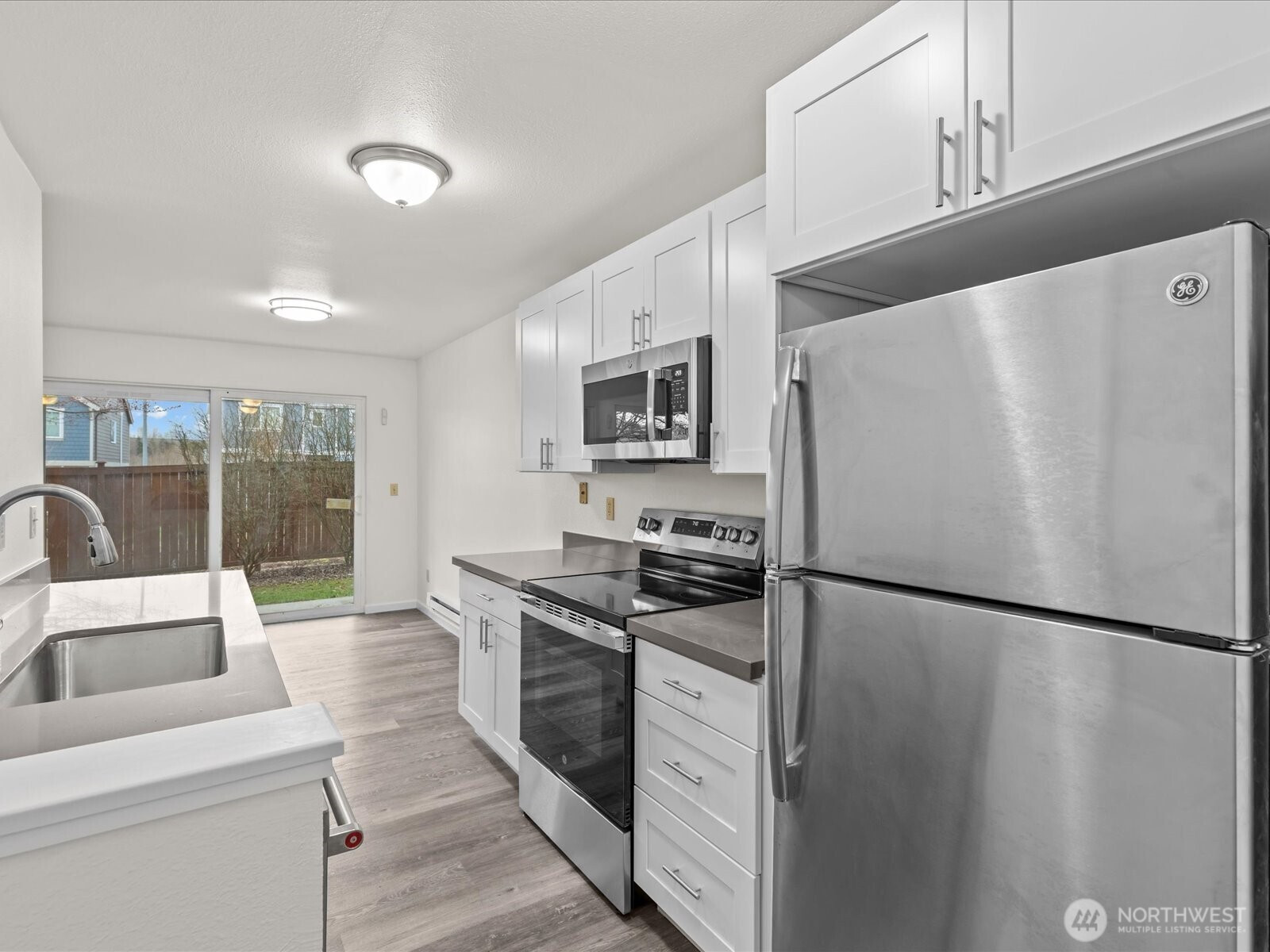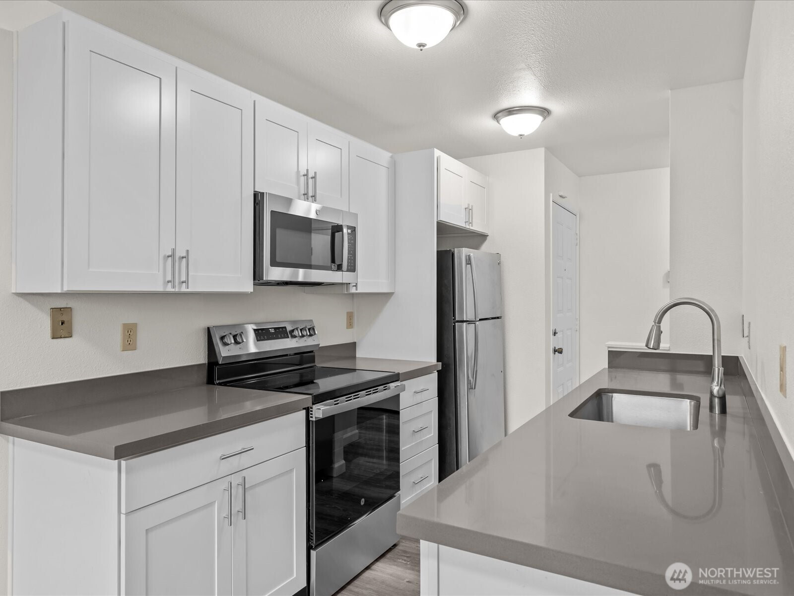 If you saw this condo before its glow up, be amazed at how it looks now! What a difference an updated look can make! New cabinets, countertops, flooring, and paint throughout! Come see for yourself! Excellent location, 5 Corners is nearby for groceries, dining, and getting a workout in. You are a stones throw from Seatac, and close enough to have a short drive to DT Seattle, or even Bellevue! This is a ground floor, corner unit, so no trudging up several flights of stairs to bring groceries in from your parking space right in front of the unit! Very private space on the back patio.