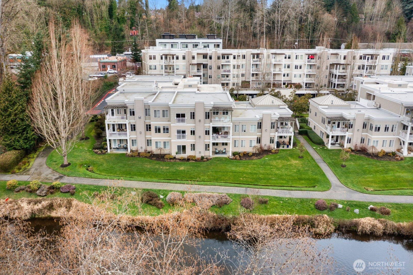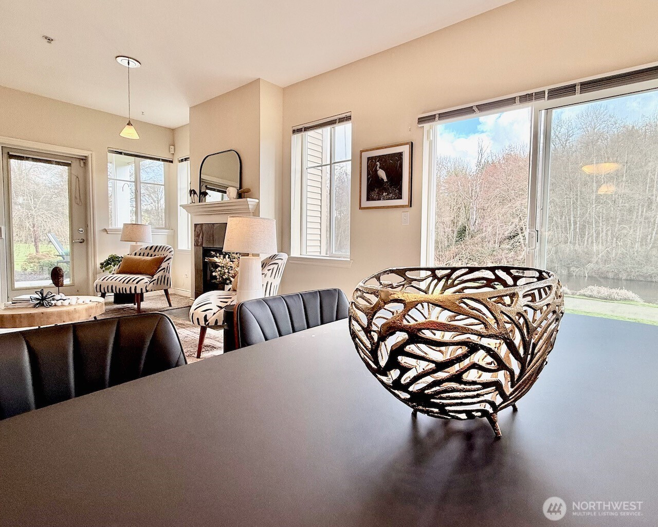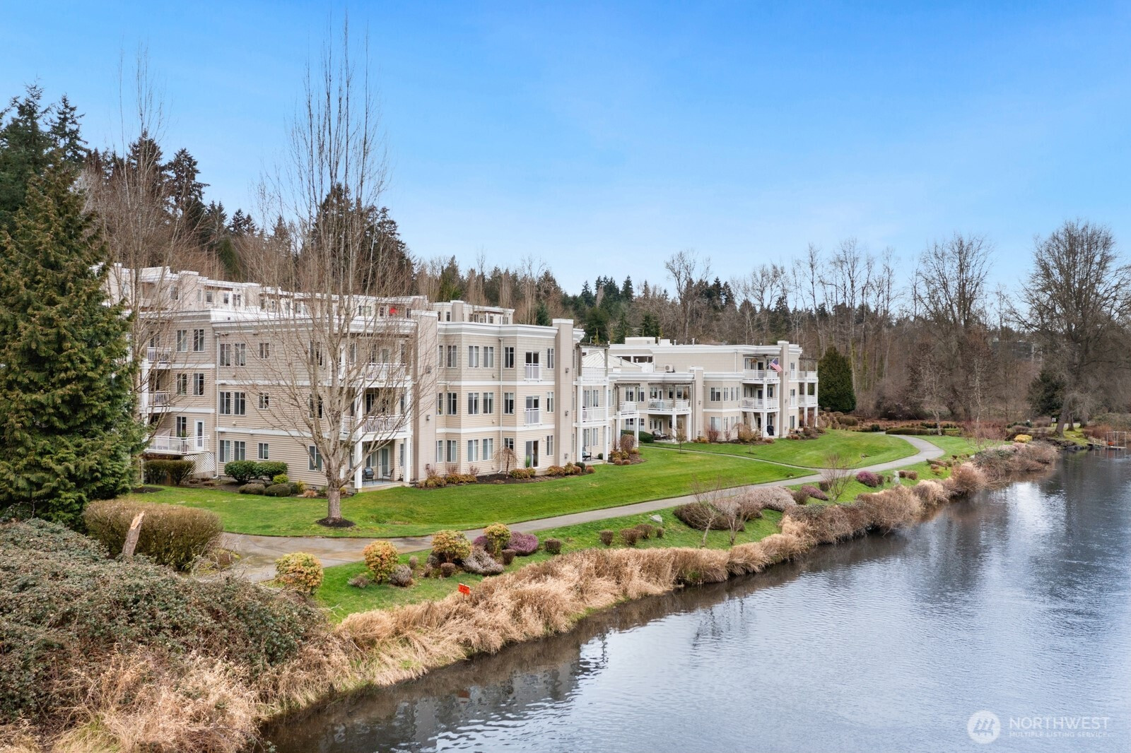 Experience incredible ground-level WATERFRONT living with tranquil VIEWS of the Sammamish River plus quick access to downtown Bothell, the Burke-Gilman Trail, and a private community dock! This serene retreat offers more than 1,500 square feet of thoughtfully designed living space, featuring 2 bedrooms and 1.75 baths with a seamless flow between the living, dining, and kitchen areas—ideal for both everyday living and entertaining. Cozy up by the gas fireplace or enjoy your morning coffee on the patio while taking in peaceful river views and local wildlife. The spacious kitchen showcases a new dishwasher, warm natural wood cabinetry, generous storage, and a well-equipped laundry room with newer washer, dryer, and portable freezer. The inviting primary suite includes a huge walk-in closet with an organized shelving system and a private bath. An energy-efficient radiant water heating system was fully updated in 2018 for added comfort. Enjoy elevator access to two secure parking spaces and the convenience of a large storage unit just outside your door. Community amenities include river access, a private dock, kayak storage, and direct trail connections to the Burke-Gilman Trail. Pet-friendly, no rental cap, and all appliances included—an outstanding opportunity in a beautiful and central location.