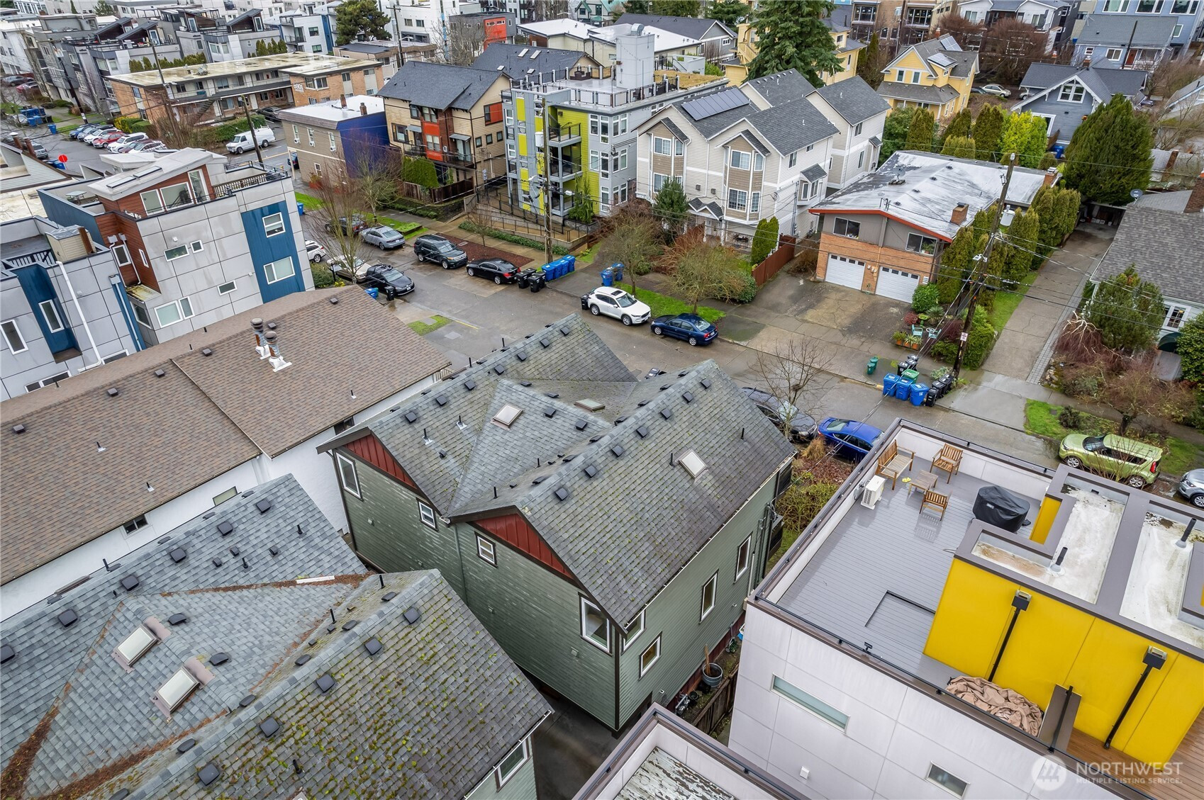 This delightful 3 bed, 3.25 bath townhouse has it all. The home includes a gas fireplace, refreshed kitchen with new quartz countertops, fridge, two balconies, a fully-fenced yard with patio space, double-paned windows and rare warm cherry hardwood floors throughout the main floor. Light-filled from vaulted ceilings and skylights, you’ll revel in the home’s open & inviting feel. Don’t miss the attached garage that could double as a home gym - although w/ a walk score of 95 - you are close on foot to Ballard’s best offerings: shops, restaurants, parks and nightlife. WFH here with ease! The lower bedroom with attached green space is the perfect zone for privacy and focus. Pre-inspected. No HOA or rental cap make this a GREAT investment!