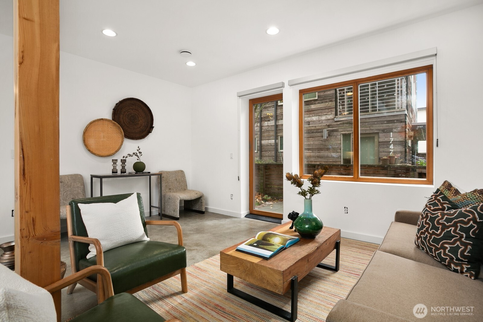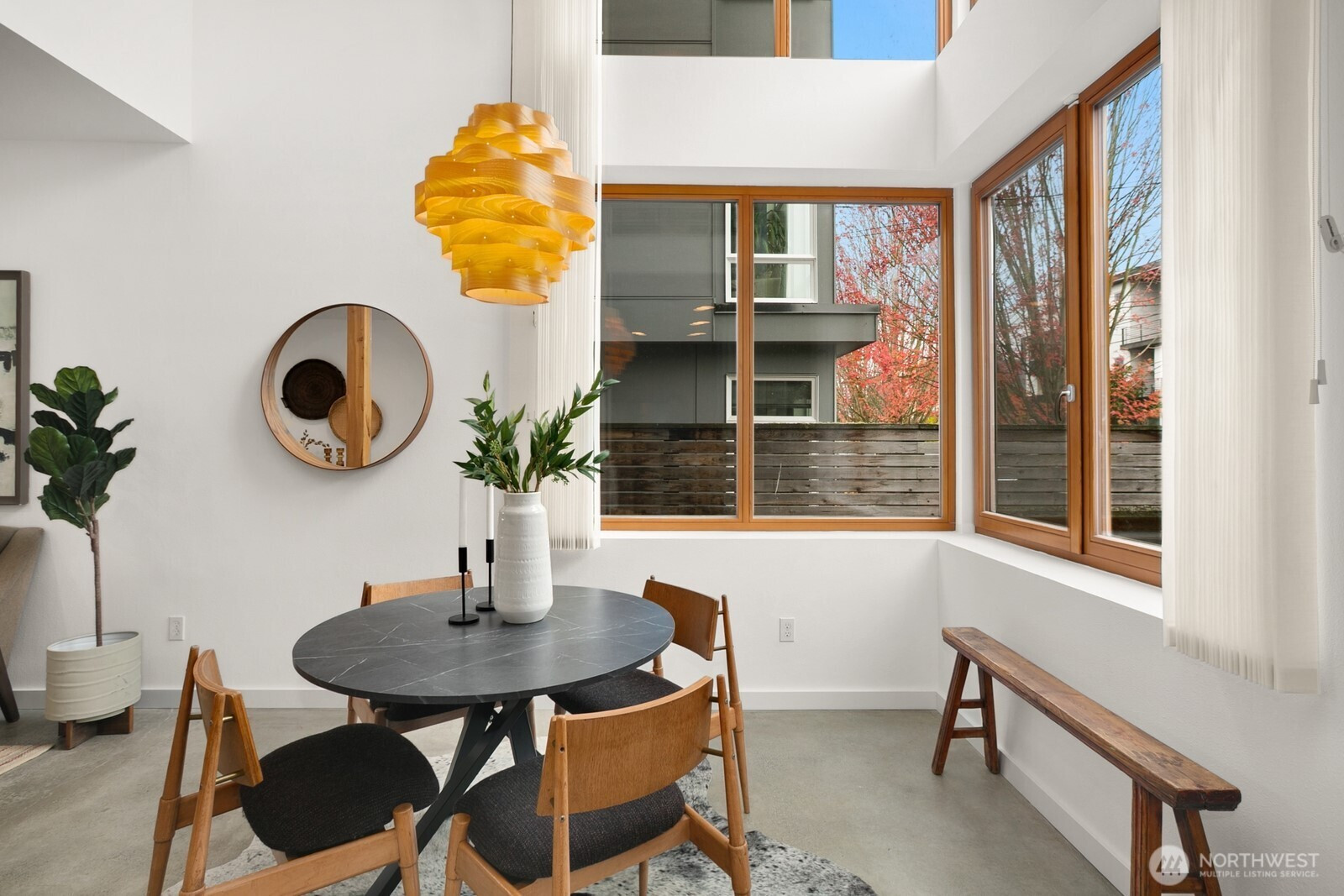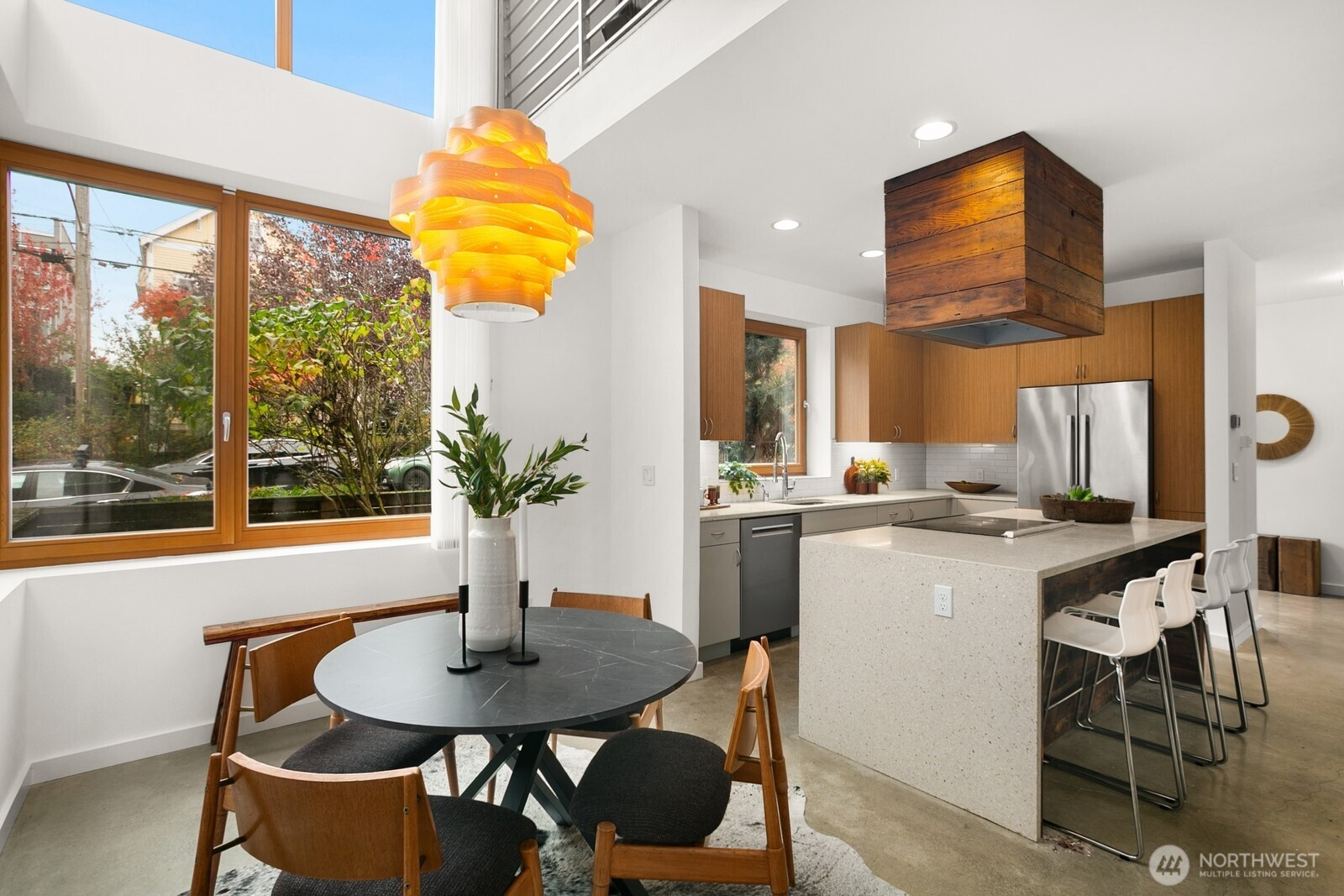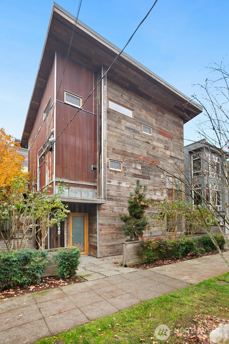 Award winning and exceptional Dwell Development build. Striking architectural design and high-performance construction with solar panels for sustainable living. This stand-alone home was the first to receive the "Built Green 5-Star Emerald certification" in Seattle. Where comfort meeting consciousness - showcasing reclaimed barn wood and aged metal siding, polished concrete floors, and vaulted ceilings with triple-pane windows. Recent updates include a new boiler system, custom kitchen cabinets, and new interior paint. Thoughtfully designed with 3 beds, 2.5 baths, a loft space and fully gated yard. Includes EV parking and a central Ballard location close to dining, shops, and parks. A rare fusion of innovation, design, and eco-luxury.