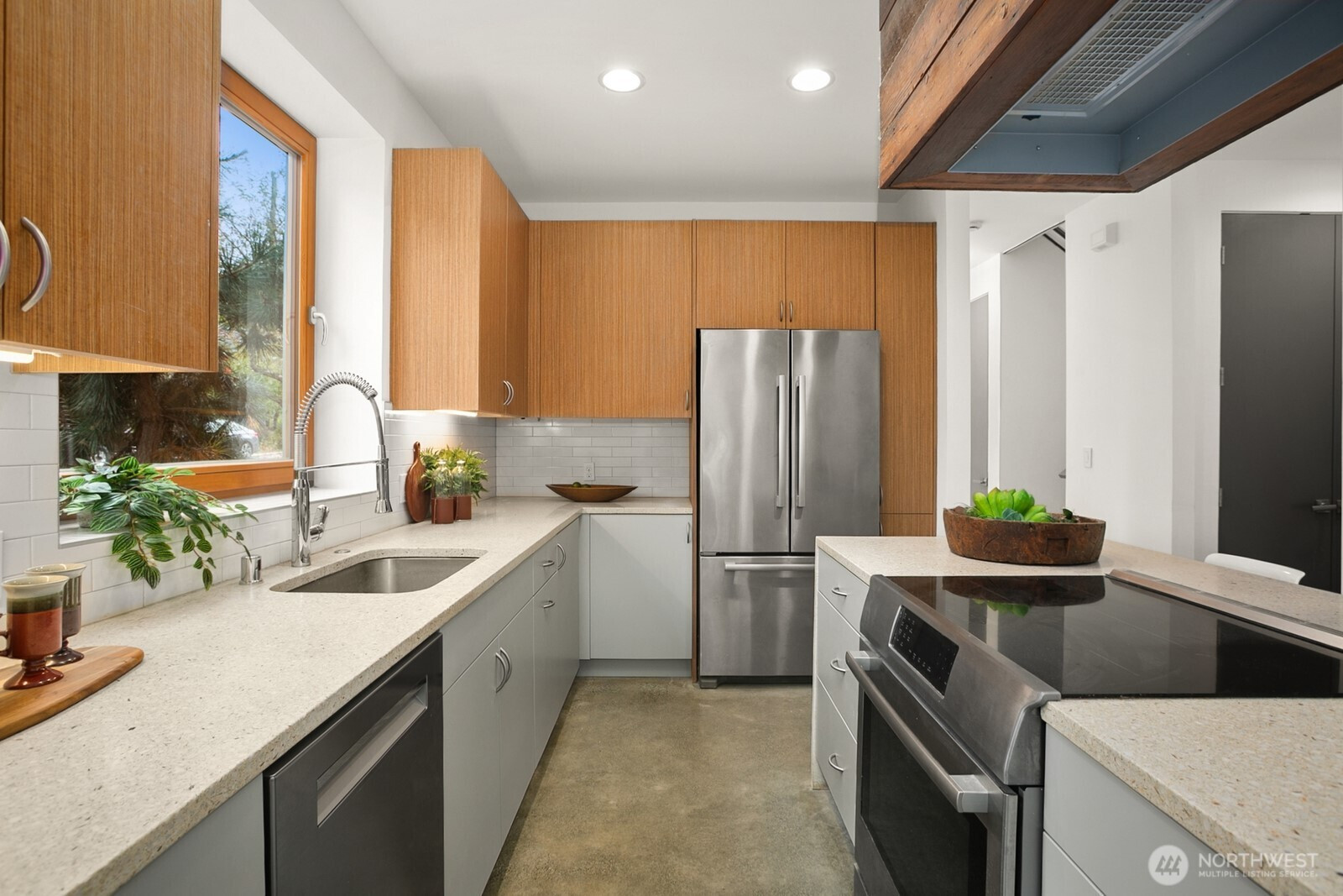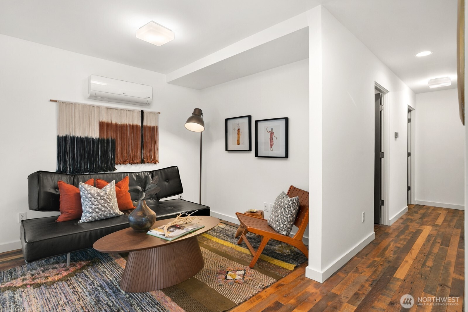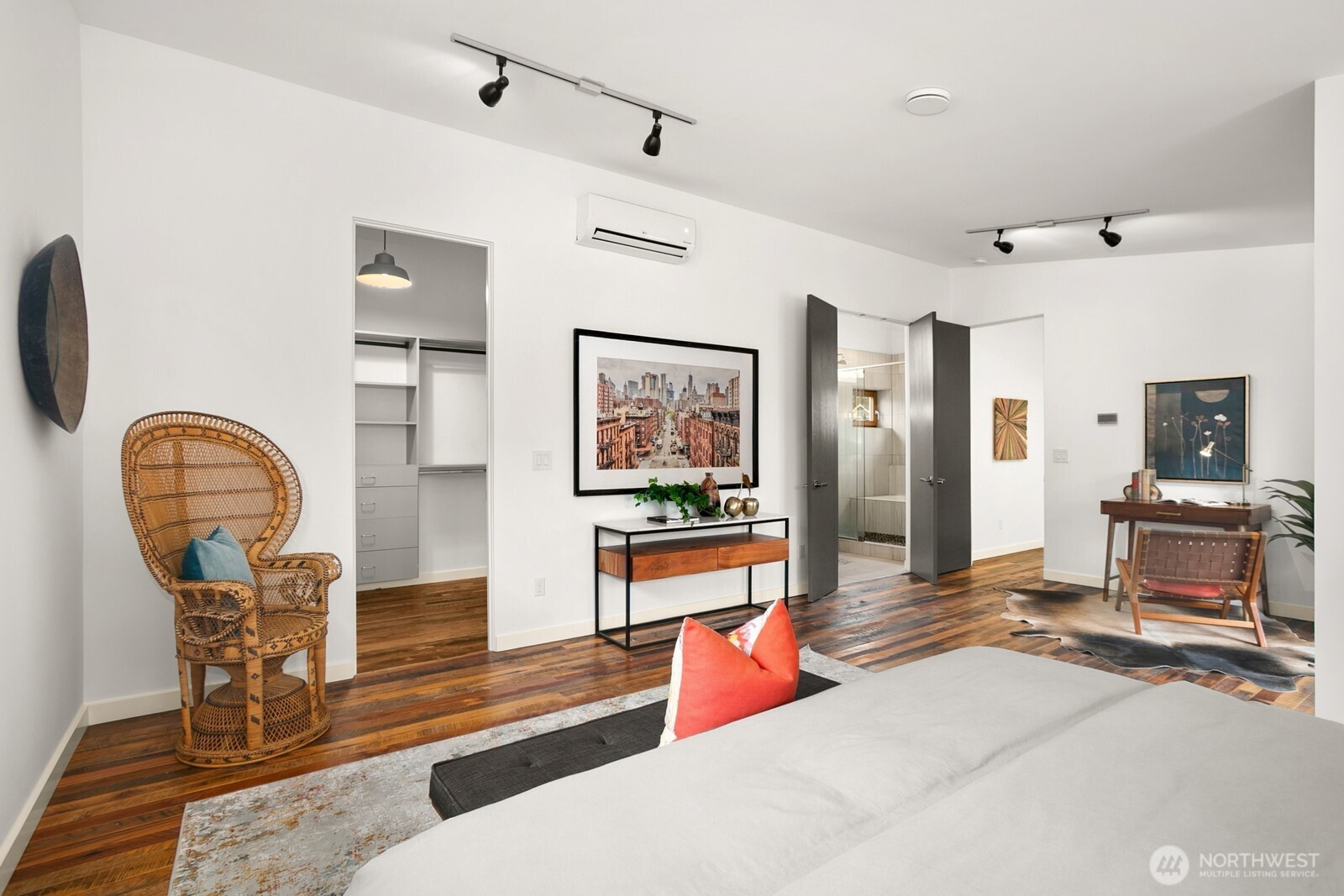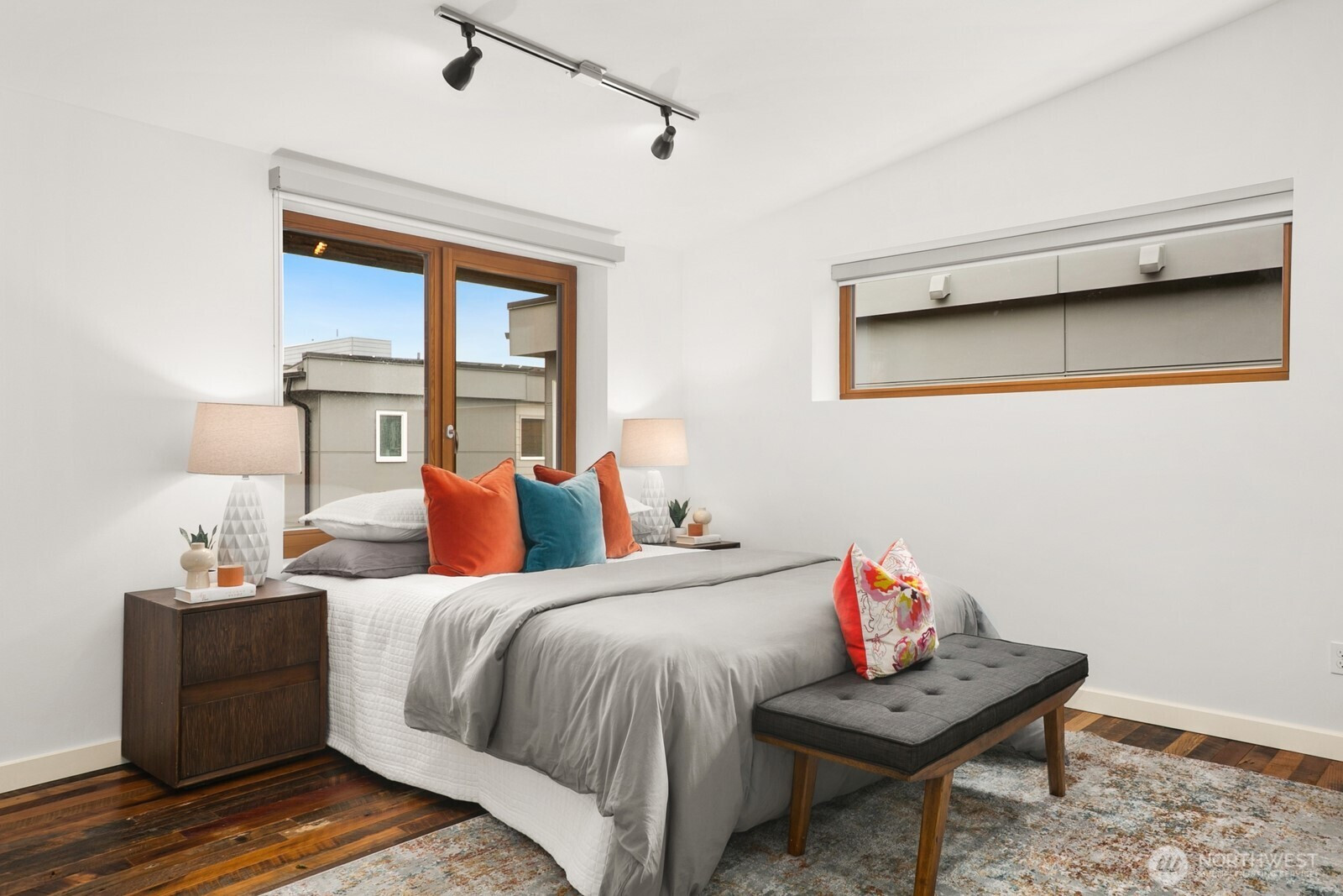 Award winning and exceptional Dwell Development build. Striking architectural design and high-performance construction with solar panels for sustainable living. This stand-alone home was the first to receive the "Built Green 5-Star Emerald certification" in Seattle. Where comfort meeting consciousness - showcasing reclaimed barn wood and aged metal siding, polished concrete floors, and vaulted ceilings with triple-pane windows. Recent updates include a new boiler system, custom kitchen cabinets, and new interior paint. Thoughtfully designed with 3 beds, 2.5 baths, a loft space and fully gated yard. Includes EV parking and a central Ballard location close to dining, shops, and parks. A rare fusion of innovation, design, and eco-luxury.