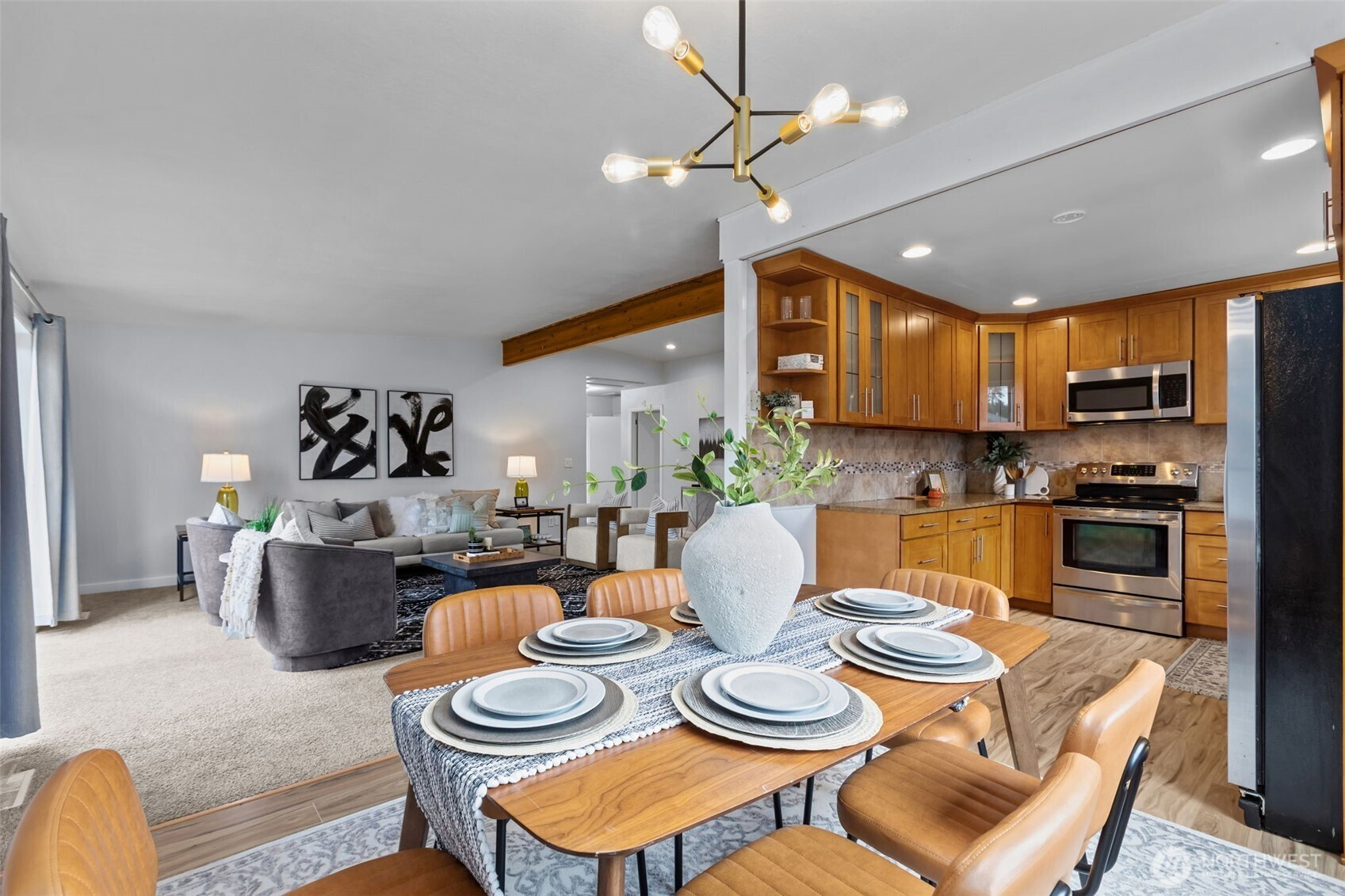 Opportunity meets flexibility in this beautifully situated Shoreline home offering over 1,600 sq ft of living space on an expansive 9,400+ sq ft level lot. Featuring 3 bedrooms, 2 baths, plus a versatile den, the spacious open floor plan is enhanced by vaulted ceilings, fresh interior paint, and abundant natural light. The updated kitchen and bathrooms provide modern comfort, while the back deck creates an easy flow for outdoor entertaining and everyday living. The generous lot offers boat/RV parking and room to expand, garden, or reimagine. An approved permit to convert the garage into two additional bedrooms presents an exciting opportunity for an adult family home or flexible multi-generational living setup. Ideally located within walking distance to cafes, dining, parks, grocery, schools, and light rail, this property also sits within. Shoreline’s sought-after MUR-35 zoning. Whether you enjoy it as-is or explore redevelopment potential, MUR-35 encourages townhomes, ADUs, DADUs, duplexes, and small-scale multifamily residential development—making this a compelling investment in a rapidly growing corridor. Comfort today, opportunity tomorrow. Pre-inspected for your convenience. Welcome home!