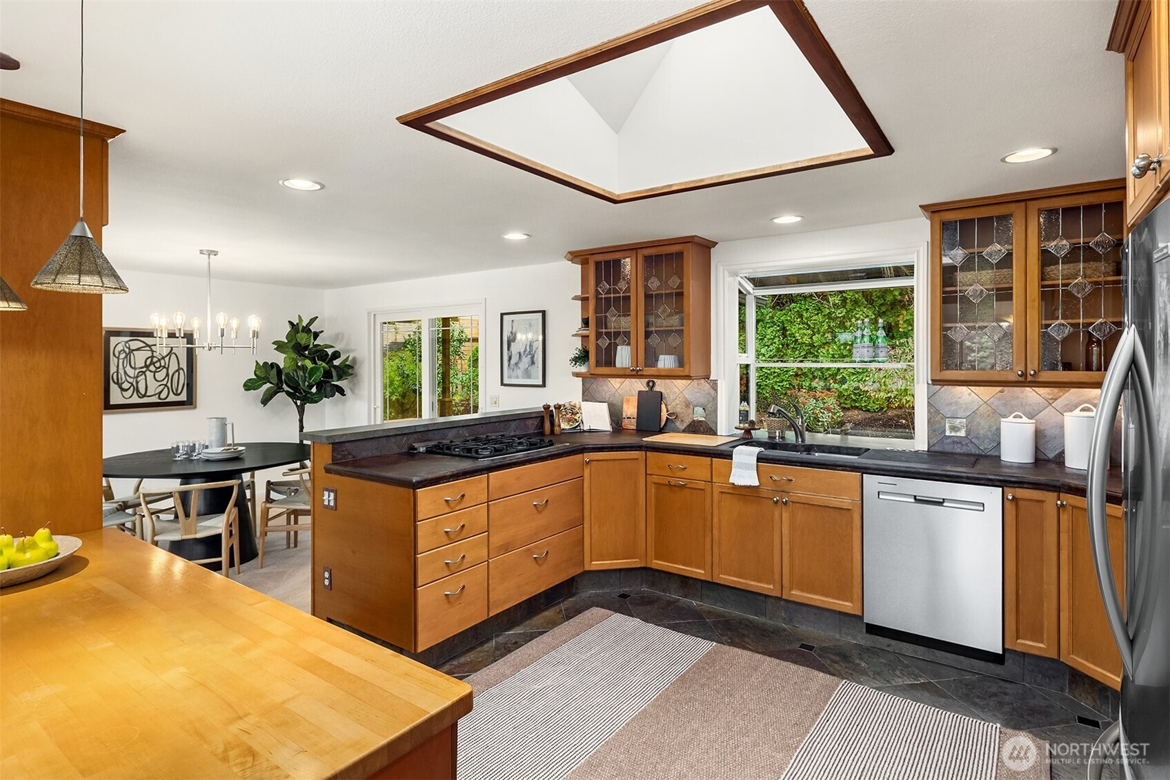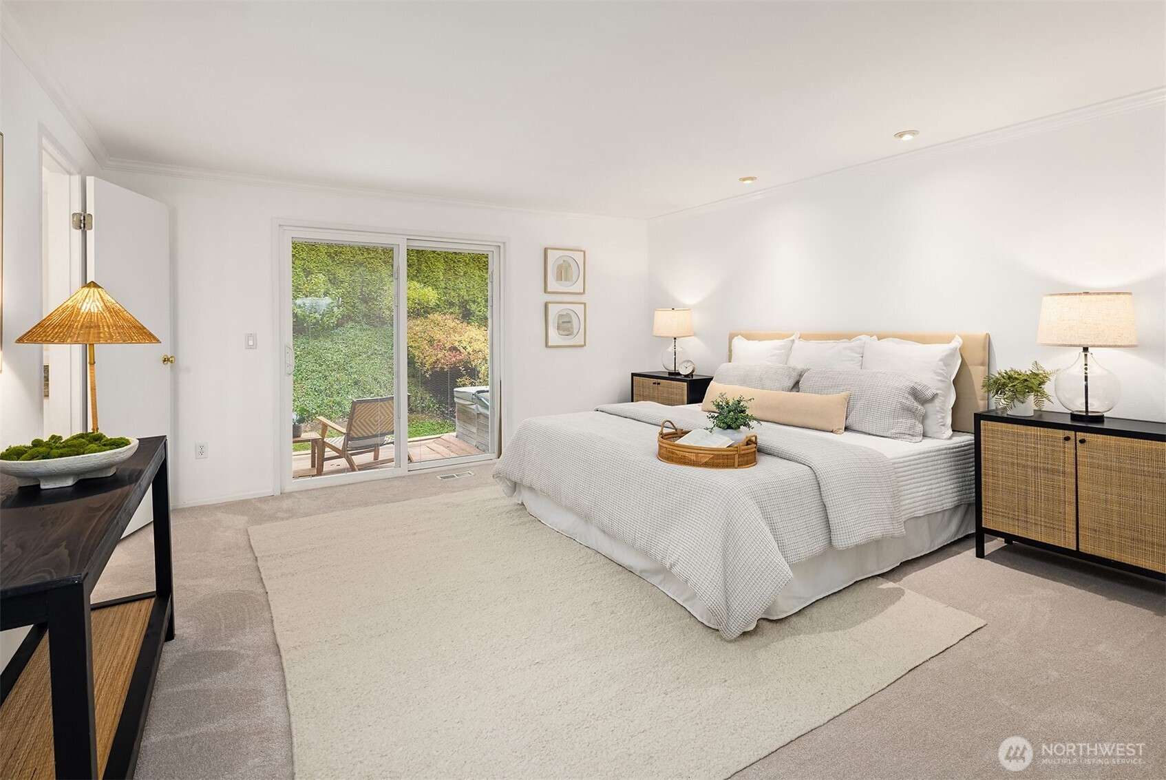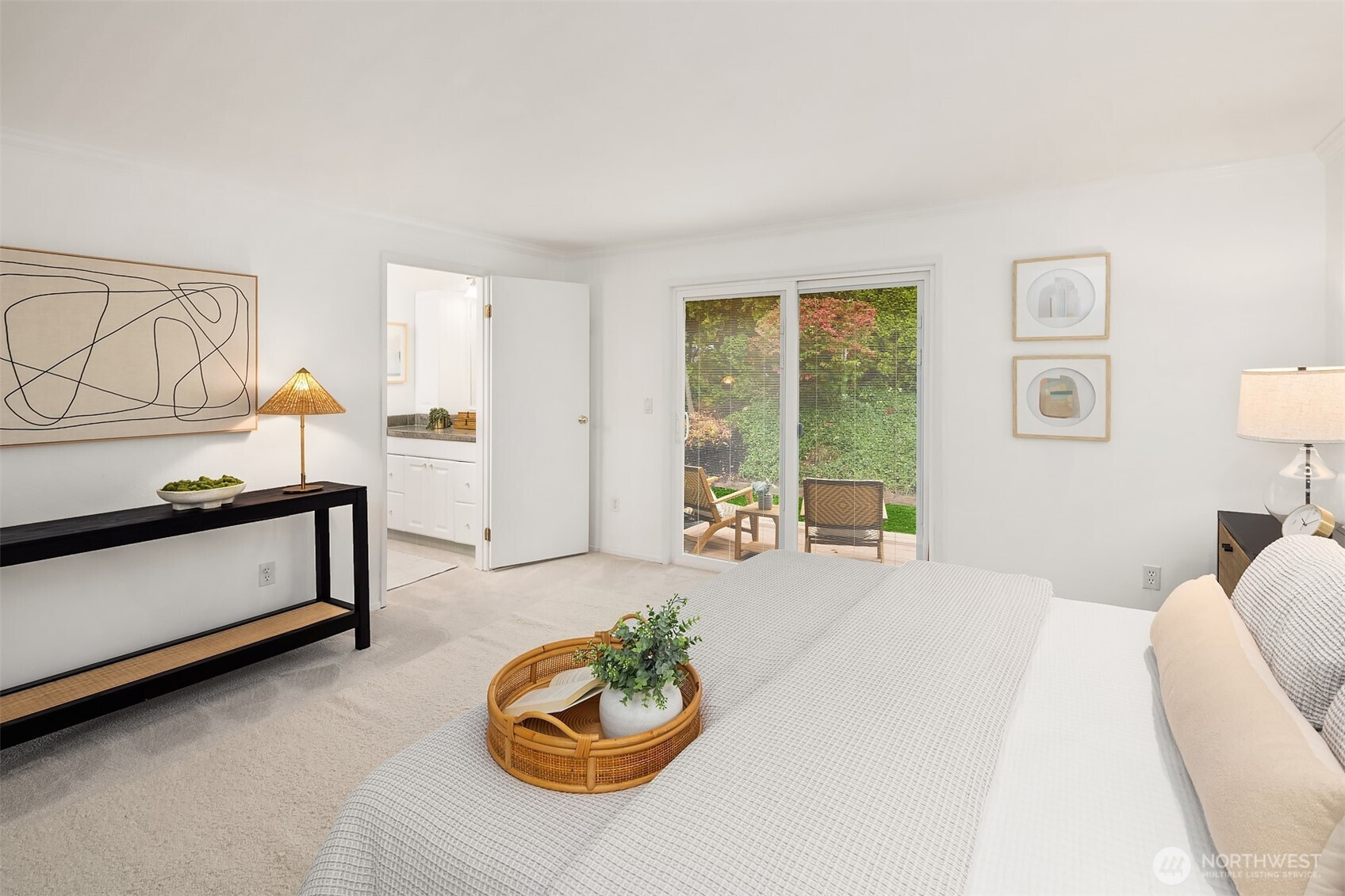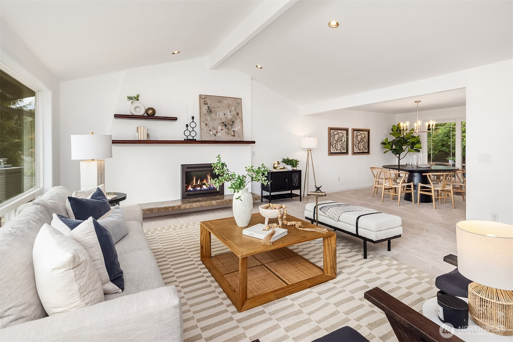 Beautiful Bellevue Home near Microsoft at top of cul de sac, overlooking Tam O'Shanter golf course & Cascade mountains. Functional & Inviting open concept w/vaulted ceilings & double-paned windows creating warm & relaxing spaces. Updated kitchen w/custom wood cabinetry, concrete countertops w/gas cooktop & SS appliances. Great Room w/gas fireplace & dining extend to outdoor wrap-around covered deck w/mature landscaped yard. True Primary Suite on the main w/bath, office & private deck + addit. bdrm & full bath. LL bonus rm + addit. bdrm w/updated ba & laundry. New carpet & paint. Finished extended garage, AC/Heat Pump. Amenities: Golf/Pickleball/Tennis/Swim/ Park/Restaurant/Clubhouse. Bennett Elem/Interlake High/Microsoft/Amazon/520 & I-90