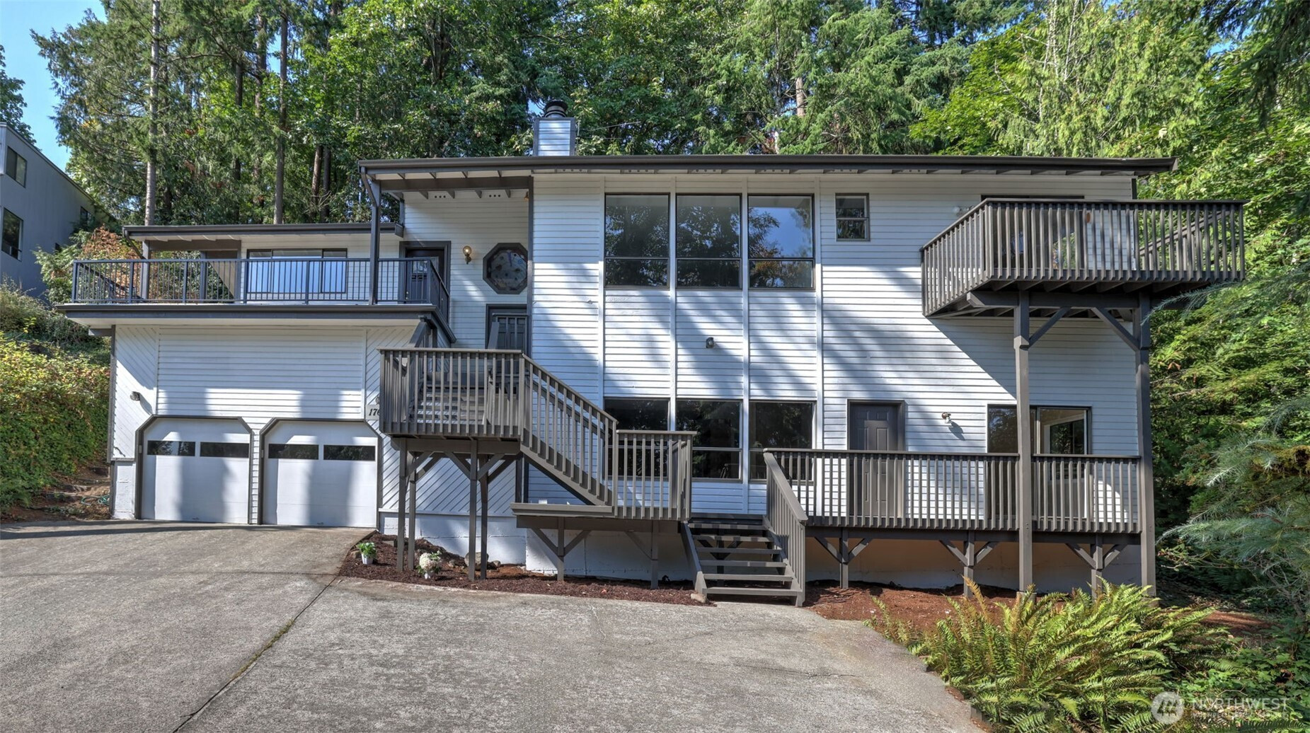 This exceptional lifestyle home in prime location offering serene privacy with just minutes from the Microsoft campus, Beach Park & Lake Sammamish. 4-bedroom, 3.25-bath residence presents 3,760 SqFt of elegantly updated living space on a sprawling 22,425 SqFt lot. Upgrades include new roof, exterior & interior paint, Luxury Vinyl Plank flooring, new carpet. All bathrooms remodeled and new lighting throughout. Fully renovated kitchen, new cook top and stainless-steel refrigerator. Luxurious primary suite with an ample walk-in closet and private balcony. Spacious bonus room and a dedicated playroom/home office at lower level. Enjoy year-round relaxation and panoramic views from multiple decks, Central A/C and an oversized two-car garage.