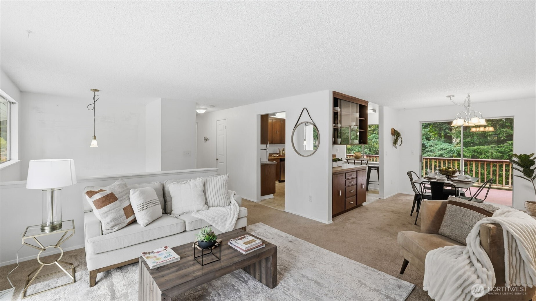 Welcome to Candlewood — a beautifully maintained home tucked into a quiet, tree-lined neighborhood. Step inside to find light-filled living spaces, walls of windows & a cozy wood fireplace. The open-concept layout connects the kitchen, dining, & living areas seamlessly — perfect for entertaining. A spacious primary offers a private retreat, while additional bedrooms provide flexibility for guests, work, or play. Enjoy outdoor living on the deck overlooking a lush & spacious yard backing to green space for added privacy. Located just minutes from shops, dining, parks, & schools, this home combines suburban serenity with easy access downtown Renton and major freeways for easy commuting. This home is ready for you to make it your own!