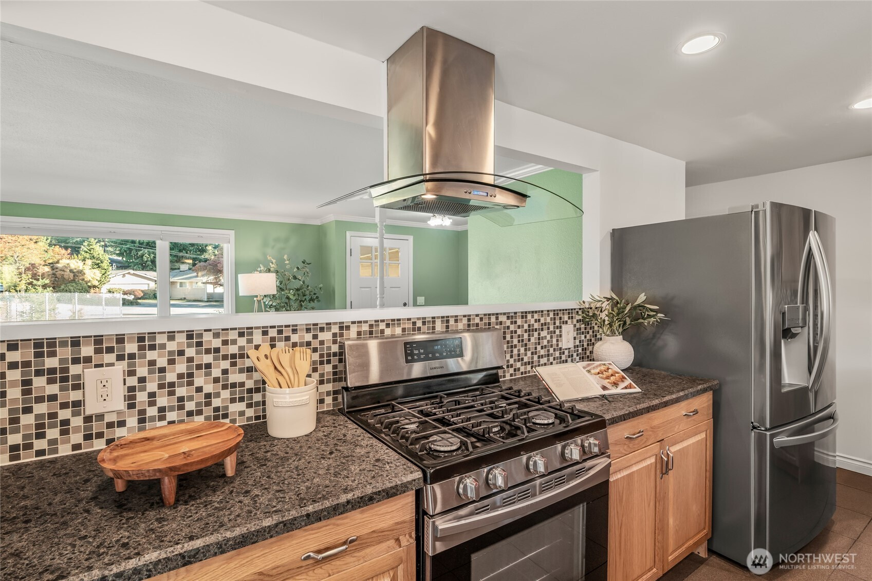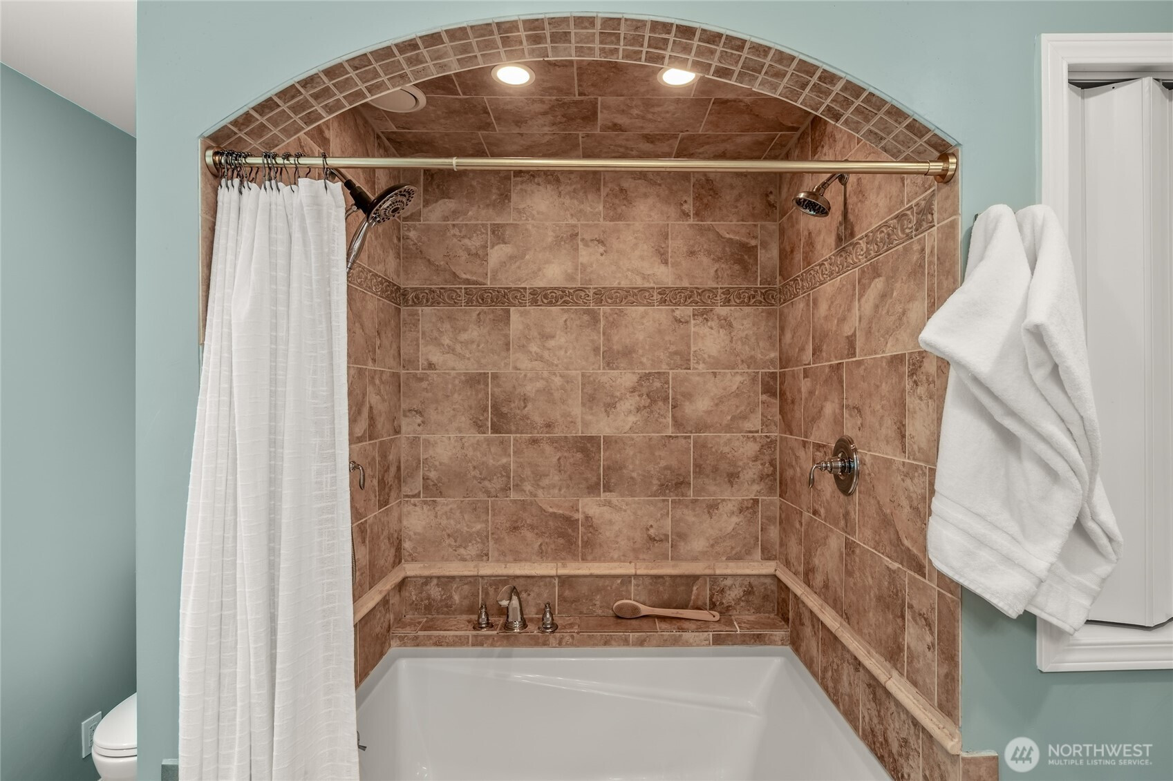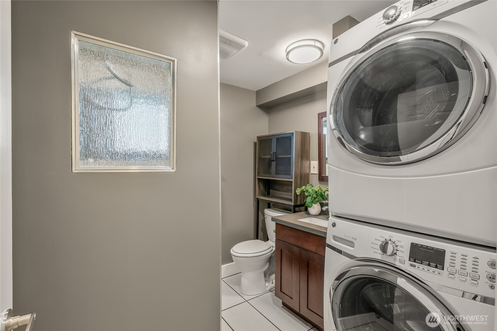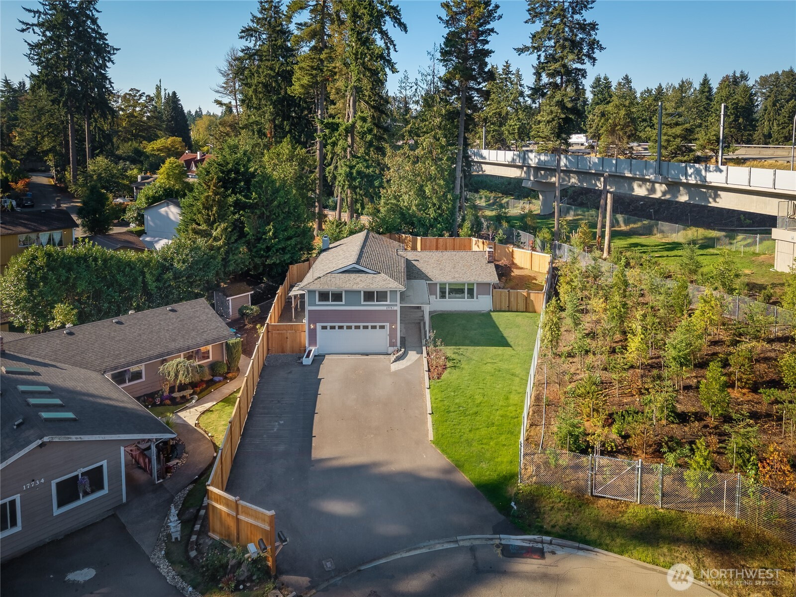 Enjoy the ease of comfort and convenience with this exceptional home in Shoreline! Tucked away in a quiet cul-de-sac close to Light Rail, this spacious tri-level features 4 bedrooms, 1.75 bathrooms with 2,210 SF, high-quality finishes throughout, & fully fenced backyard. Gourmet kitchen w/SS appliances makes entertaining a breeze with the open concept dining & living room. Additional upgrades include new: roof, fence, interior paint & carpet, and EV wiring. Lower level ADU features kitchenette, separate entrance & washer/dryer. Great for office, home theater, multi-generations, guests, or rental. Gas heat & A/C. Huge driveway w/garage ideal for gear, indulging in hobbies, and shop space. All this in a convenient & peaceful neighborhood!