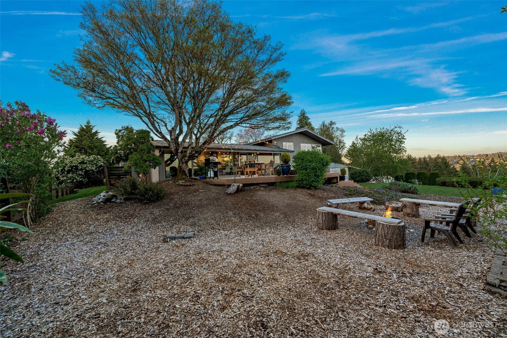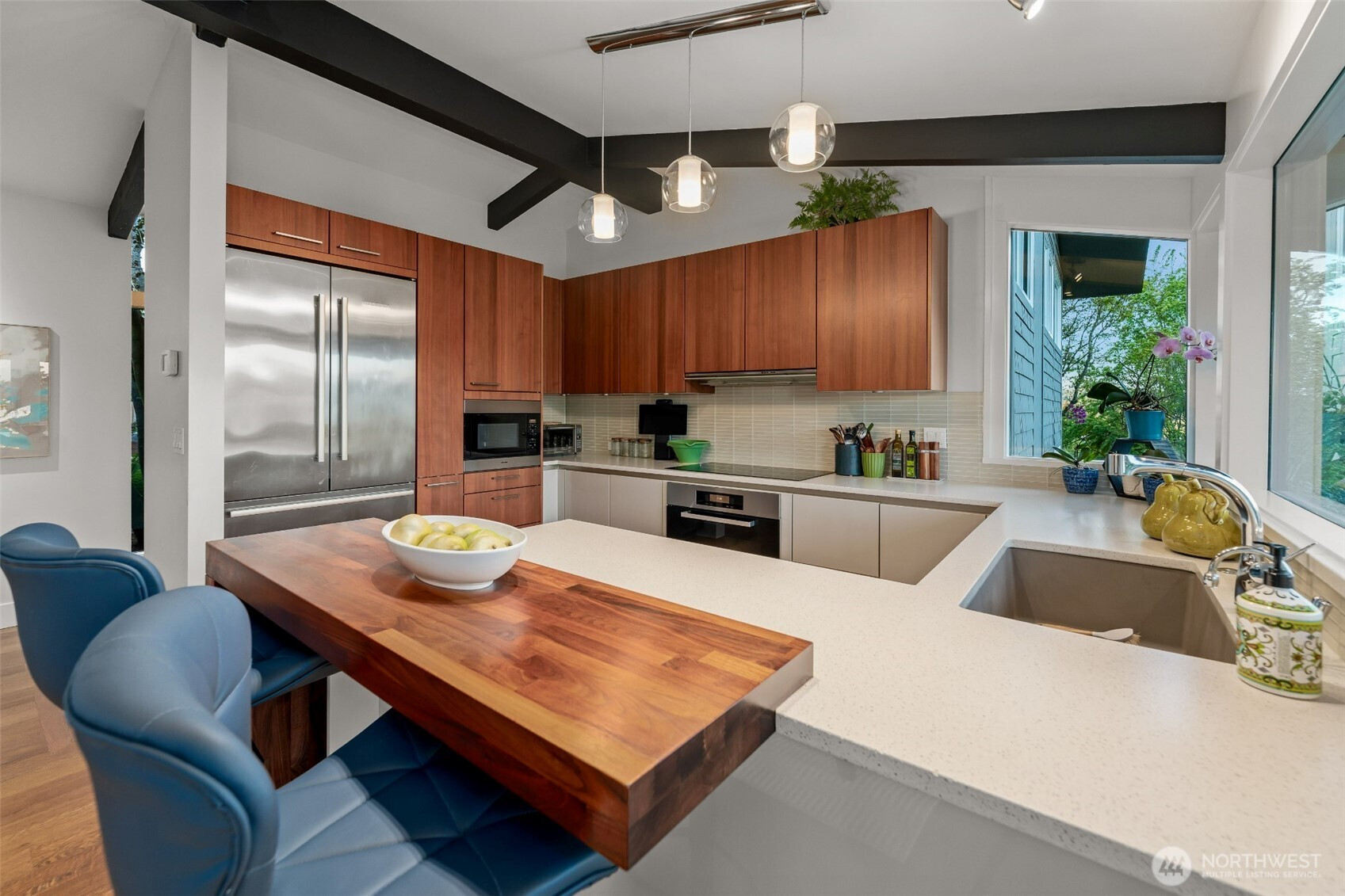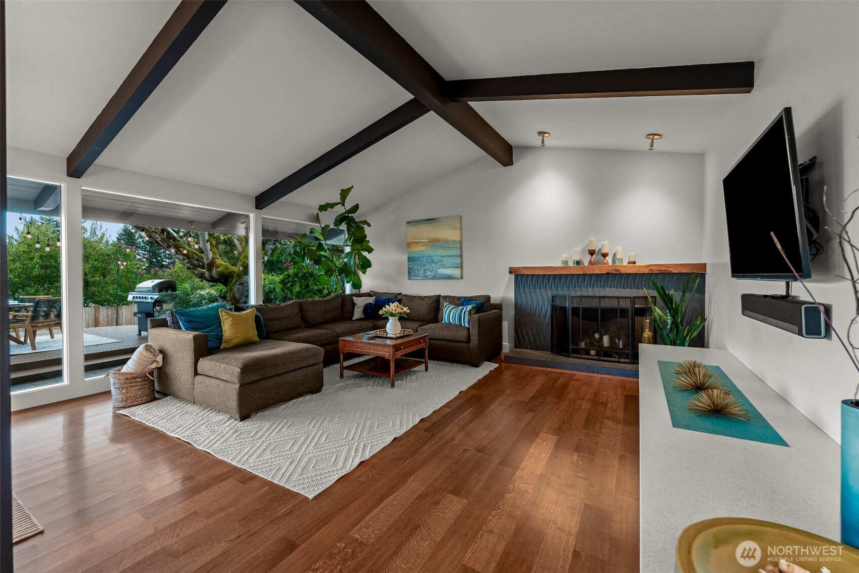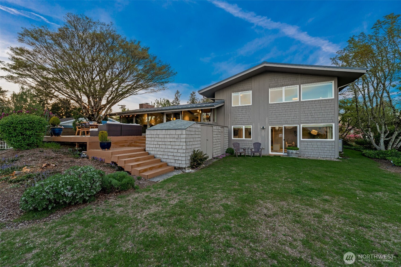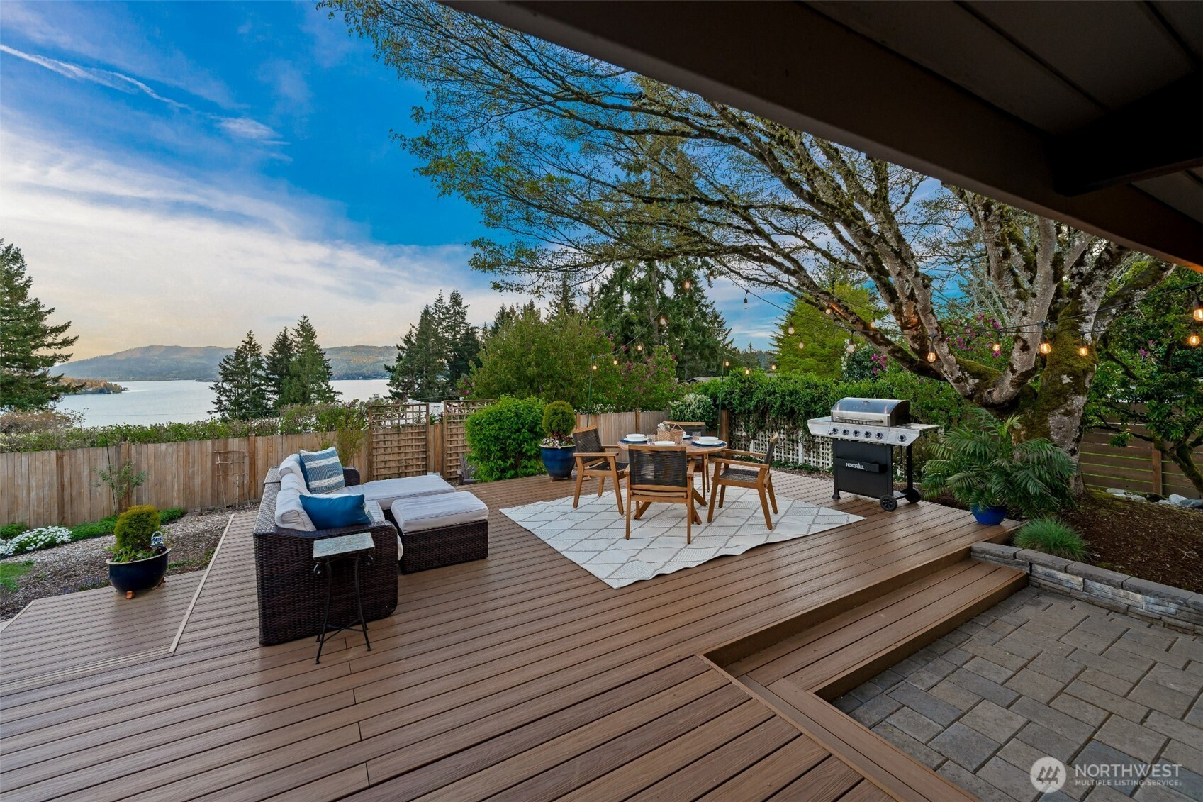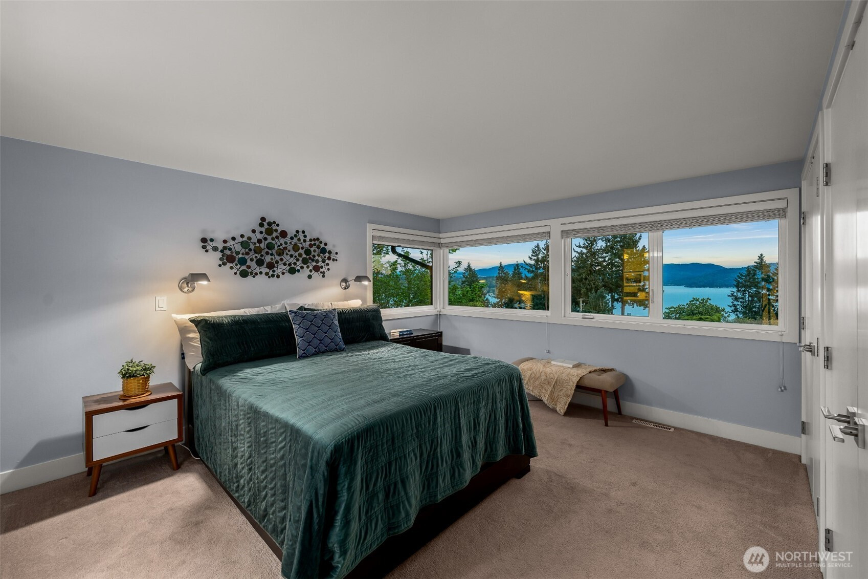 Set on the premier view lot in Bretton Wood, this exceptional, fully updated home offers panoramic Lake Sammamish and Cascade mountain views from every room. Thoughtfully designed with a mid-century modern influence, the home features vaulted ceilings with striking exposed beams and expansive walls of windows that fill the space with natural light. Beautiful hardwood floors run throughout the main living areas, and the updated kitchen flows effortlessly to a spacious view deck, creating seamless indoor outdoor living and dining, enhanced by central A/C for year round comfort. The private lot spans over 1/4 acre, offering a peaceful, serene setting with room to entertain, garden, or unwind. The lower level includes a large additional living space that also enjoys lake views, a rare and special feature. High quality updates throughout, including a durable metal roof and large two car garage. Pre inspected for buyer confidence. Quiet neighborhood street just minutes to top rated Bennett Elementary, Microsoft, and major Eastside amenities. A rare opportunity to own one of Bretton Wood’s most sought after properties.