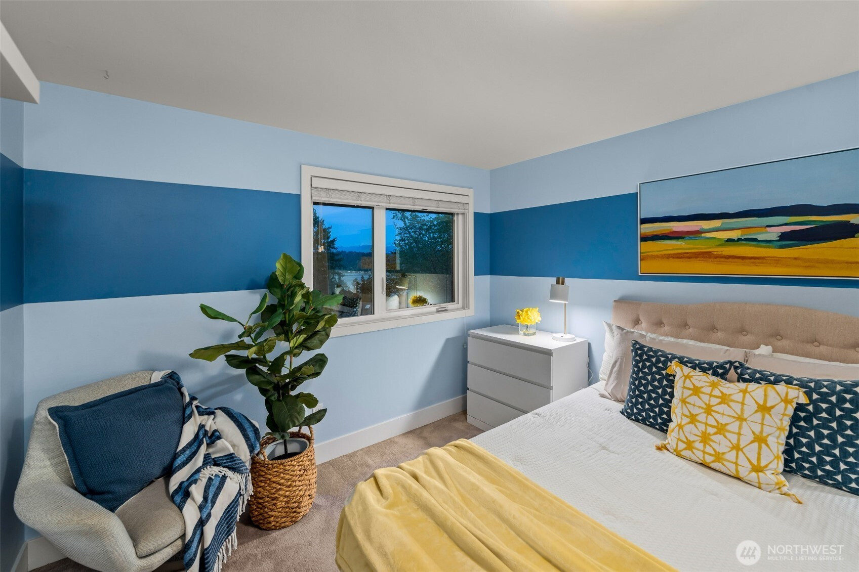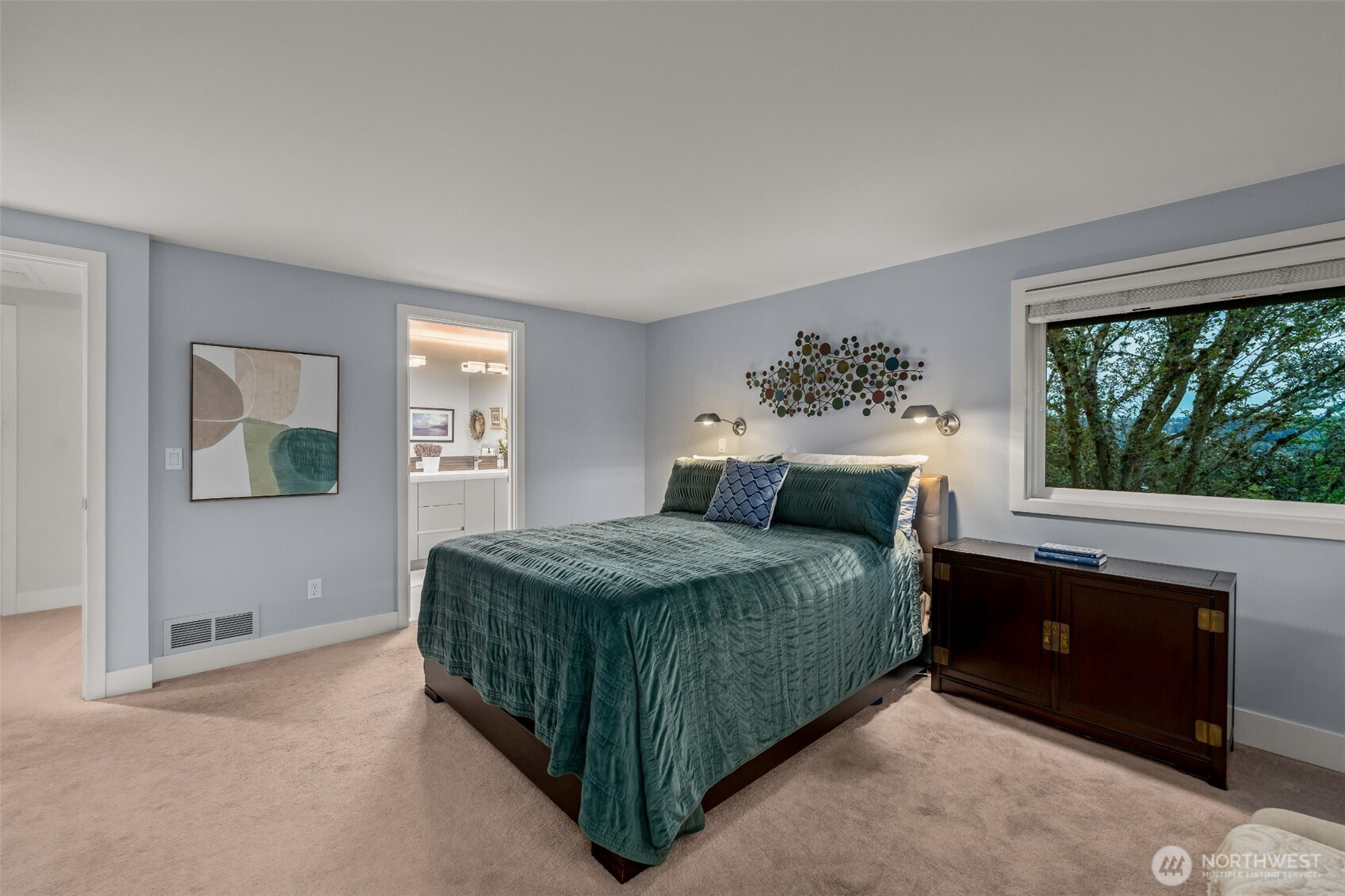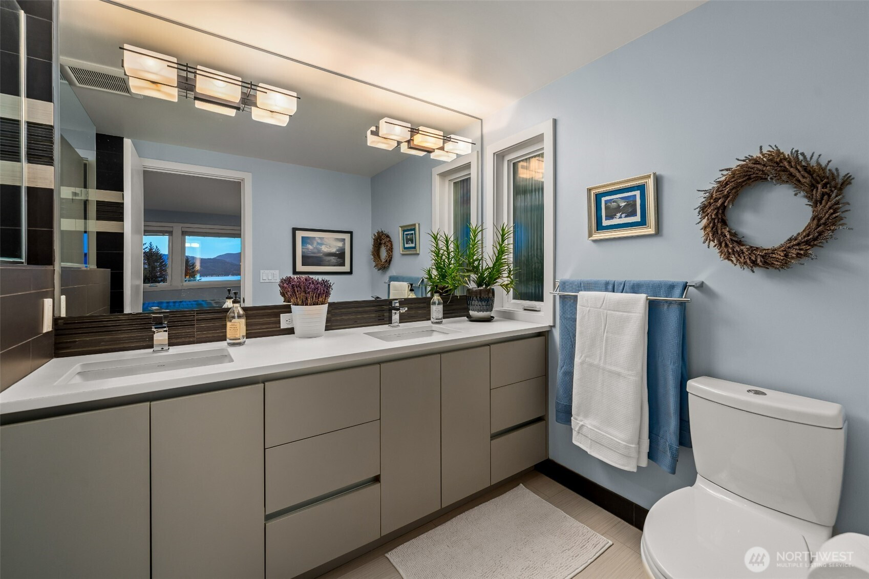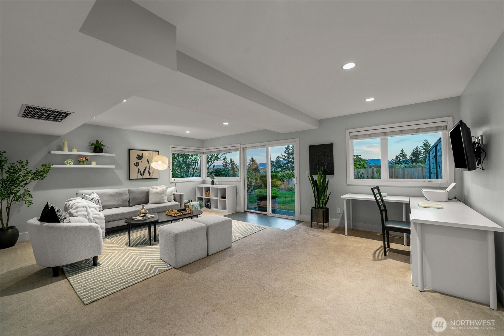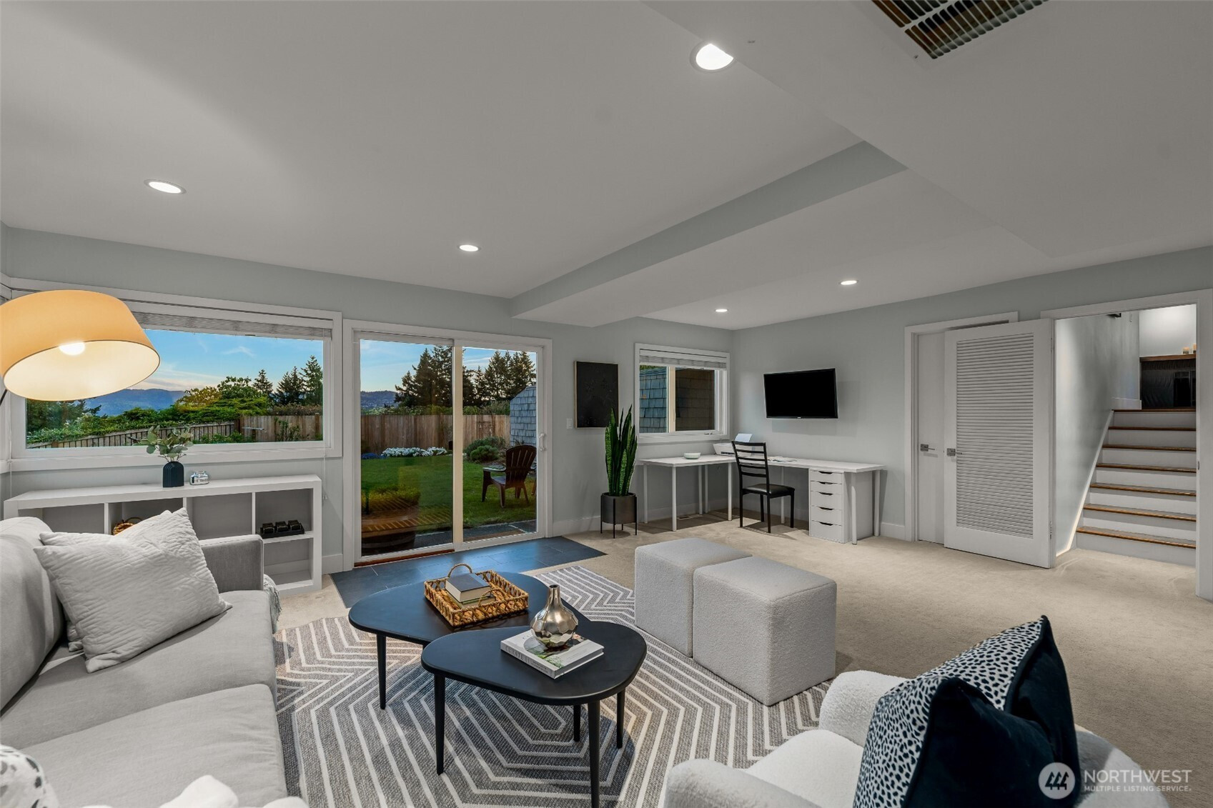 Set on the premier view lot in Bretton Wood, this exceptional, fully updated home offers panoramic Lake Sammamish and Cascade mountain views from every room. Thoughtfully designed with a mid-century modern influence, the home features vaulted ceilings with striking exposed beams and expansive walls of windows that fill the space with natural light. Beautiful hardwood floors run throughout the main living areas, and the updated kitchen flows effortlessly to a spacious view deck, creating seamless indoor outdoor living and dining, enhanced by central A/C for year round comfort. The private lot spans over 1/4 acre, offering a peaceful, serene setting with room to entertain, garden, or unwind. The lower level includes a large additional living space that also enjoys lake views, a rare and special feature. High quality updates throughout, including a durable metal roof and large two car garage. Pre inspected for buyer confidence. Quiet neighborhood street just minutes to top rated Bennett Elementary, Microsoft, and major Eastside amenities. A rare opportunity to own one of Bretton Wood’s most sought after properties.