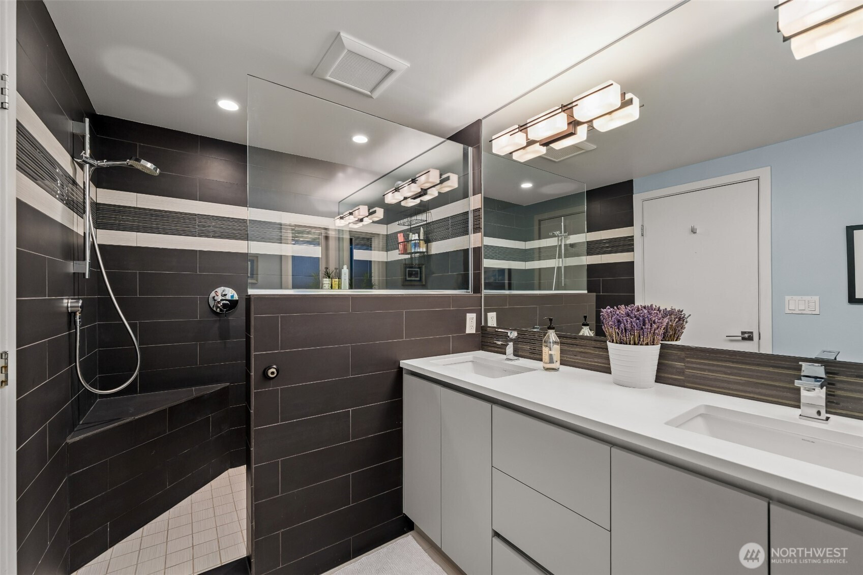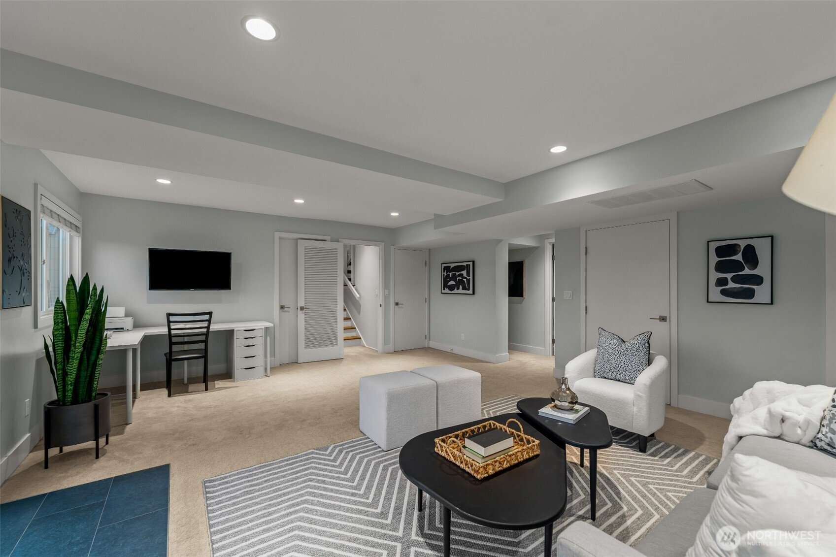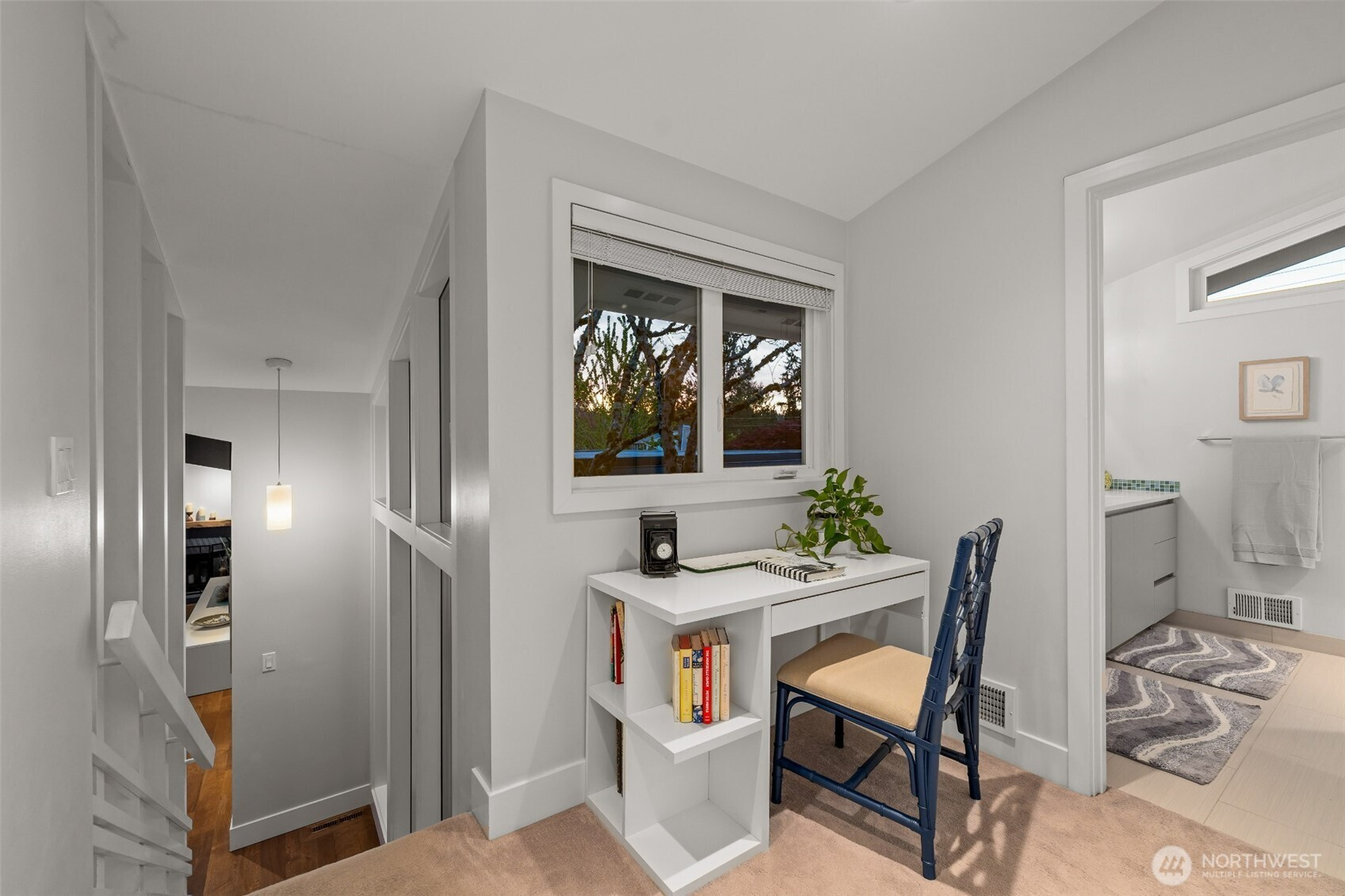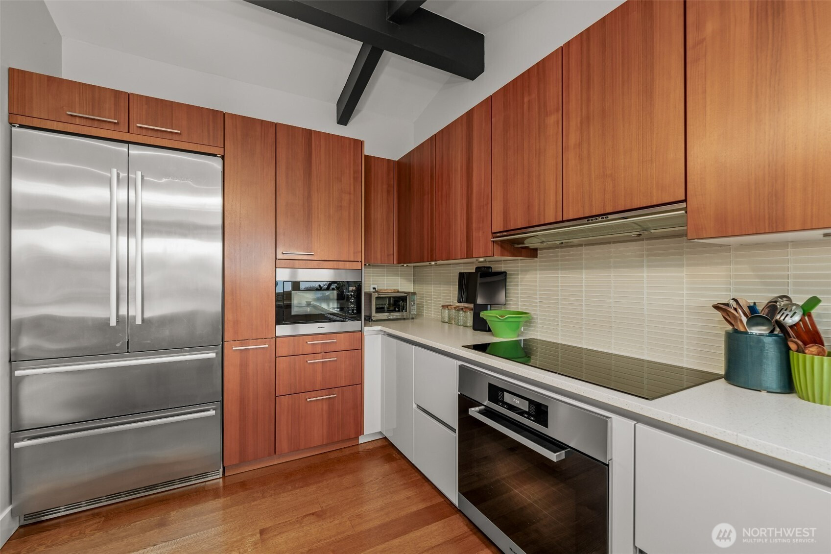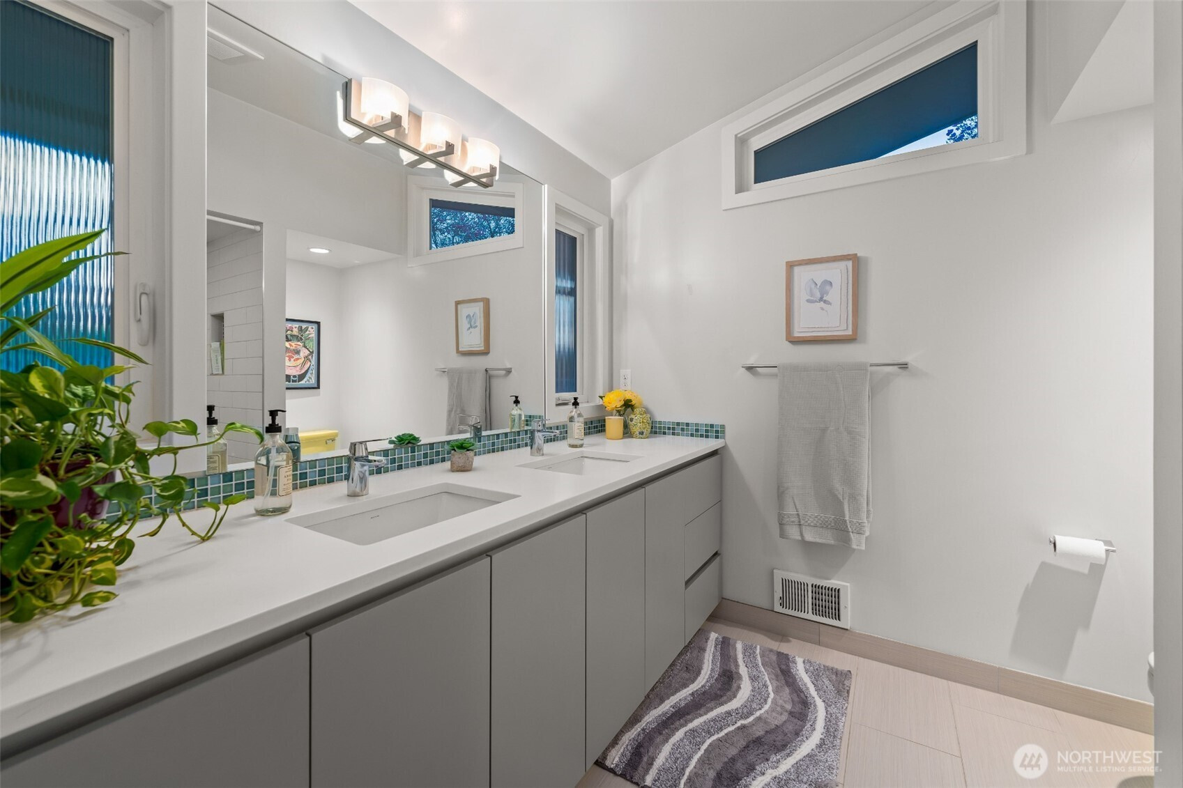 Set on the premier view lot in Bretton Wood, this exceptional, fully updated home offers panoramic Lake Sammamish and Cascade mountain views from every room. Thoughtfully designed with a mid-century modern influence, the home features vaulted ceilings with striking exposed beams and expansive walls of windows that fill the space with natural light. Beautiful hardwood floors run throughout the main living areas, and the updated kitchen flows effortlessly to a spacious view deck, creating seamless indoor outdoor living and dining, enhanced by central A/C for year round comfort. The private lot spans over 1/4 acre, offering a peaceful, serene setting with room to entertain, garden, or unwind. The lower level includes a large additional living space that also enjoys lake views, a rare and special feature. High quality updates throughout, including a durable metal roof and large two car garage. Pre inspected for buyer confidence. Quiet neighborhood street just minutes to top rated Bennett Elementary, Microsoft, and major Eastside amenities. A rare opportunity to own one of Bretton Wood’s most sought after properties.