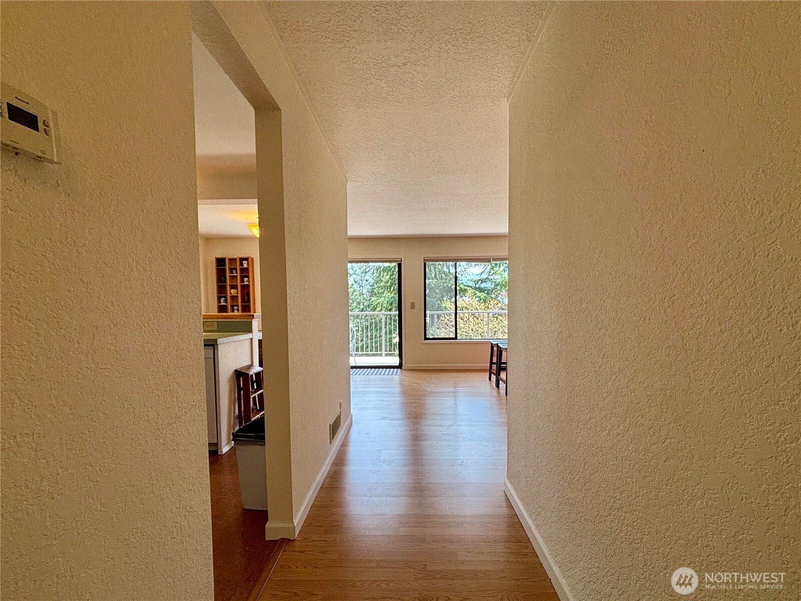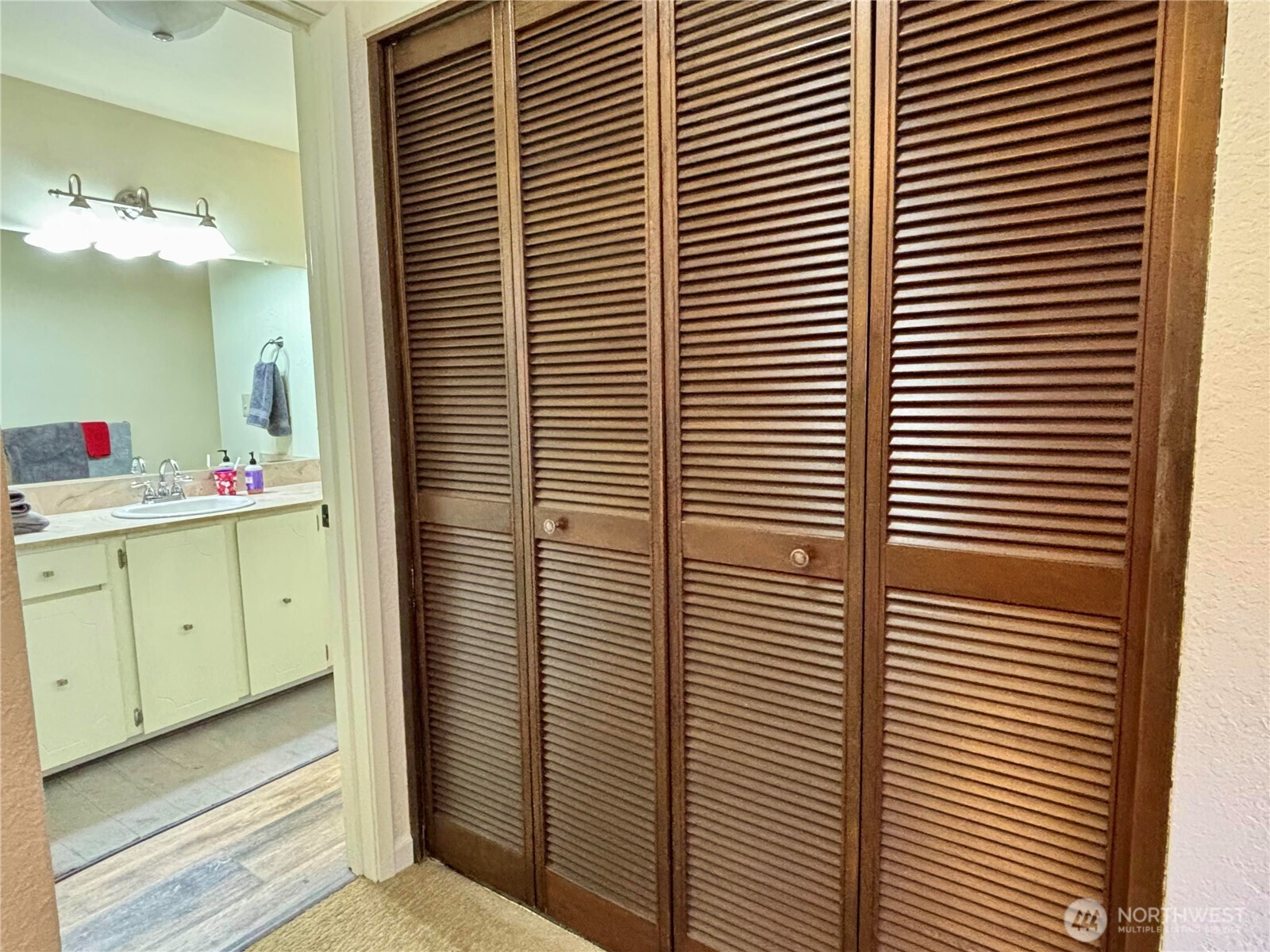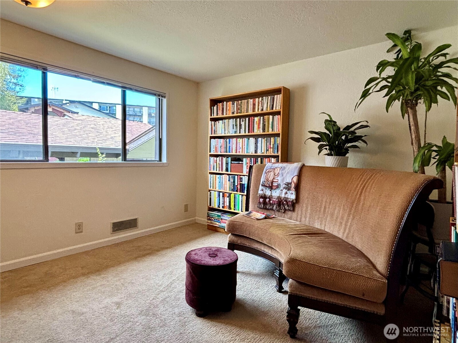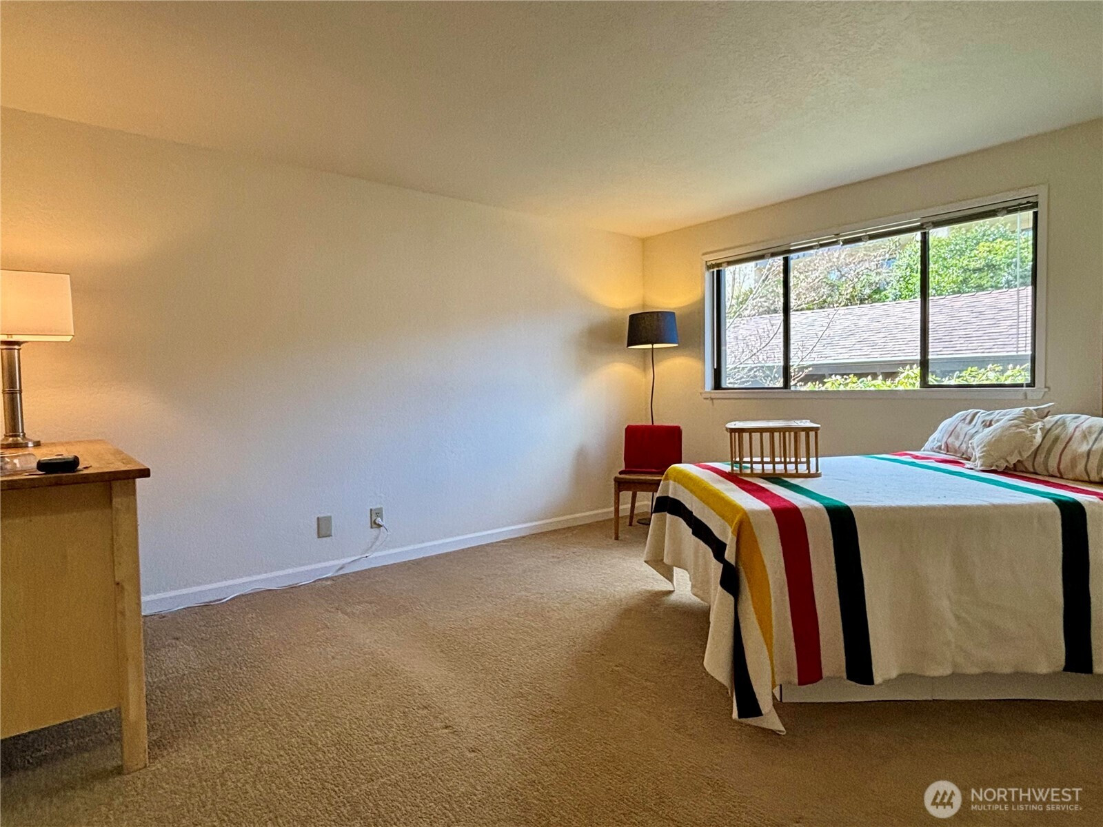 Unmatched views and tranquility await in this airy, expansive top floor 2 bedroom home. This is not your ordinary condo. This has breathing room, multiple entertaining spaces, and all the storage. Thoughtfully-designed, this functional layout includes an enormous living/dining room with a gorgeous fireplace and a wall of windows overlooking the huge balcony, draped in sunshine and views of forest and mountain caps. A generous kitchen with an additional live-edge bar top is chef-ready. Abundant natural light can also be found in the spacious bedrooms, each with its own bath and quick access to in-unit washer and dryer. The primary suite includes a large walk-in closet, an updated modern vanity and separate wet room. To top it all off, there is a covered parking spot just outside as well as a well-maintained community filled with amenities like a clubhouse, fitness room, pool, sport court, and even RV parking and a handyman space! HOA covers water, sewer, garbage, internet and cable. With plenty of guest parking and shopping, food, coffee and transit within walking distance, this home truly checks all your boxes!